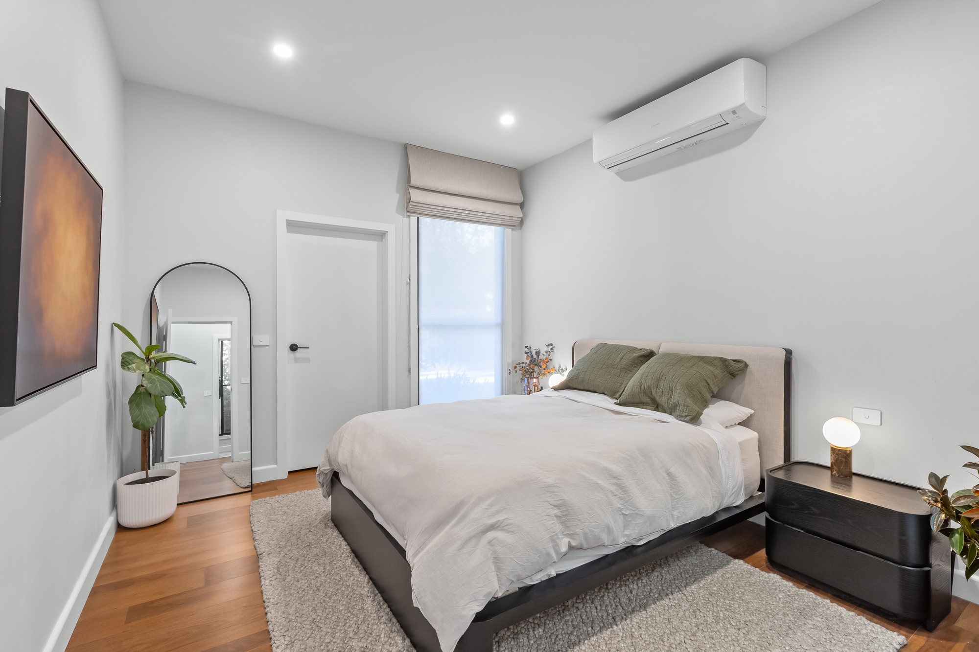 Accommodation includes three well-proportioned bedrooms. The master bedroom forms part of a thoughtfully designed extension and includes a walk-in robe, private ensuite, and split-system climate control. This extension also incorporates a full-sized modern laundry and boasts 2.9 m ceilings, adding excellent functionality and a spacious feel to the home.