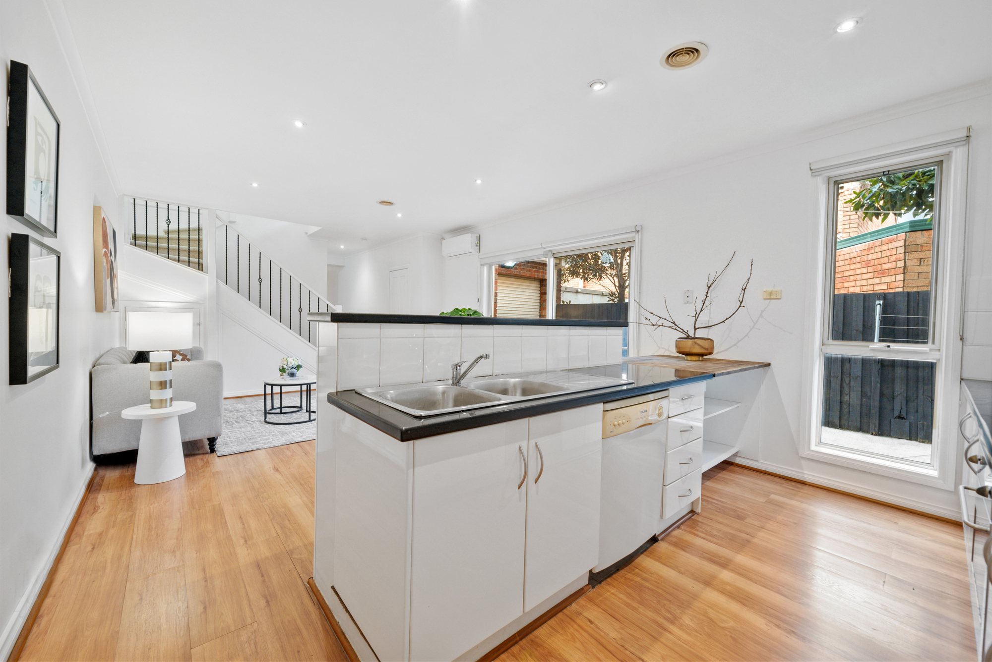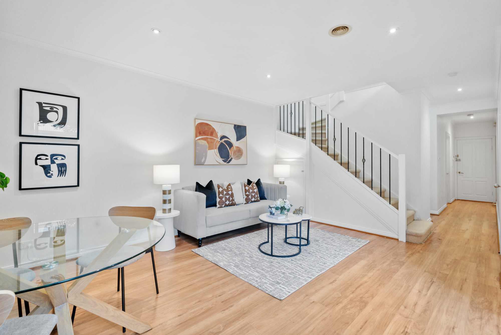 Step into this stylish two-story townhouse offering the perfect blend of comfort and convenience. Downstairs boasts stunning floorboards throughout, complemented by a modern, low-maintenance design that ensures relaxed family living.