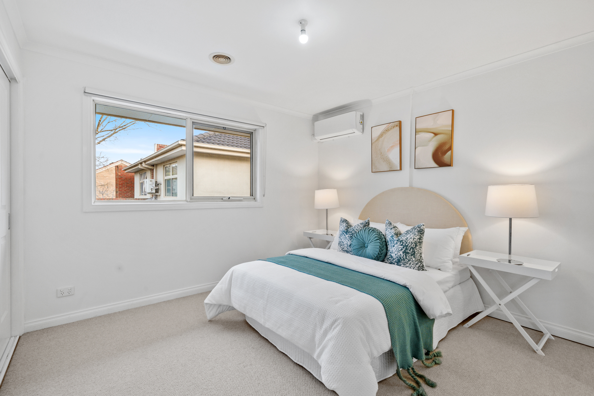 Upstairs, plush carpeting enhances two spacious bedrooms, each with built-in robes offering ample storage space. The main bedroom is a true retreat with its own ensuite, while a full central bathroom caters effortlessly to family needs.
