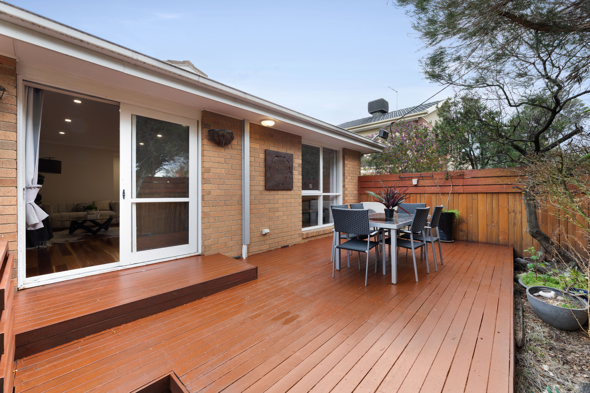 Outside, high fencing and a lush wall of trees create a sense of seclusion, offering the perfect balance of indoor–outdoor living. Here, mornings are bright, afternoons are peaceful, and evenings are private.