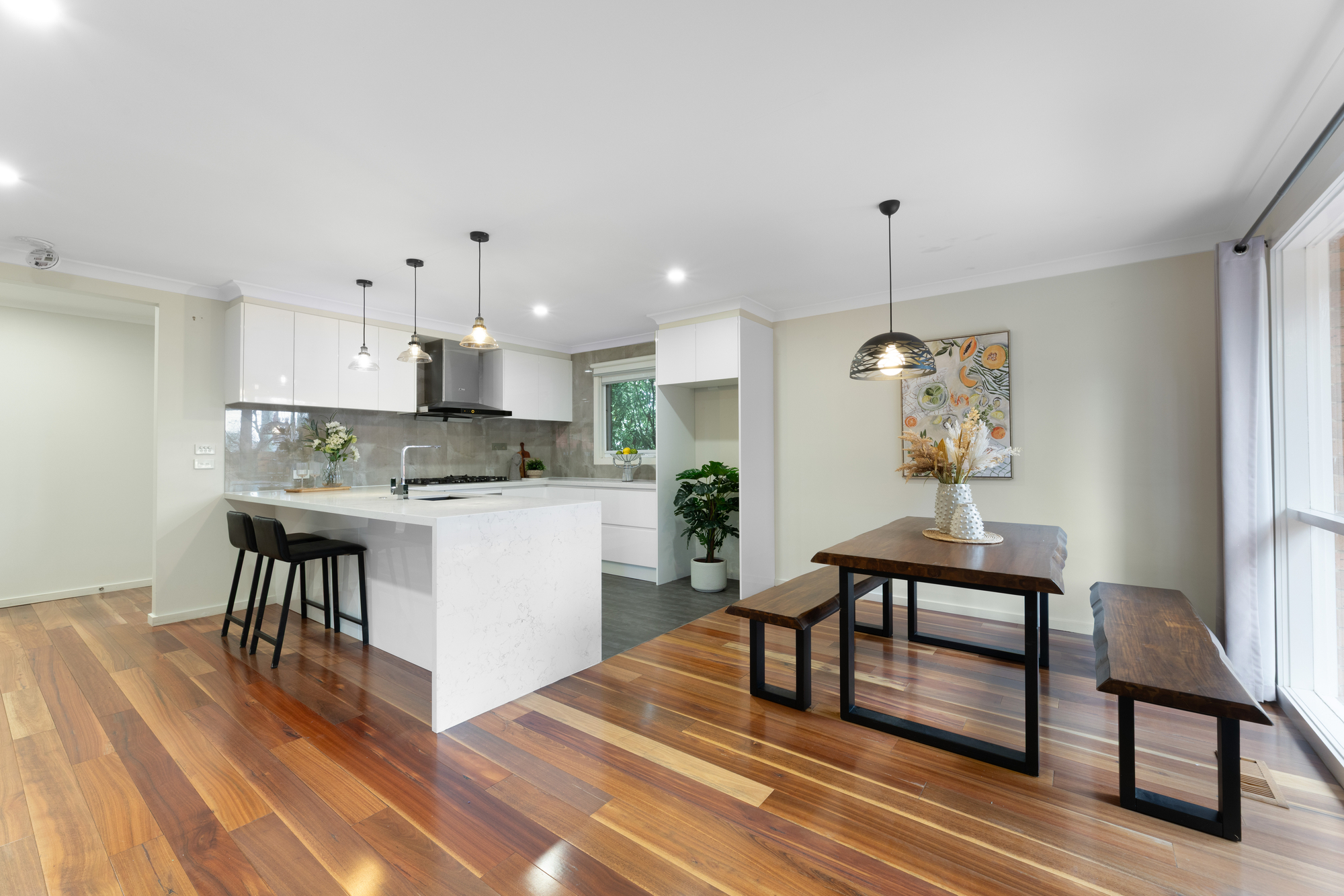 Accommodation is generous, with three spacious bedrooms. The master retreat is a sanctuary of its own, featuring a walk-in robe and a modern ensuite, while the additional bedrooms are serviced by beautifully refreshed bathrooms and a thoughtfully updated laundry. Every detail has been considered to deliver ease, function, and timeless appeal.