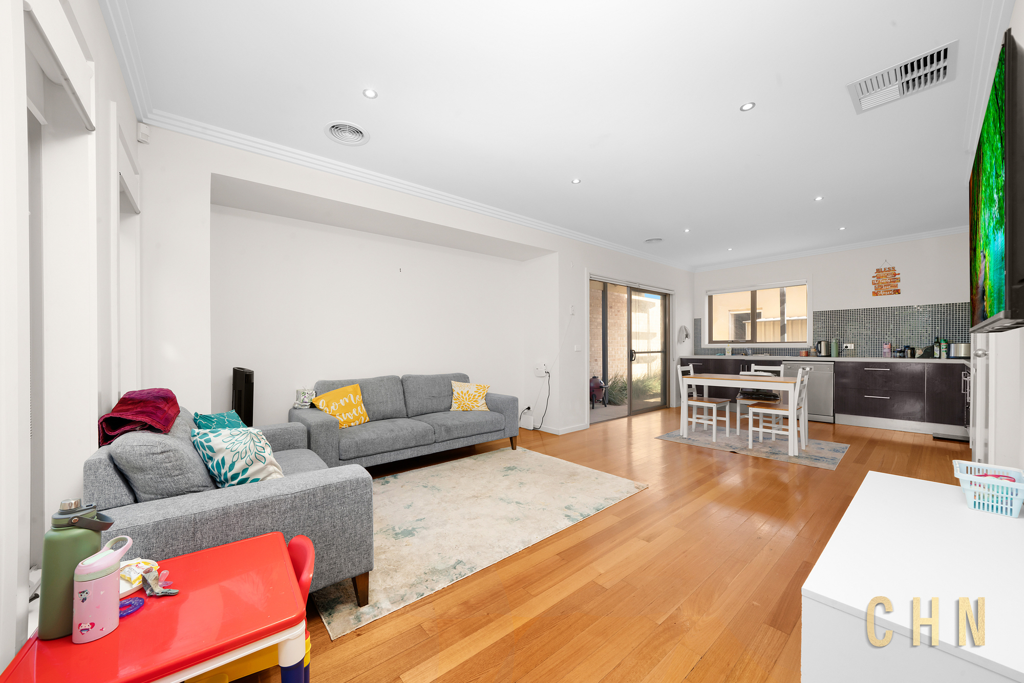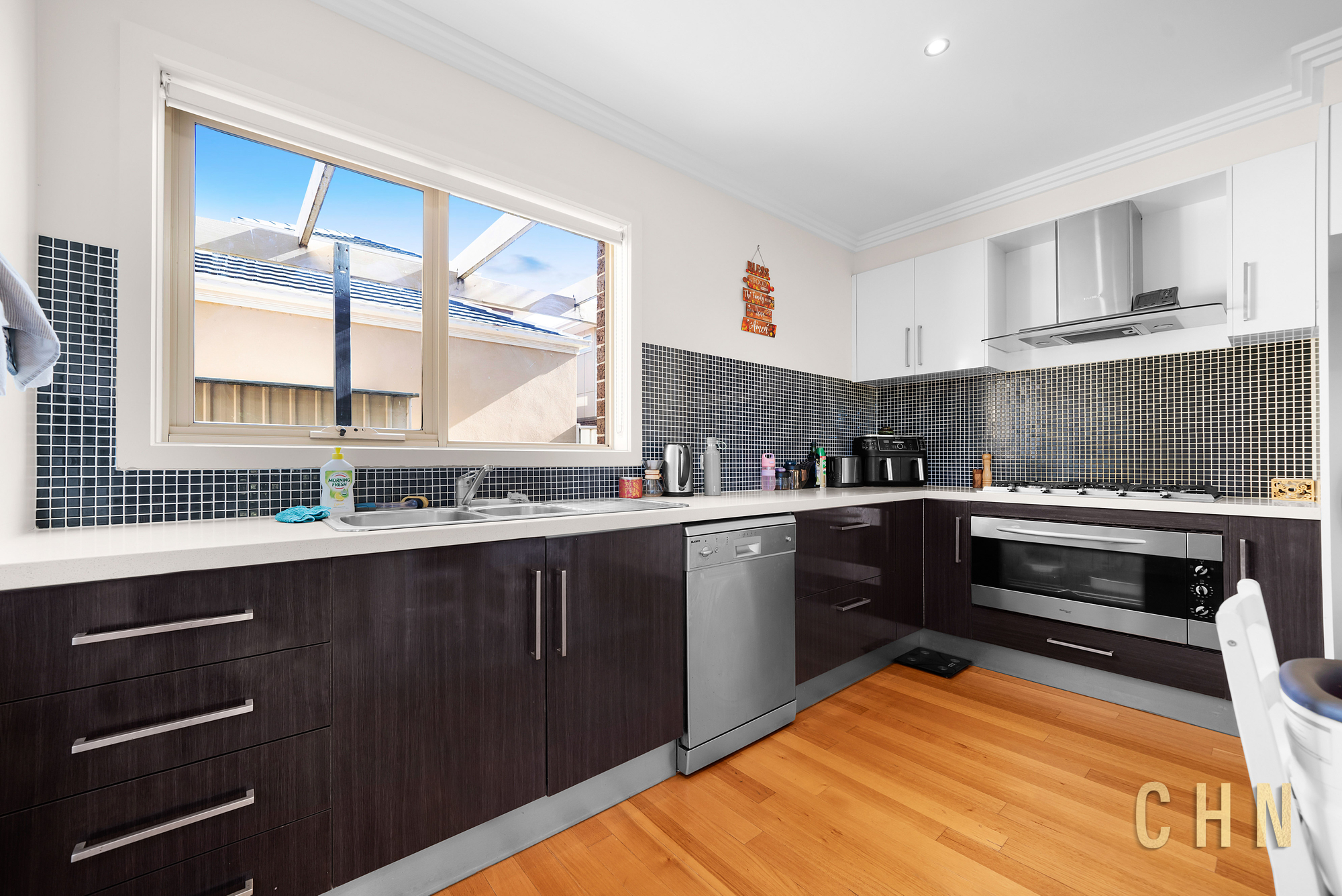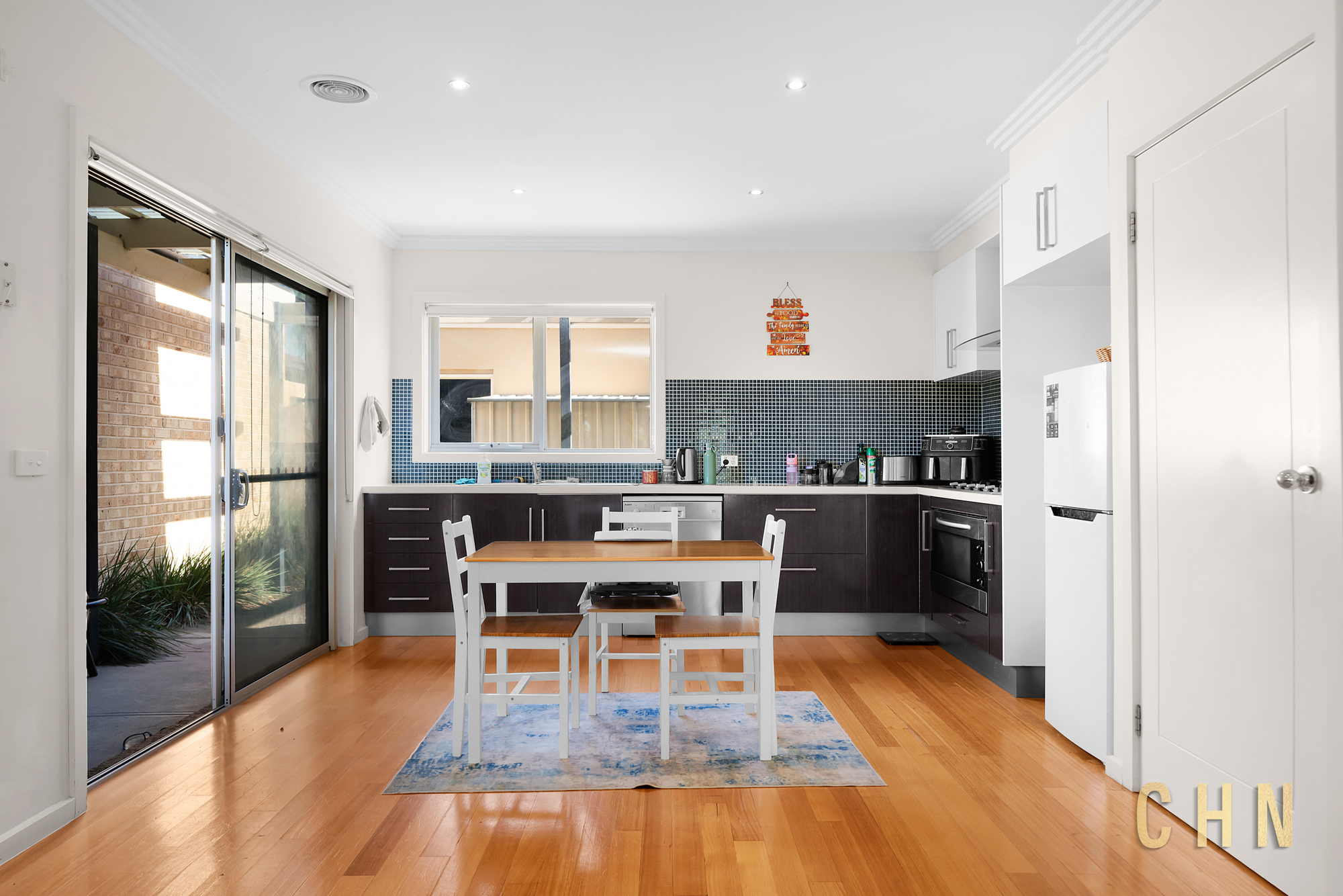 North-facing and thoughtfully designed, the home welcomes you with timber flooring and downlighting throughout, creating a bright and inviting atmosphere. The light-filled living and dining zone enjoys excellent natural sunlight and flows seamlessly to a paved alfresco area — an ideal setting for entertaining or relaxed outdoor living.