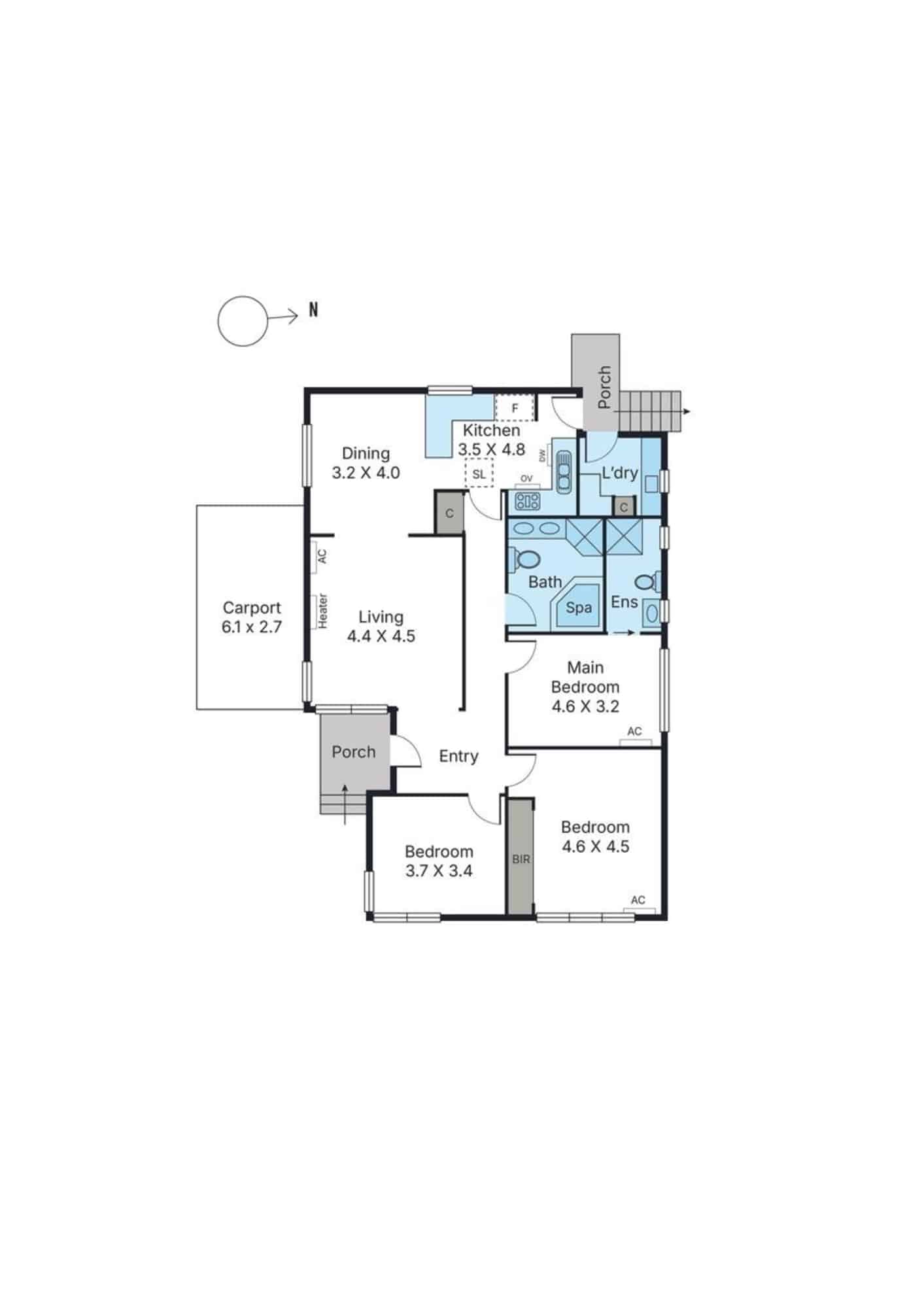 The main bedroom features generous built-in robes, while the central bathroom is appointed with a corner spa. Added comforts include ducted heating, split system cooling and a convenient carport.