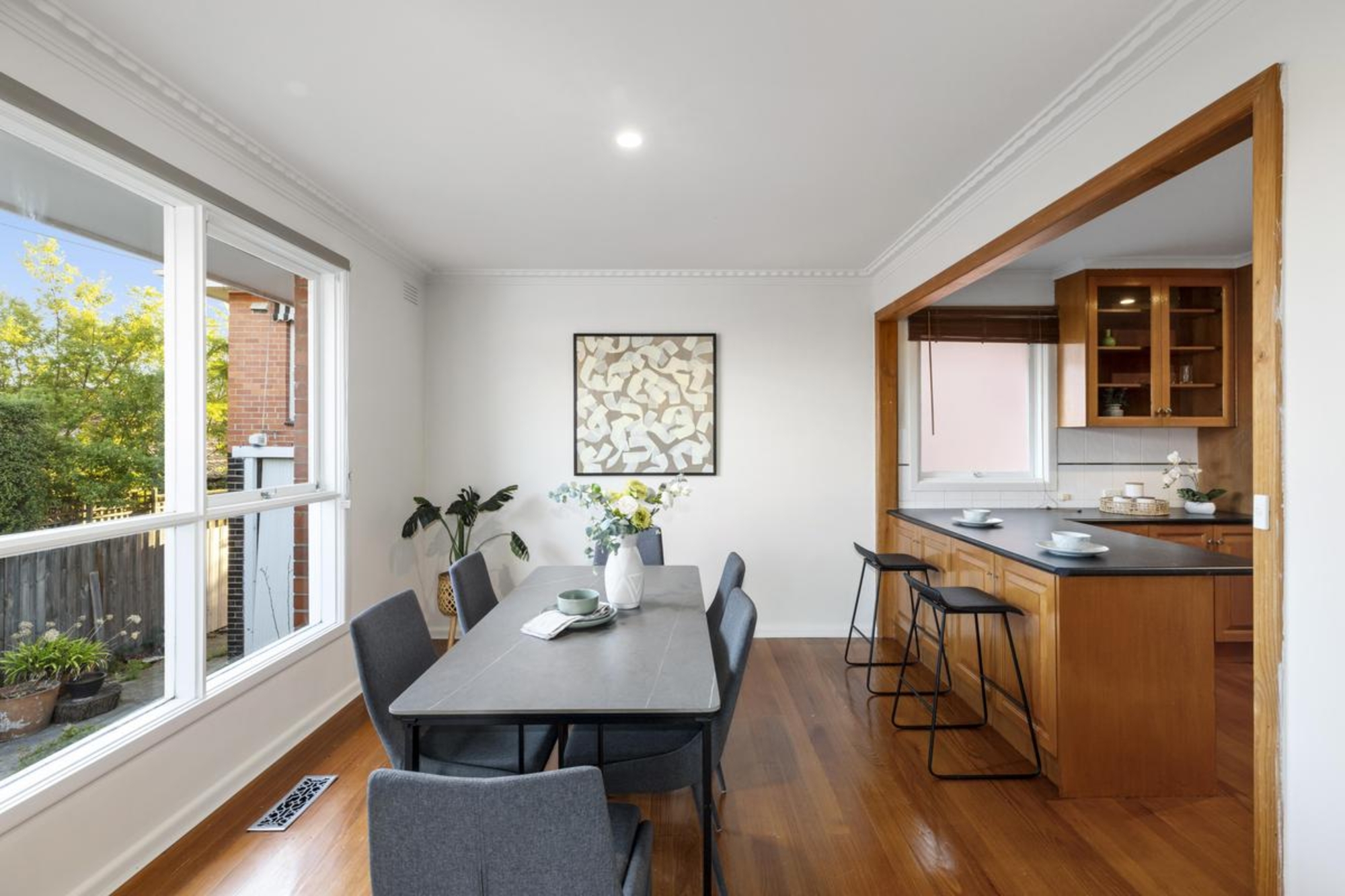 Framed by delightful garden vistas, the home sits within the prized zoning for Surrey Hills Primary and Box Hill High School, making it an ideal choice for couples, young families or downsizers seeking lifestyle and convenience.