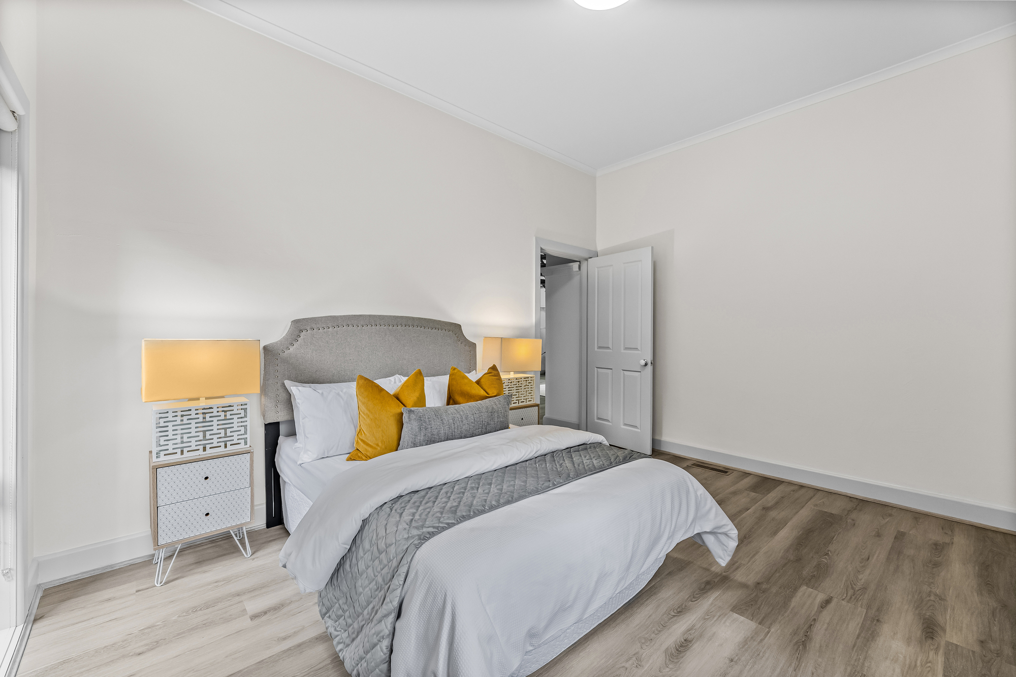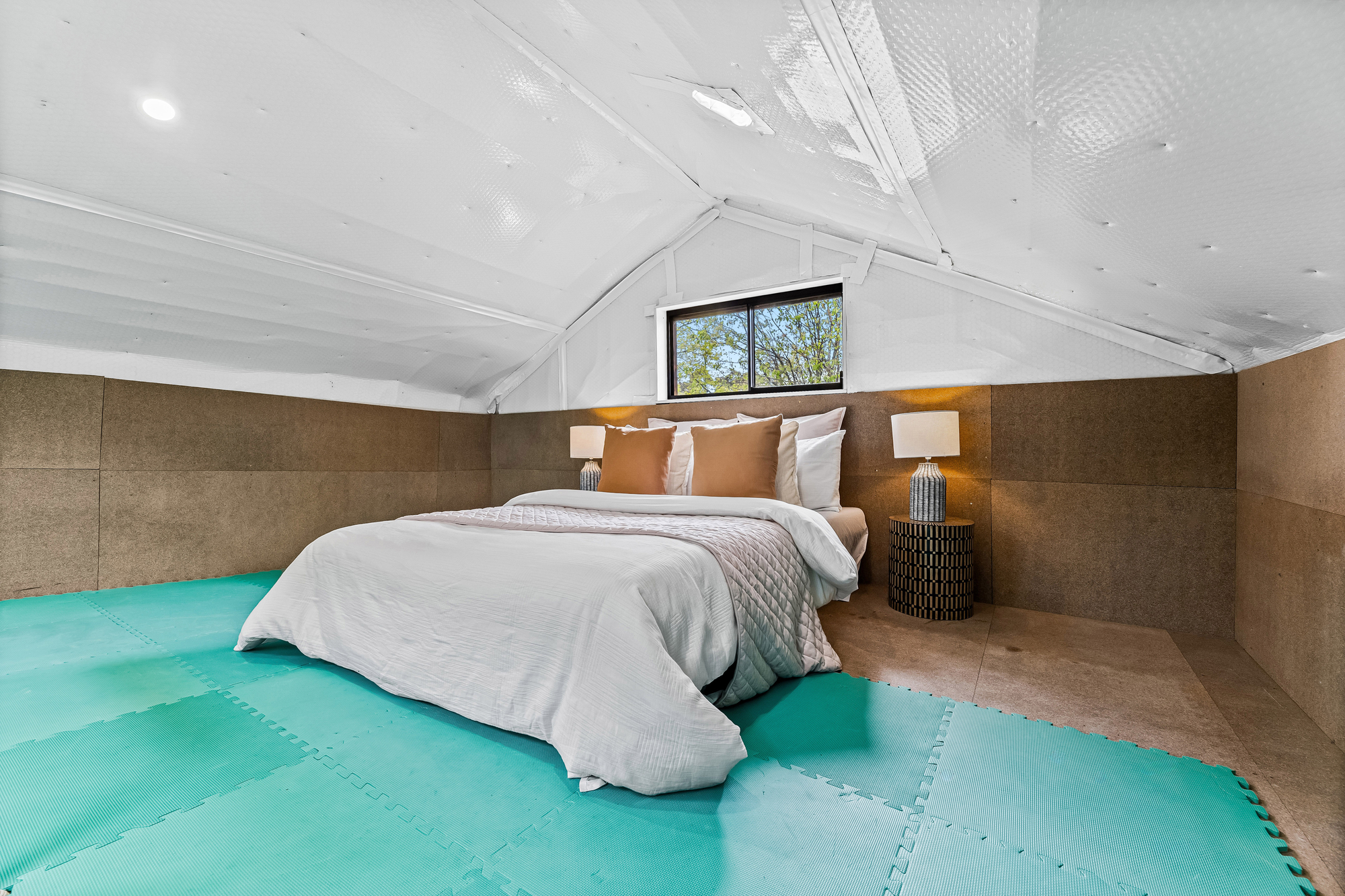 Three bedrooms offer flexibility for growing families or working from home. The main bedroom features a walk-in robe and ensuite, while another bedroom includes a built-in robe. Each room enjoys windows for natural light, and a retreat in the attic showcases two skylights for an airy, elevated feel. Both bathrooms feature tiled floors and a full bath, complemented by high ceilings that enhance the home’s spacious atmosphere. Additional features include solar panels installed, ample storage, a low-maintenance garden, and a shed for practicality.