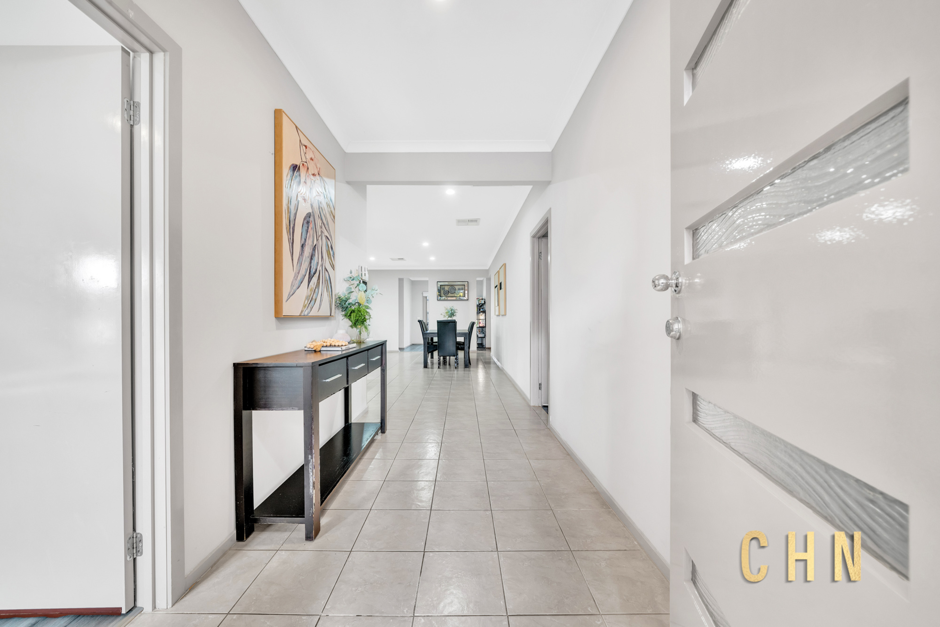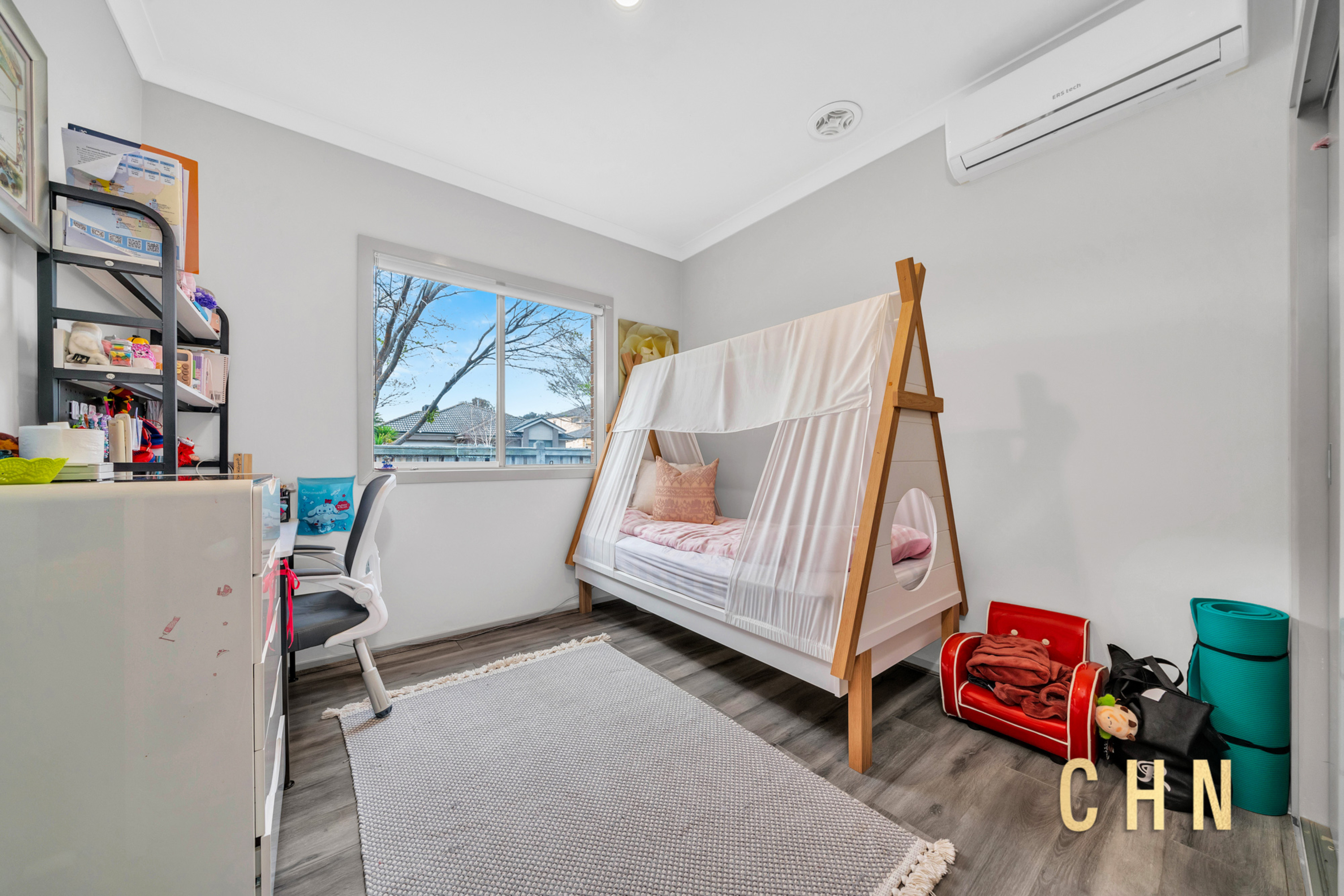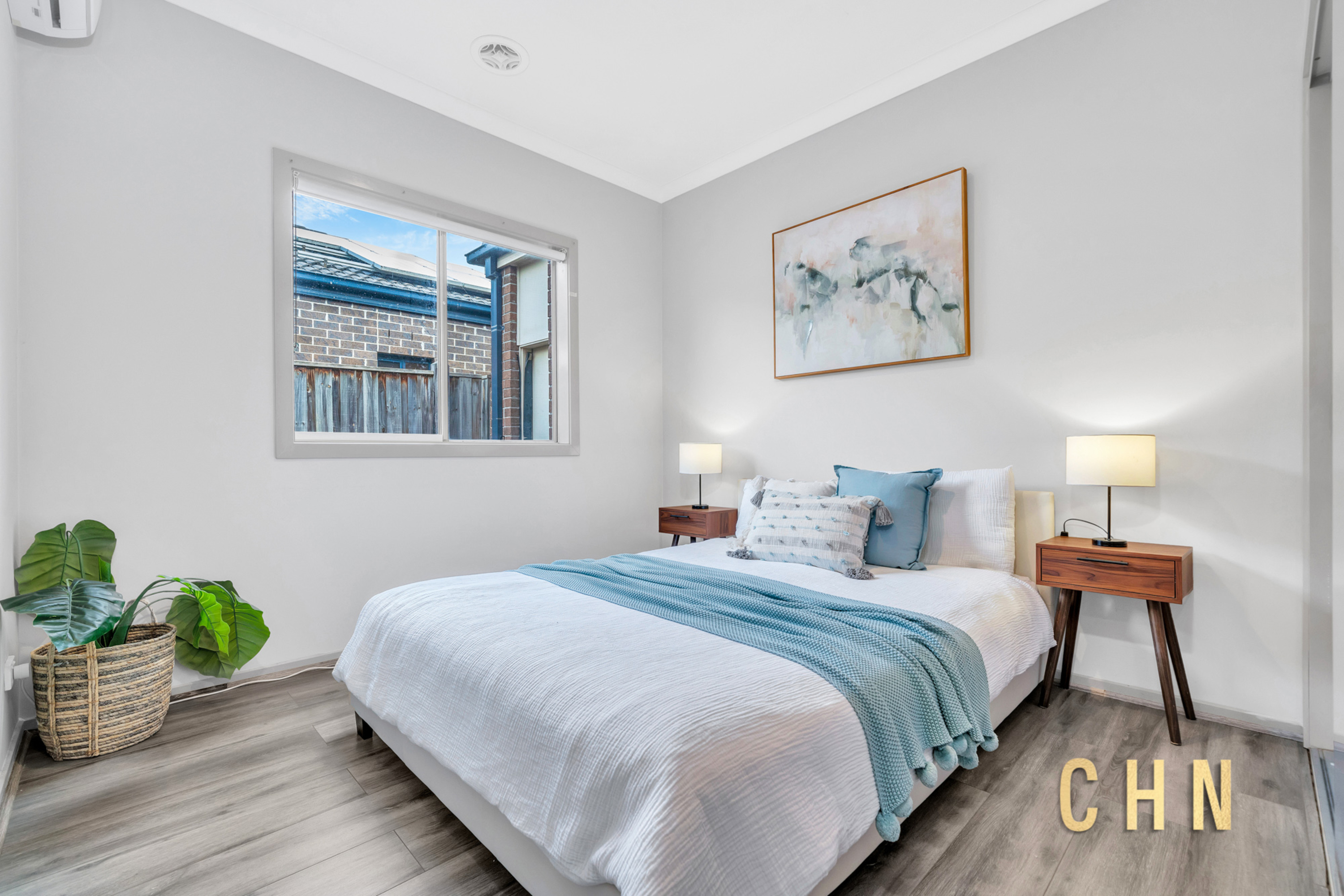 Inside, high ceilings, tiles, and floorboards set the tone for stylish everyday living. The master bedroom is a private retreat featuring a walk-in robe, individual split system cooling, and a luxurious ensuite with dual vanity, spa-style bathtub, and walk-in shower. Additional bedrooms are generously sized, each fitted with built-in robes and individual split systems, serviced by a central bathroom with upgraded vanity and walk-in shower.