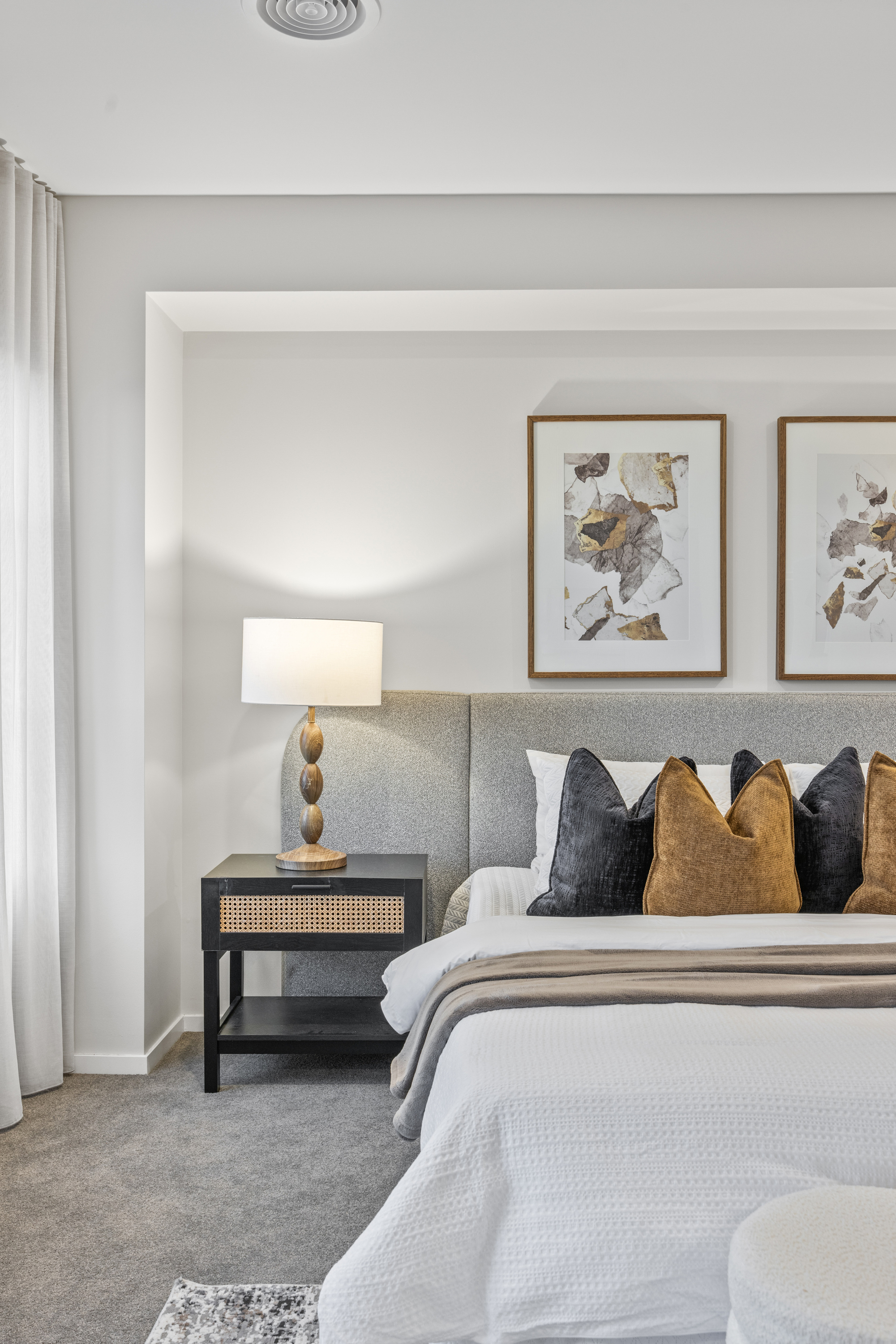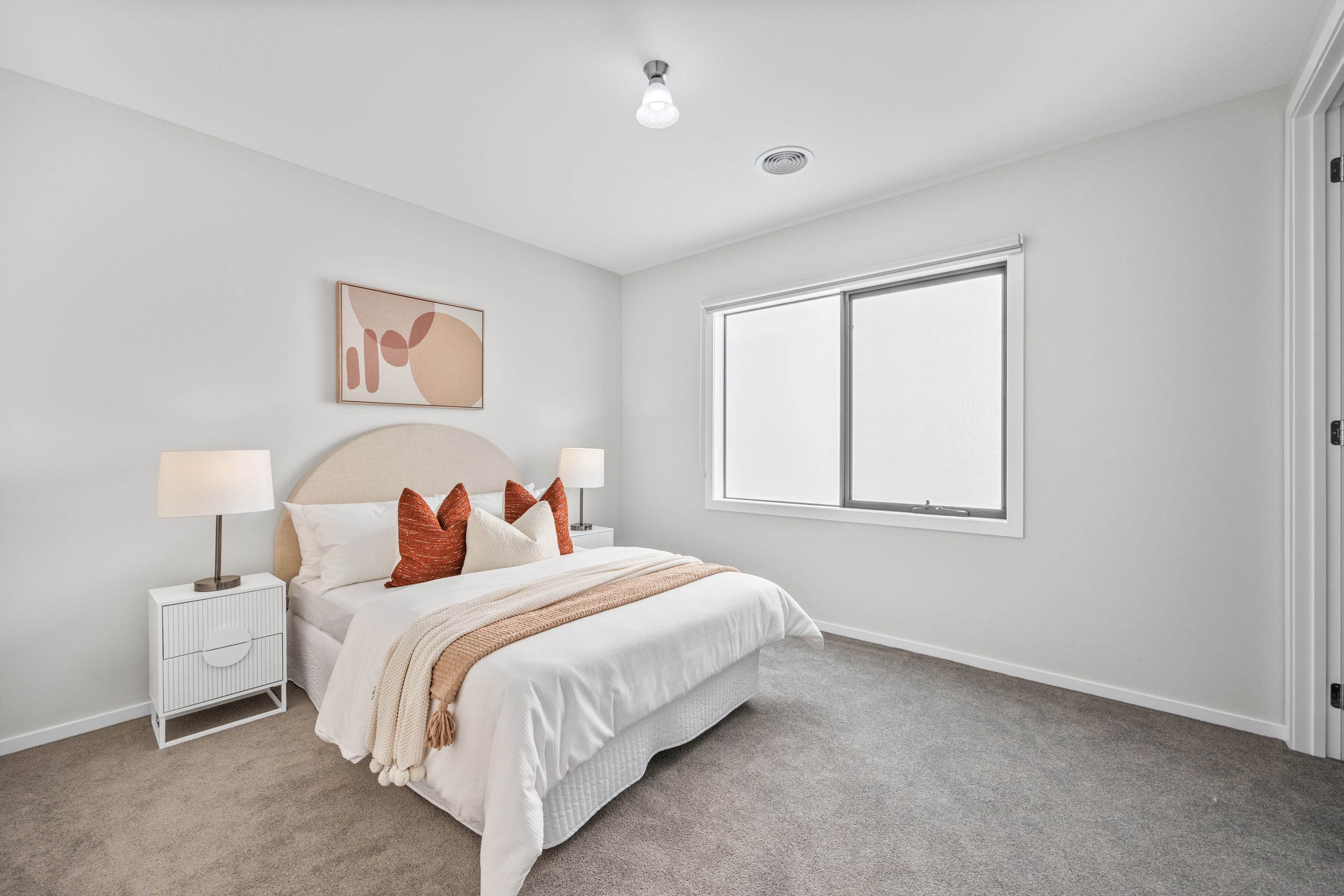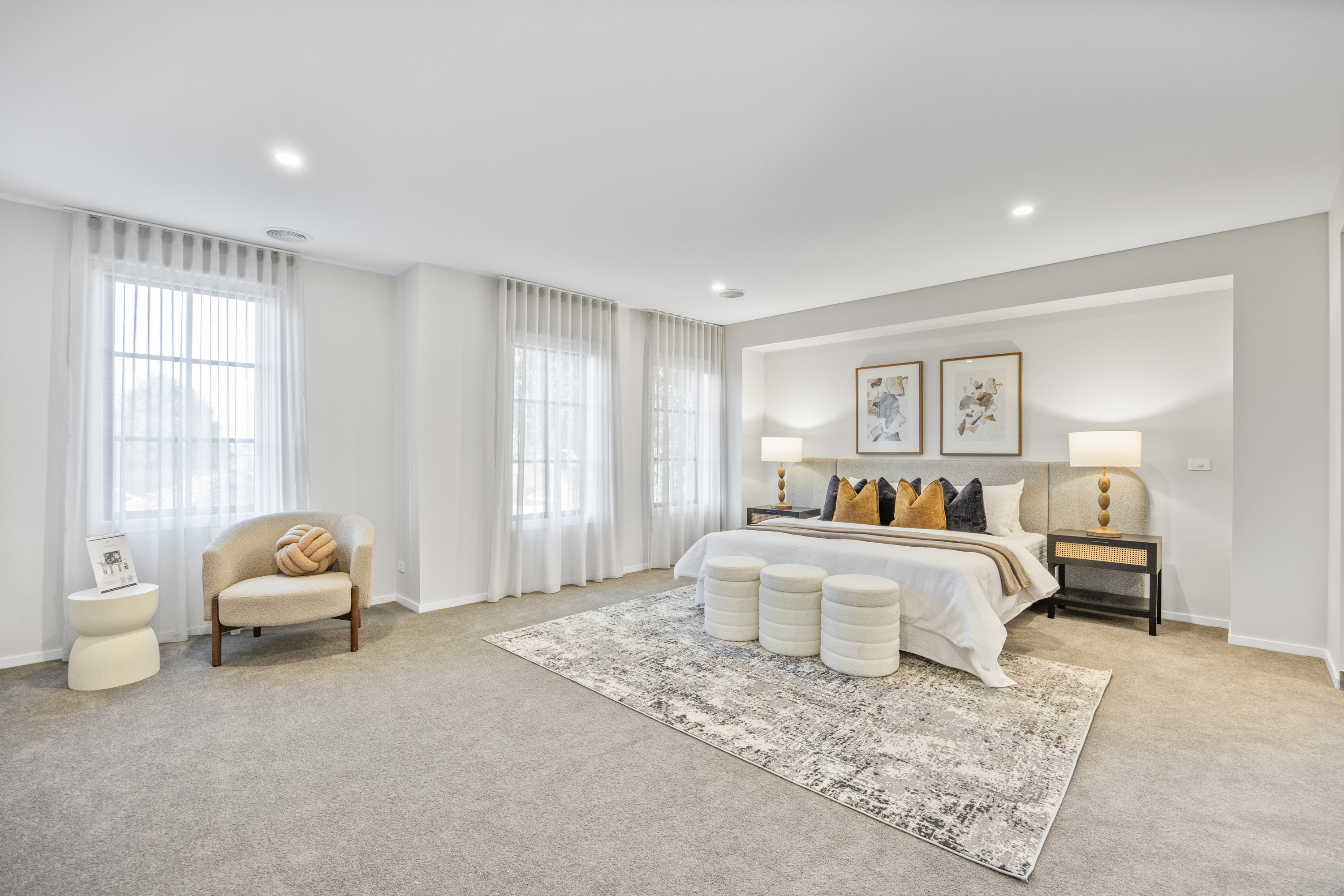 The open-plan living and dining areas feature floorboards, natural light, and seamless indoor-outdoor flow through double stacker doors leading to a covered alfresco. Sheer curtains and block-out blinds add versatility, while an additional upstairs retreat enhances living flexibility.