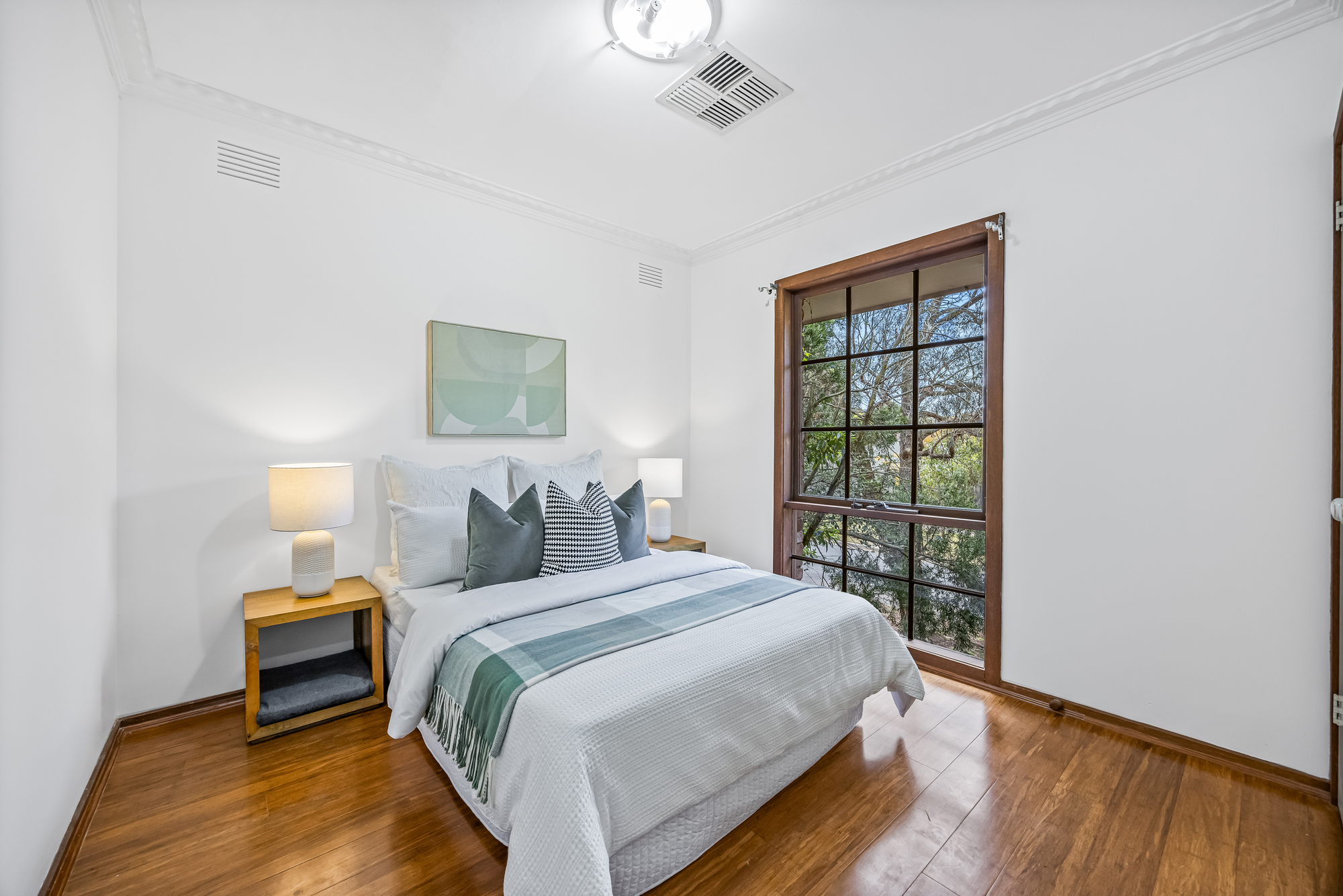 Accommodation comprises three bedrooms with floorboards in every room; two include built-in robes, and all enjoy natural light and a comfortable sense of space. Serviced by 1.5 bathrooms, the tiled wet areas feature a bath, tiled single vanity, and chrome tapware and finishes. A laundry provides ample overhead storage, and ducted heating with evaporative cooling keeps the home comfortable year-round. Completing the picture is a secure lock-up garage for one car and low-maintenance garden surrounds.