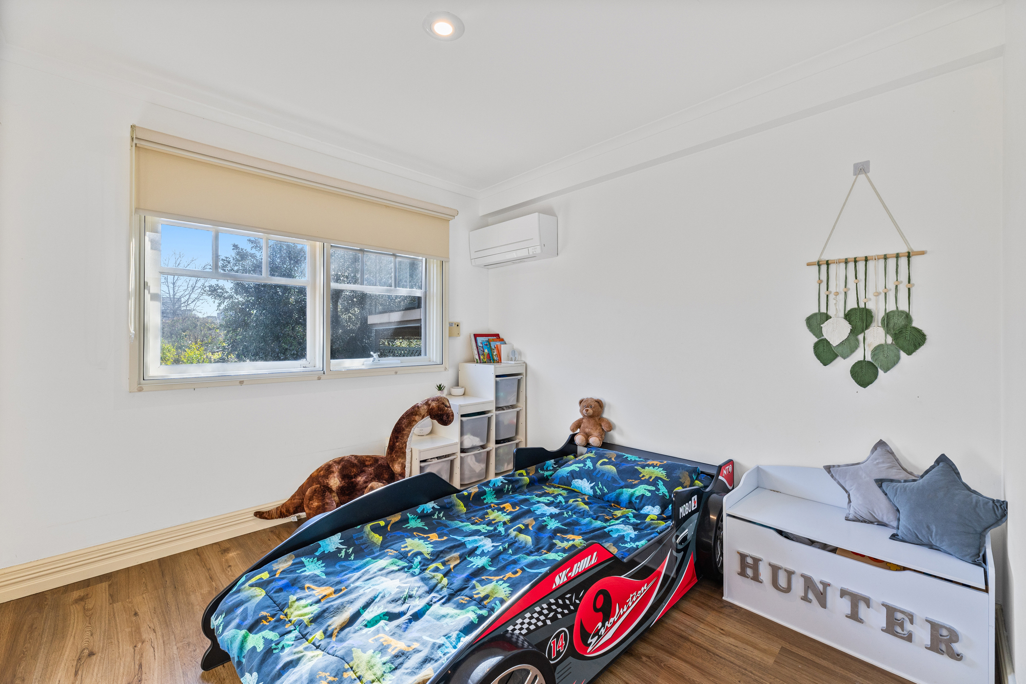 Upstairs, three well-proportioned bedrooms each include built-in robes and their own split system units for heating and cooling. The bathrooms are designed with family needs in mind, offering a full bath, separate shower, and stylish finishes. A converted garage with external access now functions as a study, complete with its own vanity – ideal for flexible use.