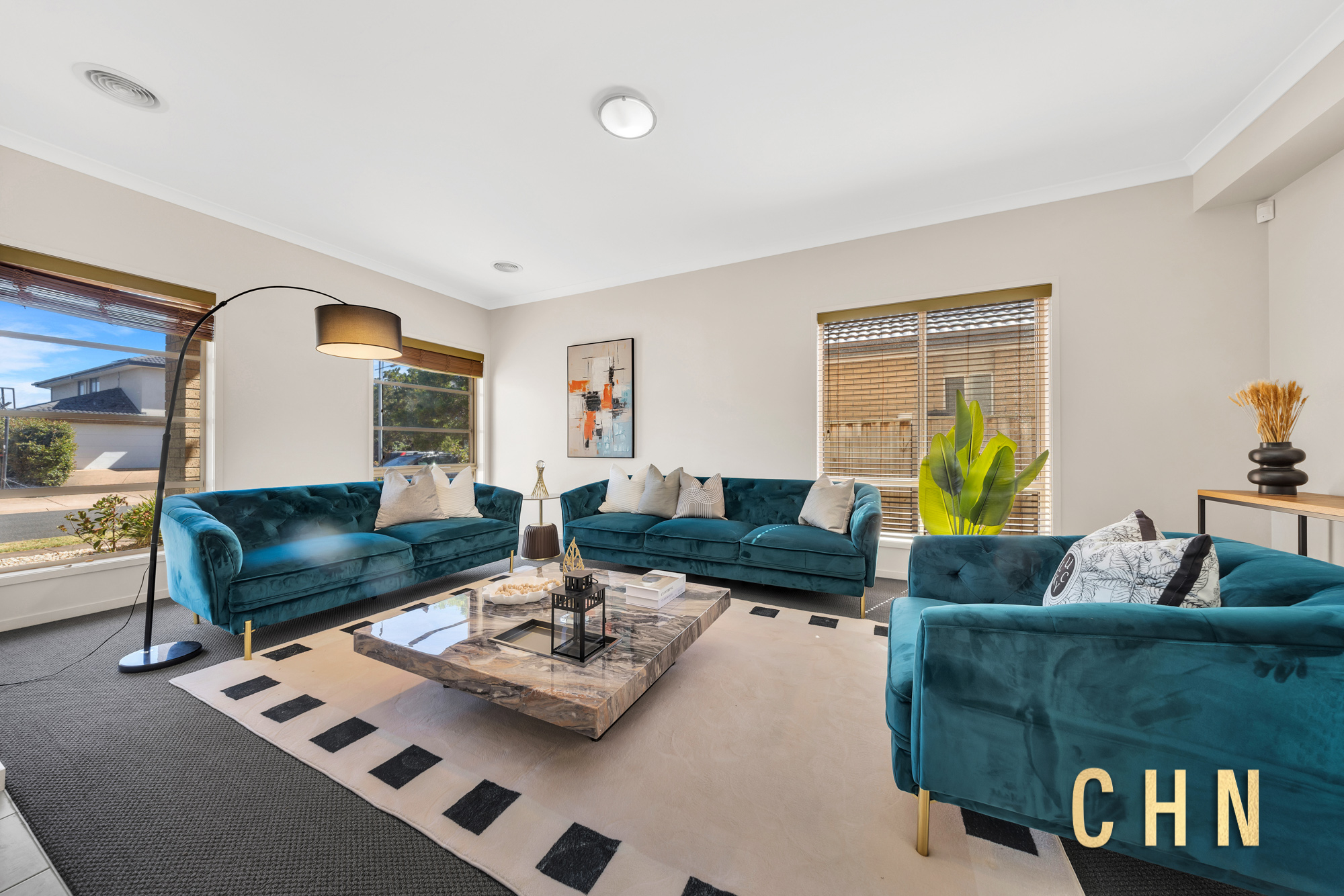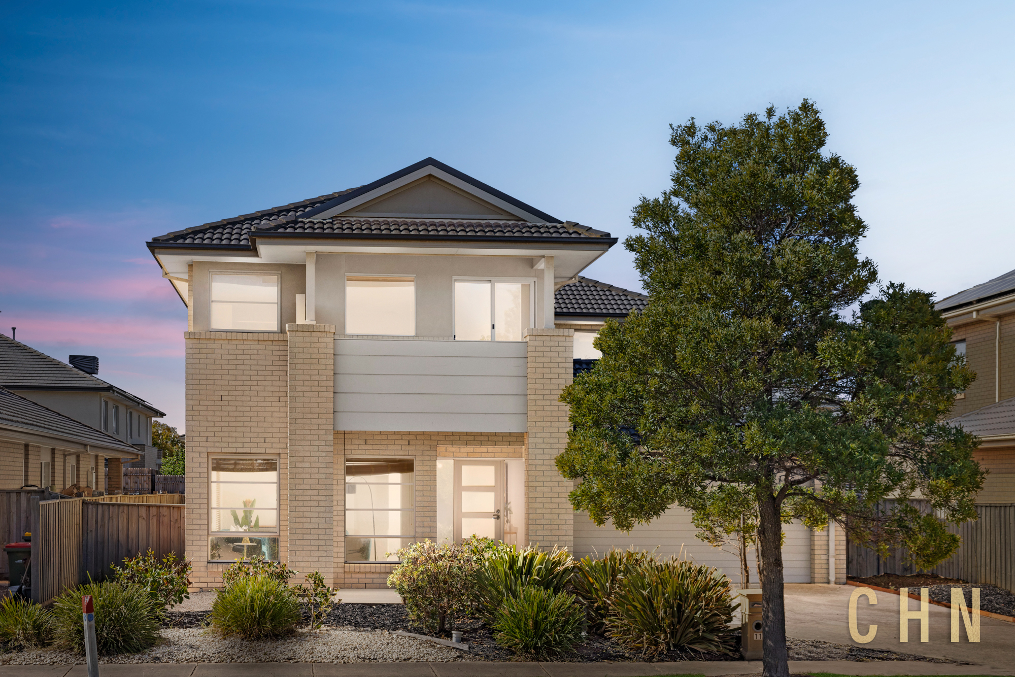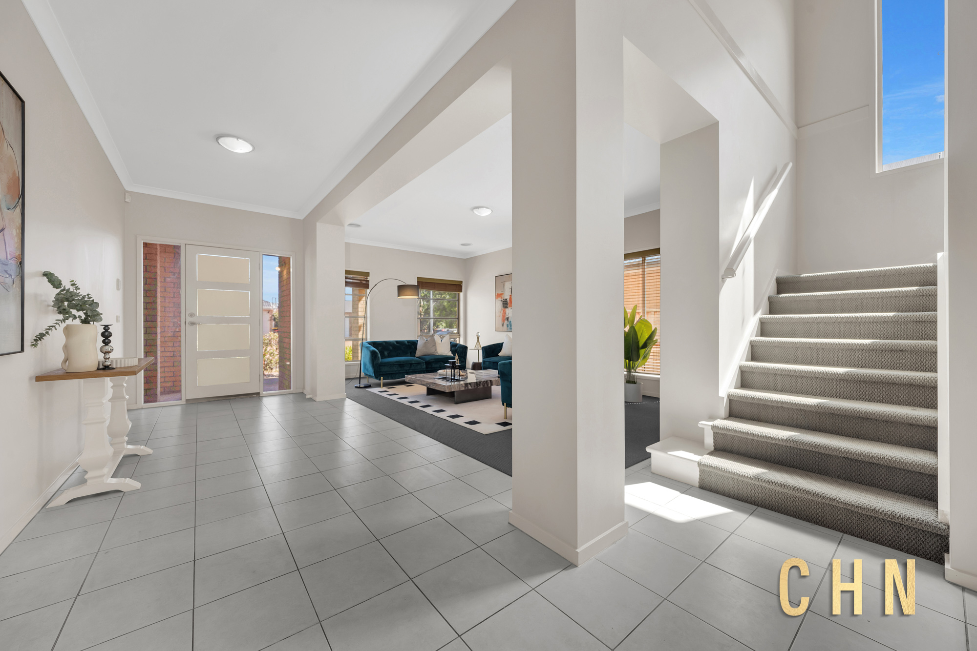 Large street-facing windows and a sunlit stairway create an immediate sense of openness, while the double-storey design delivers excellent separation between living and accommodation zones.
