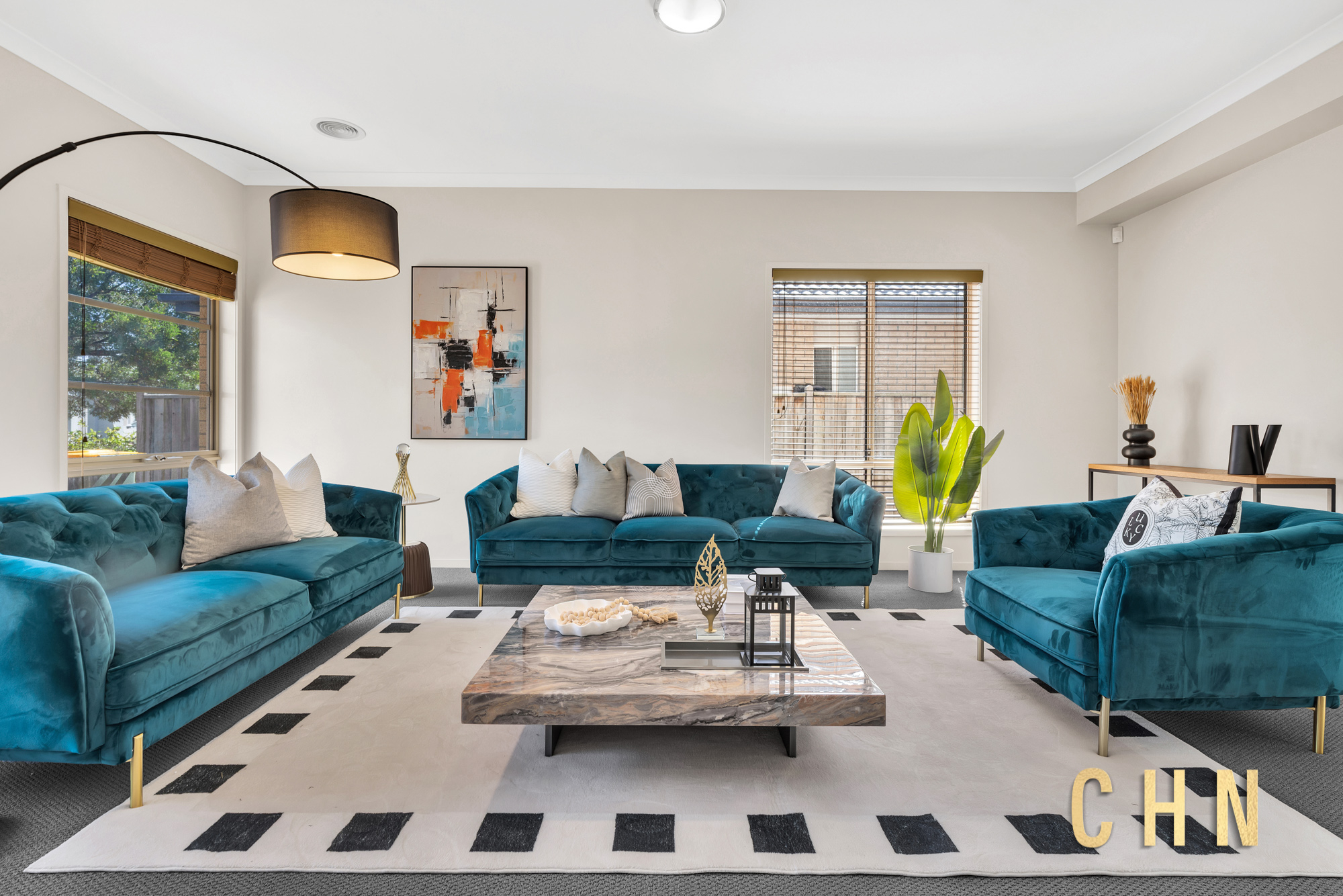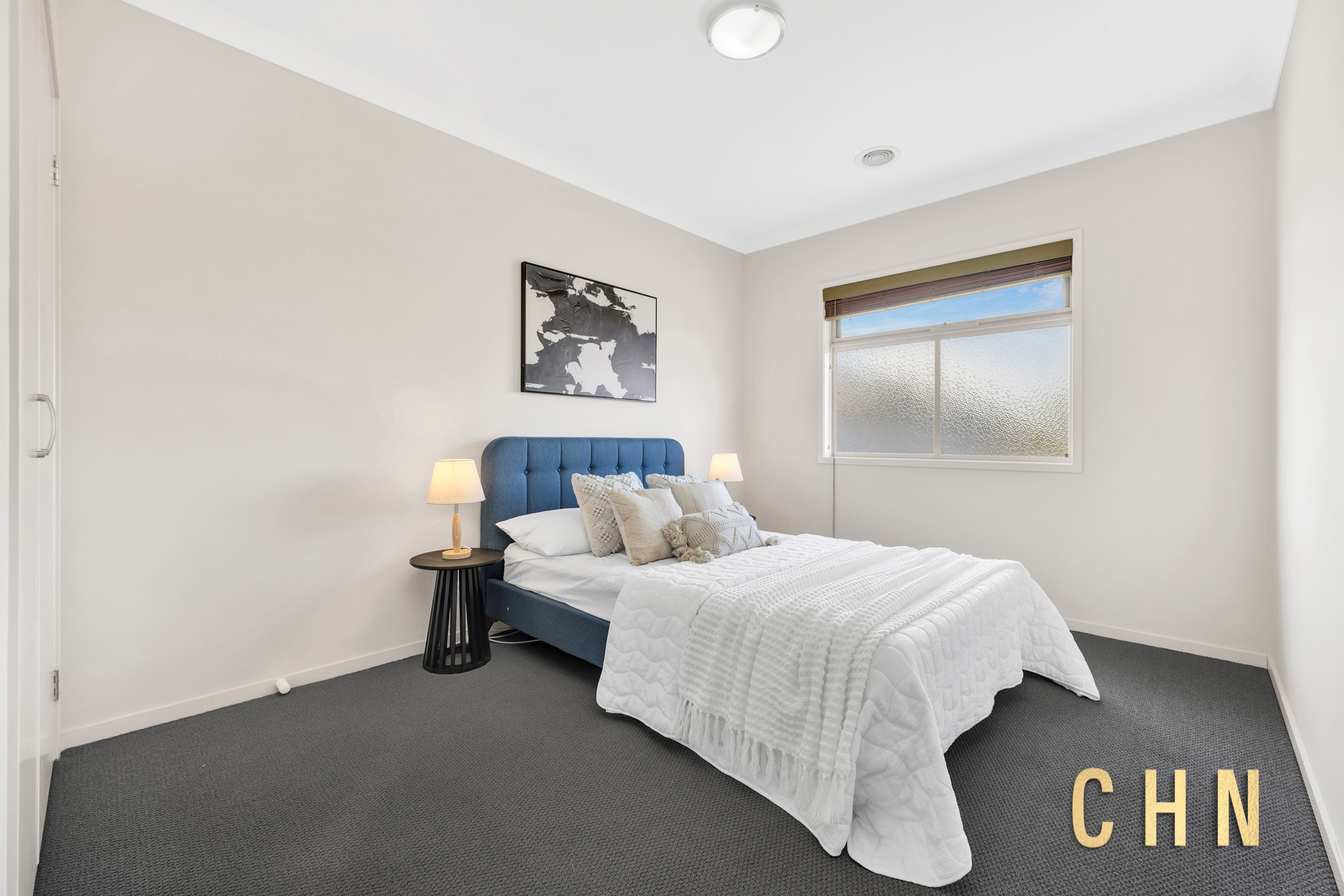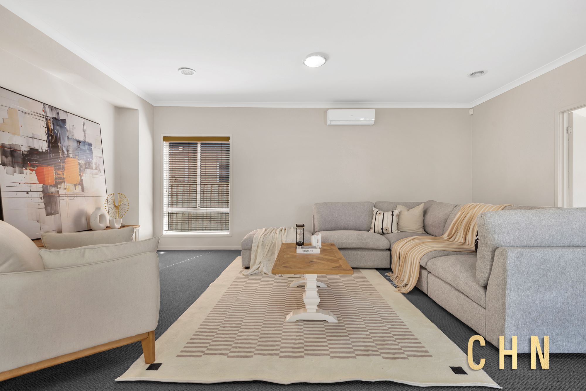Large street-facing windows and a sunlit stairway create an immediate sense of openness, while the double-storey design delivers excellent separation between living and accommodation zones.