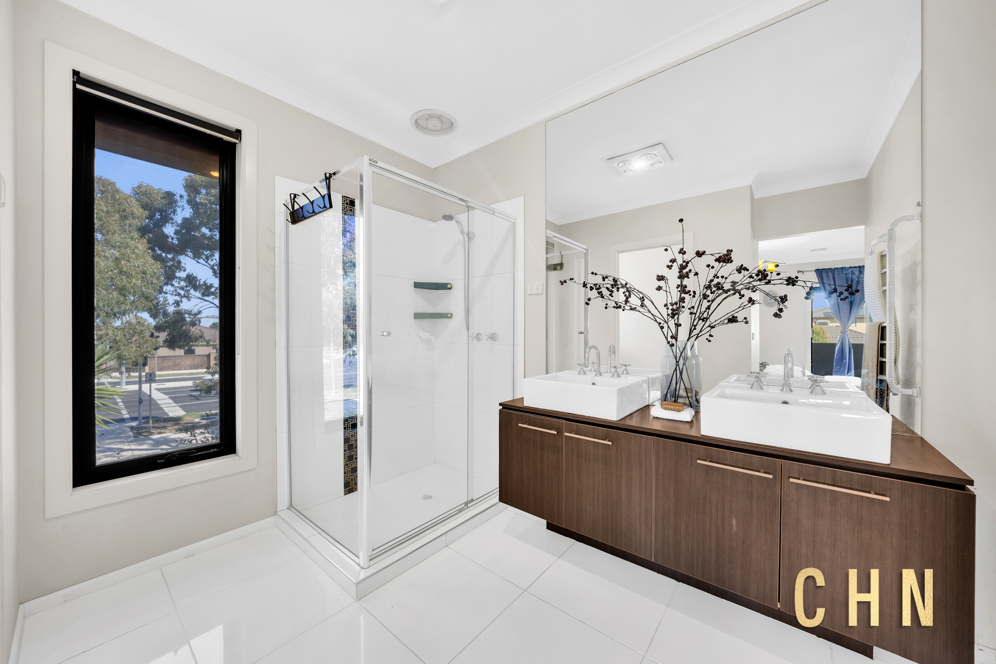 Upstairs, comfort continues with a sun-drenched living area and study nook, leading to a roofed balcony perfect for quiet retreats. The supersized master bedroom is a luxurious haven with a private balcony, walk-in robe, and ensuite featuring dual vanities, heated towel racks, spa ceiling lights, and an enclosed toilet. All additional bedrooms are generously sized, filled with light, and equipped with spacious robes. A central bathroom with a sparkling bathtub, walk-in shower, and heating ceiling lights completes the upper level.