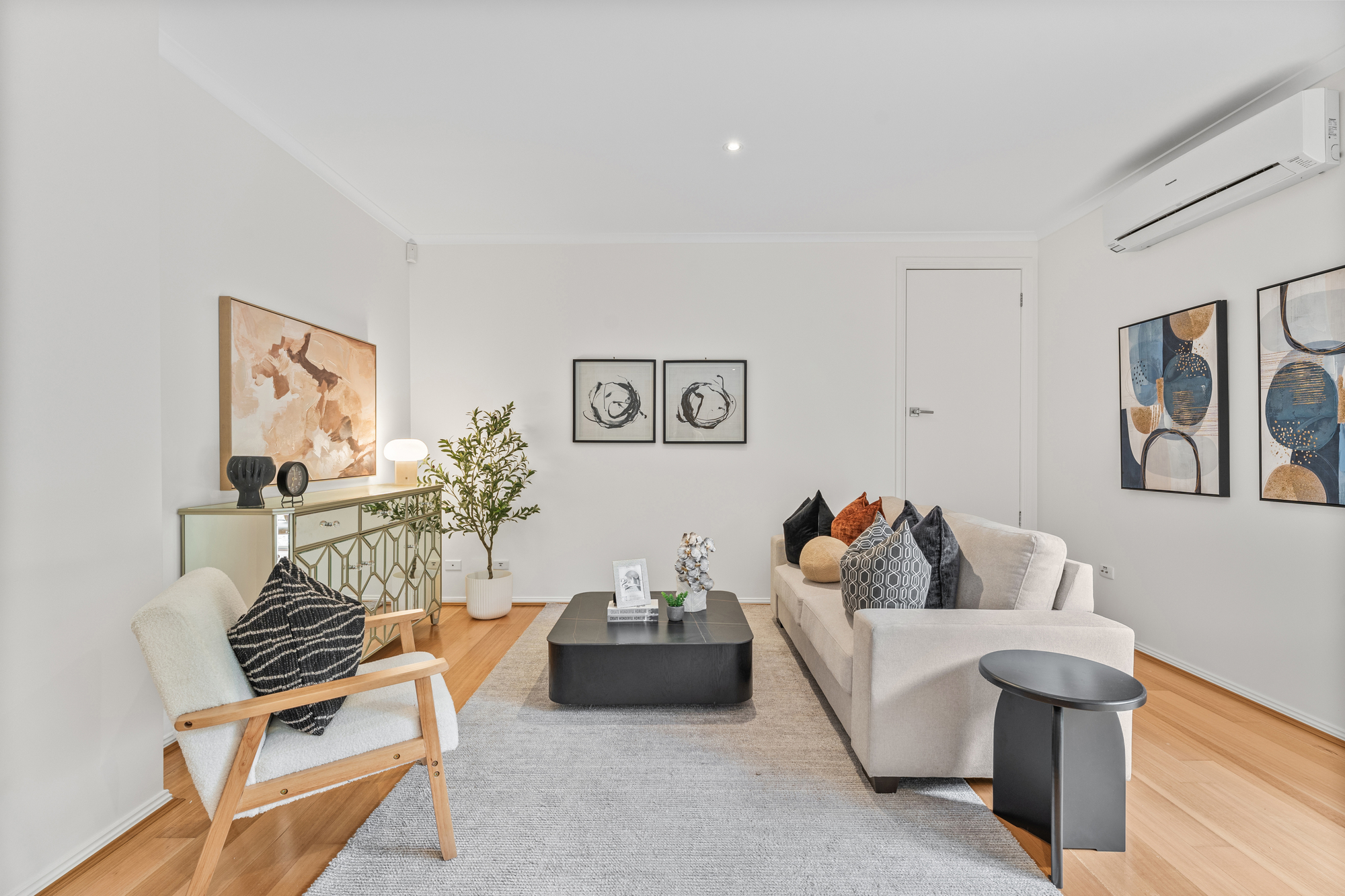 This modern double-storey brick home features a practical layout and spacious design, ideally situated within two prestigious school zones. The formal living and dining area feature timber floors, ducted heating, and a split system air conditioner, while the carpeted lounge opens through sliding doors to the outdoor entertaining area and low-maintenance backyard.