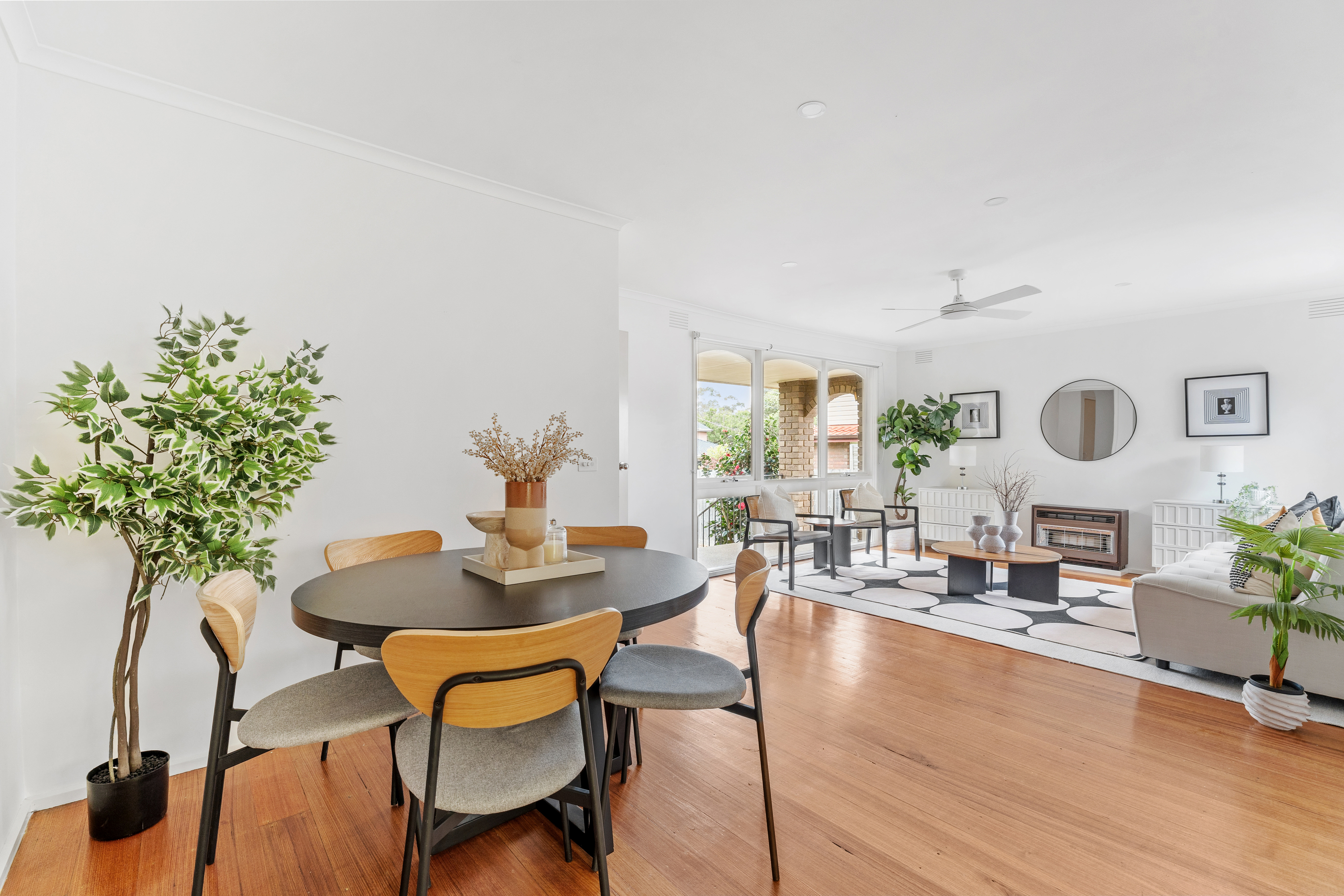 The interior is finished with timber flooring throughout, creating a warm and cohesive feel. The living area benefits from natural light, ceiling fans, and an electric heater, while gas ducted floor heating ensures comfort in cooler months. A private front porch adds to the welcoming entry.