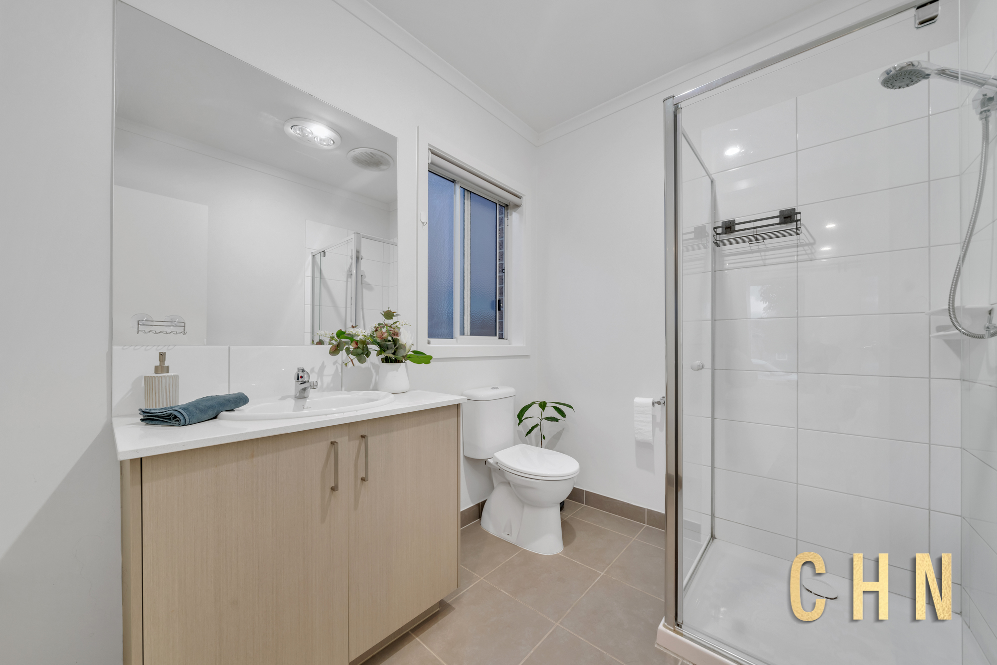Inside, high ceilings and LED downlights create an airy ambiance, complemented by ducted heating and evaporative cooling for year-round comfort. The spacious master bedroom offers a walk-in robe and private ensuite, complete with a Caesar stone vanity, walk-in shower, and heating lamps. Three additional generous bedrooms feature built-in robes with dual sliding doors, while the central family bathroom impresses with a sparkling bathtub and stone-topped vanity.