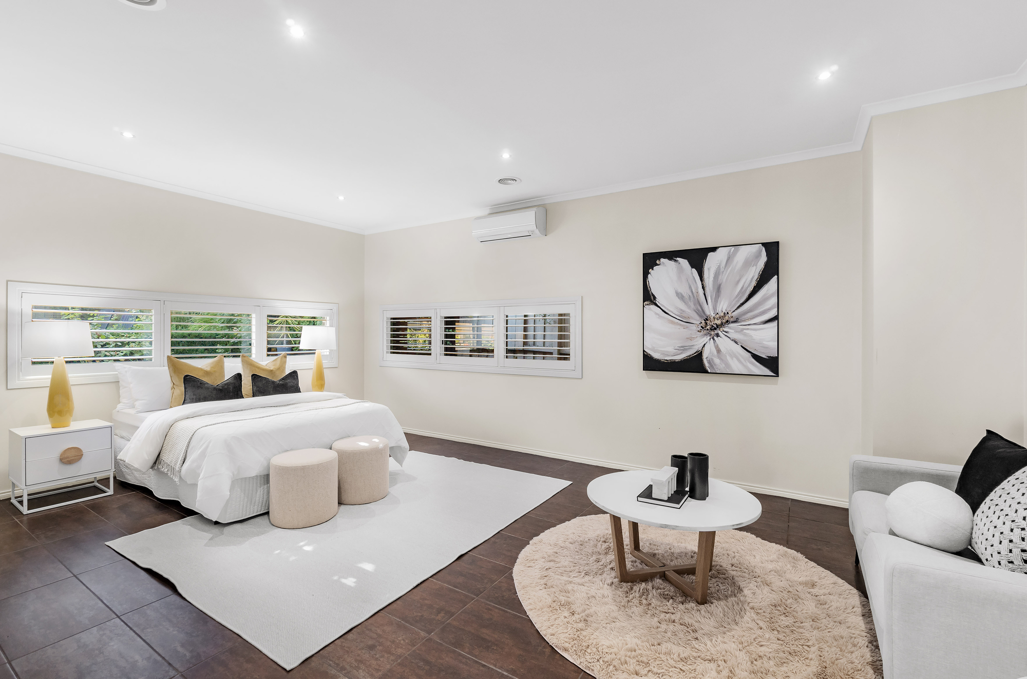 The luxurious master suite is a true retreat, complete with a walk-in robe, private ensuite, and balcony access, while the additional bedrooms offer generous proportions and built-in storage. Upstairs, a spacious retreat provides a private haven for relaxation.