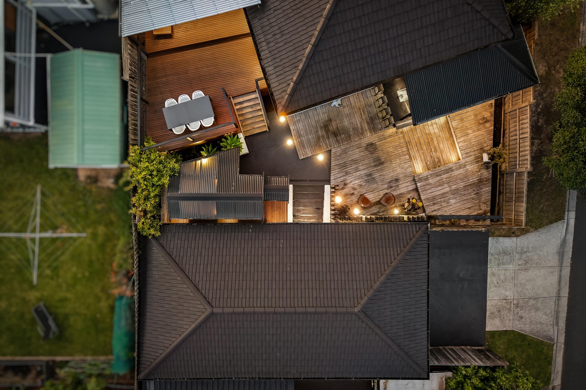 Further highlight is the eclectic modern spacious cubby house with mezzanine level, lighting, functional windows and its own carport decking and is a great fun space for fostering the imagination of young children whilst securely playing in their own backyard.