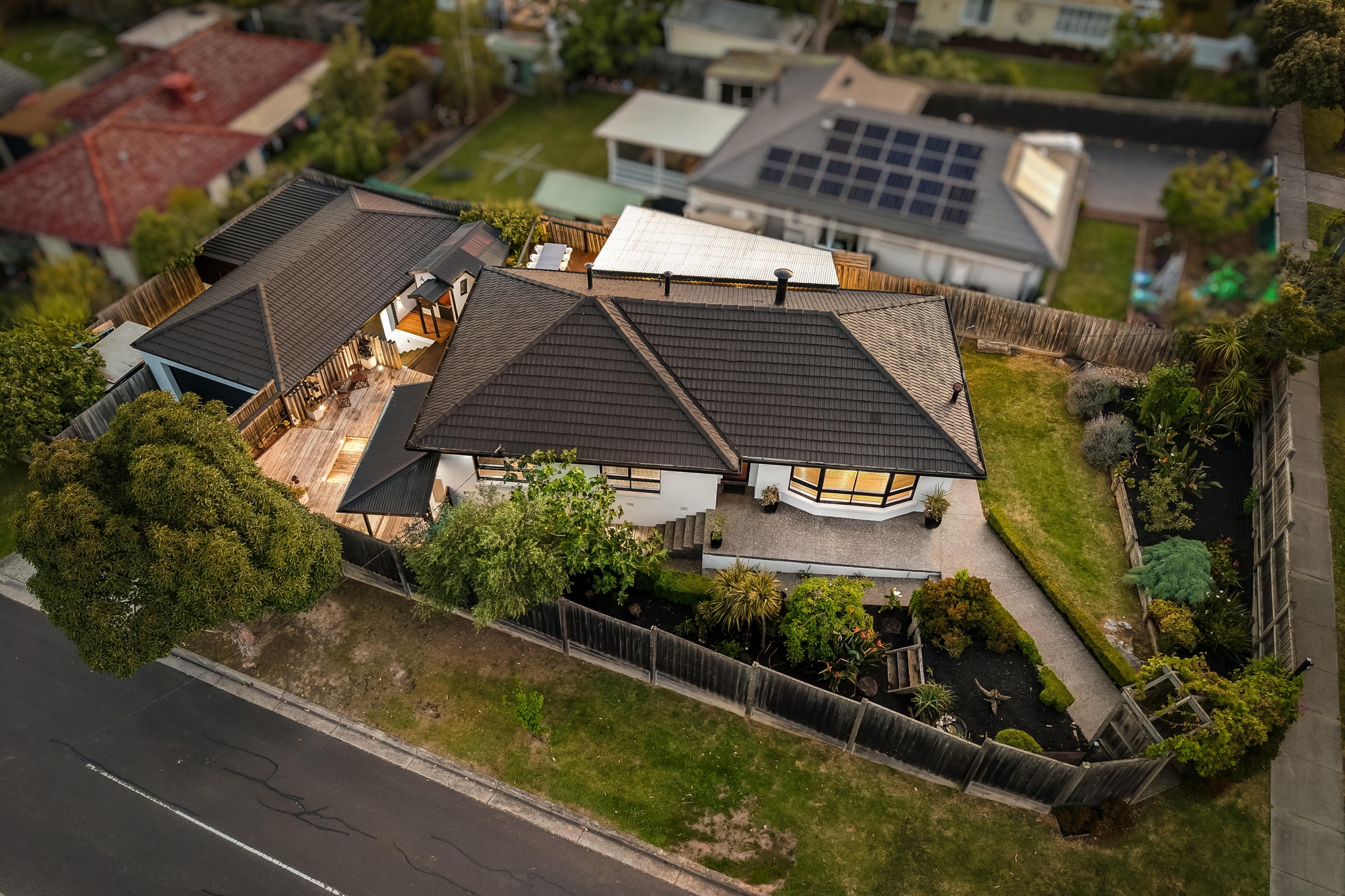 The property is secured with perimeter fences, CCTV and alarm with remote accessibility & viewing, making it a safe & private sanctuary for families. The landscape & garden feature grapevines, mature cherry blossoms, fig, lemon and olive trees on multi-levels to create different spaces to enjoy within the property.
