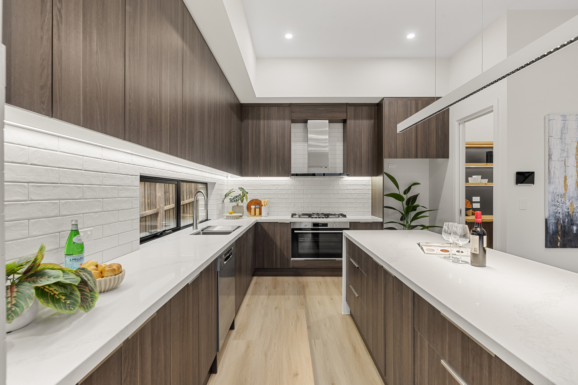The home’s expansive open-plan living and dining zones are bathed in natural light, seamlessly connecting to a designer kitchen featuring sleek stone benchtops, quality appliances, and abundant storage. This stylish space is perfect for both relaxed family meals and hosting friends in style.