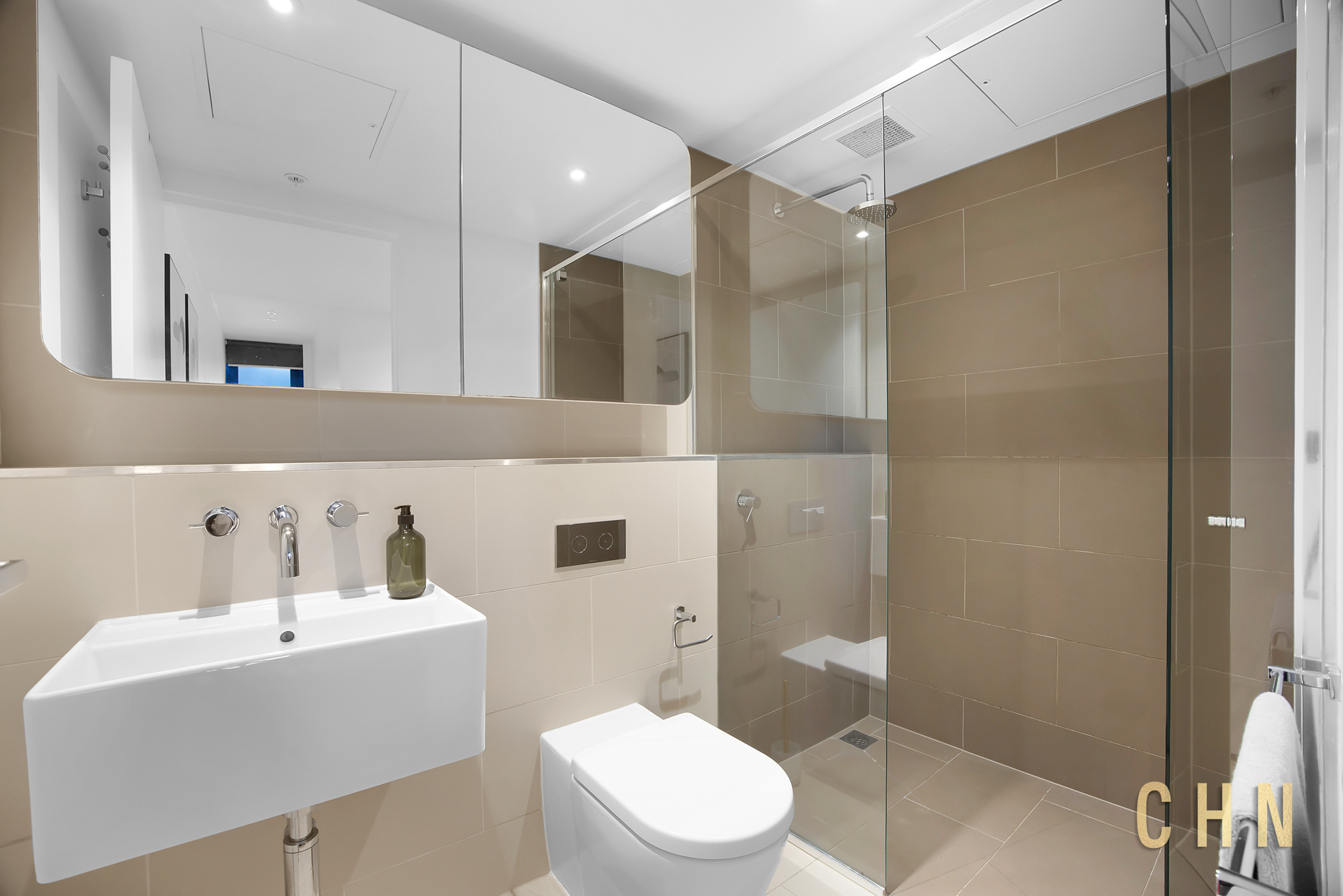 A generous private balcony provides a relaxing retreat, capturing beautiful views across Exhibition Gardens and the city skyline — ideal for unwinding or entertaining.