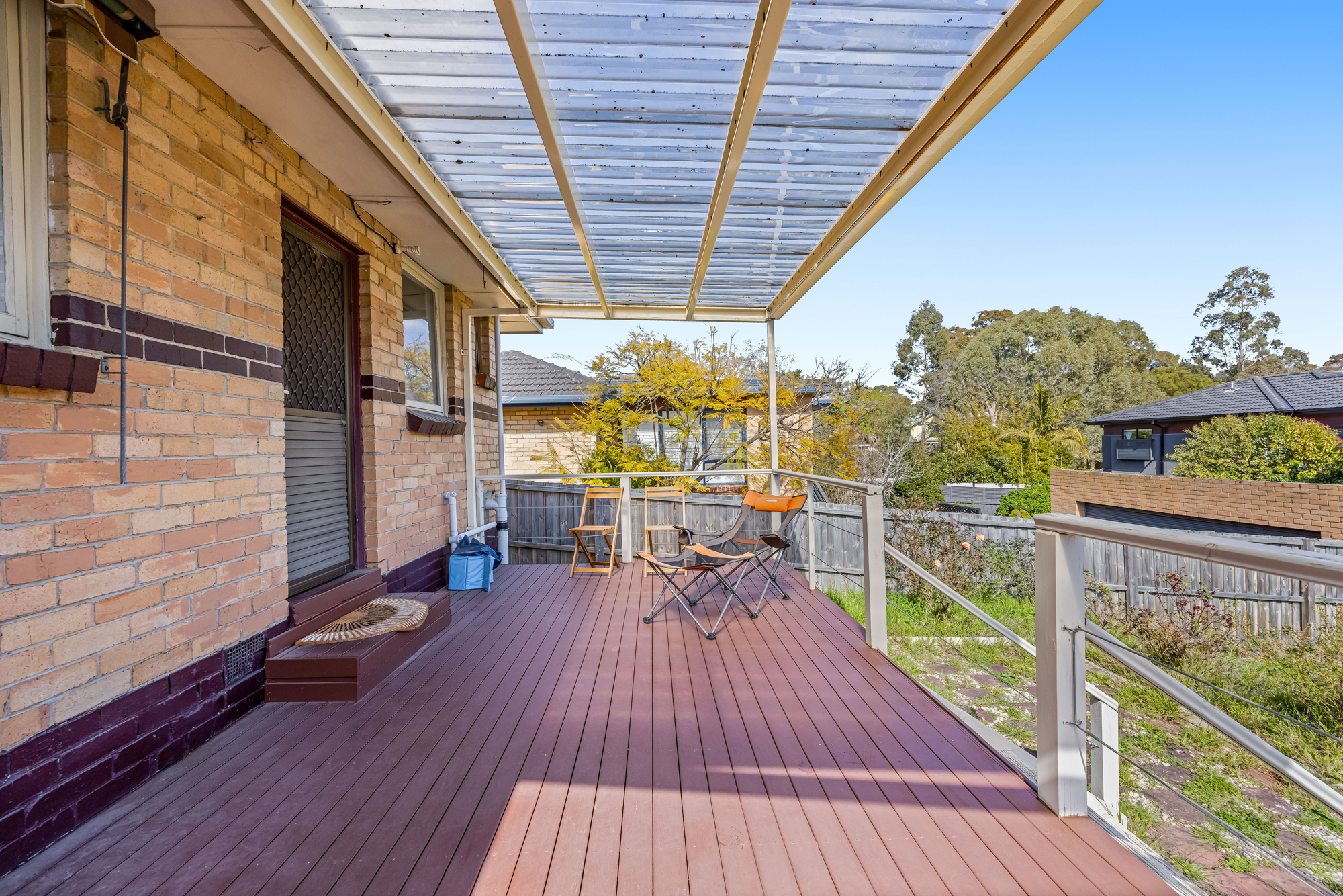 As you venture outdoors, a picturesque covered deck awaits, a place to savour tranquil moments while admiring the beautifully landscaped yard. Imagine entertaining friends and family amidst the gentle breeze, while the home is shaded by external blinds that add a touch of brilliance. The yard is expansive, offering a secure haven for children to play freely, surrounded by a driveway gate and a huge lock-up garage that stands the test of time.