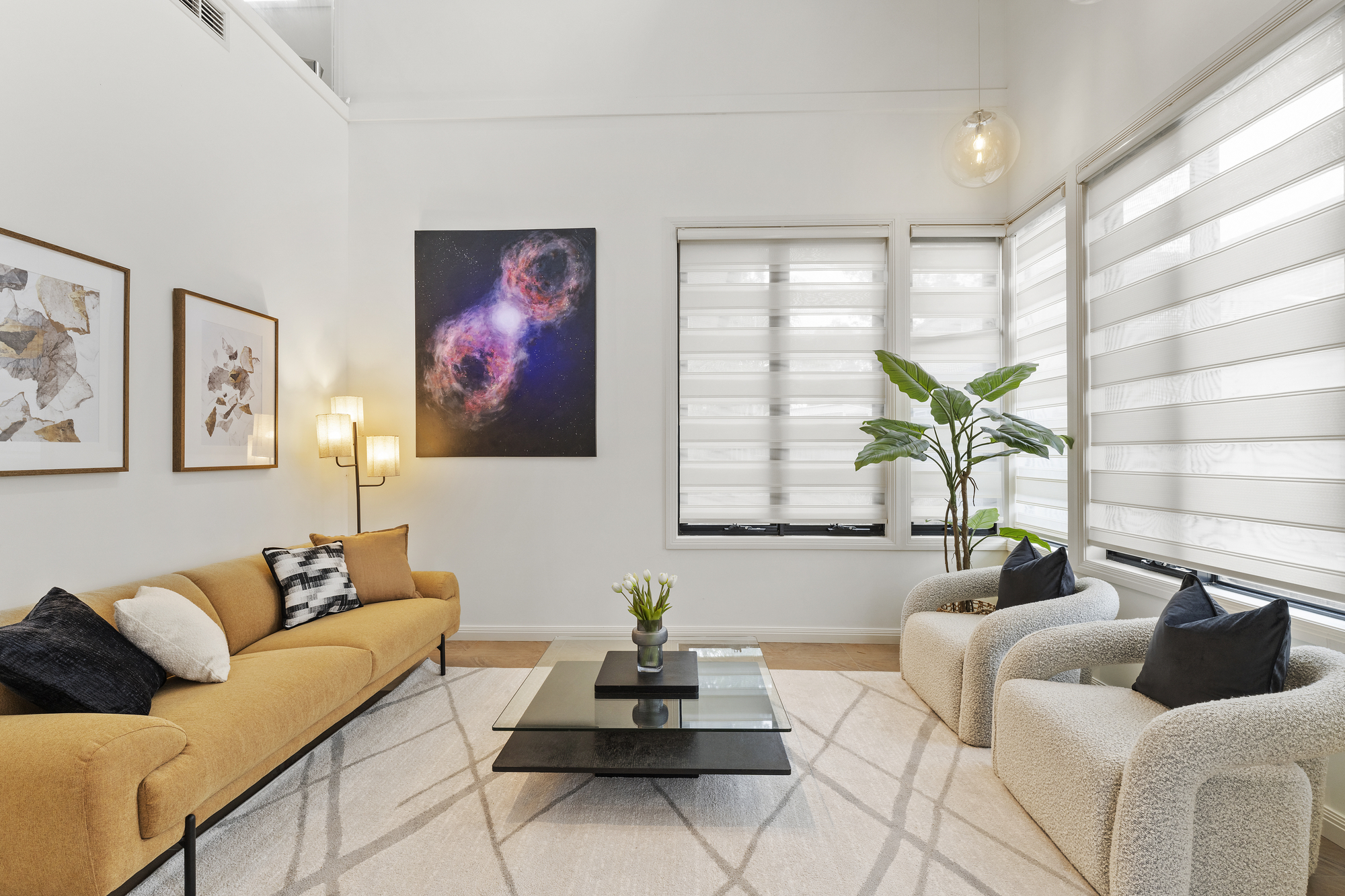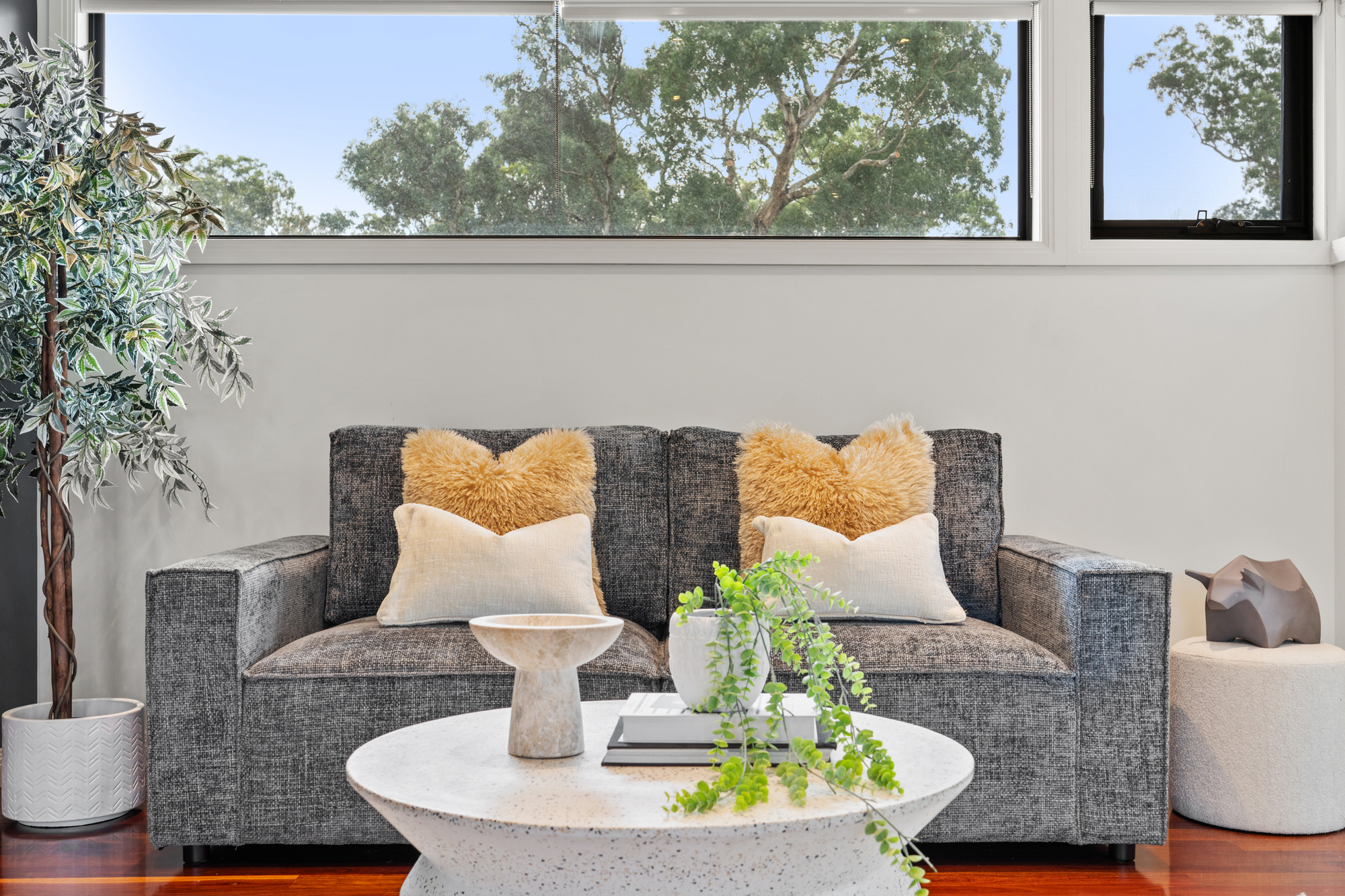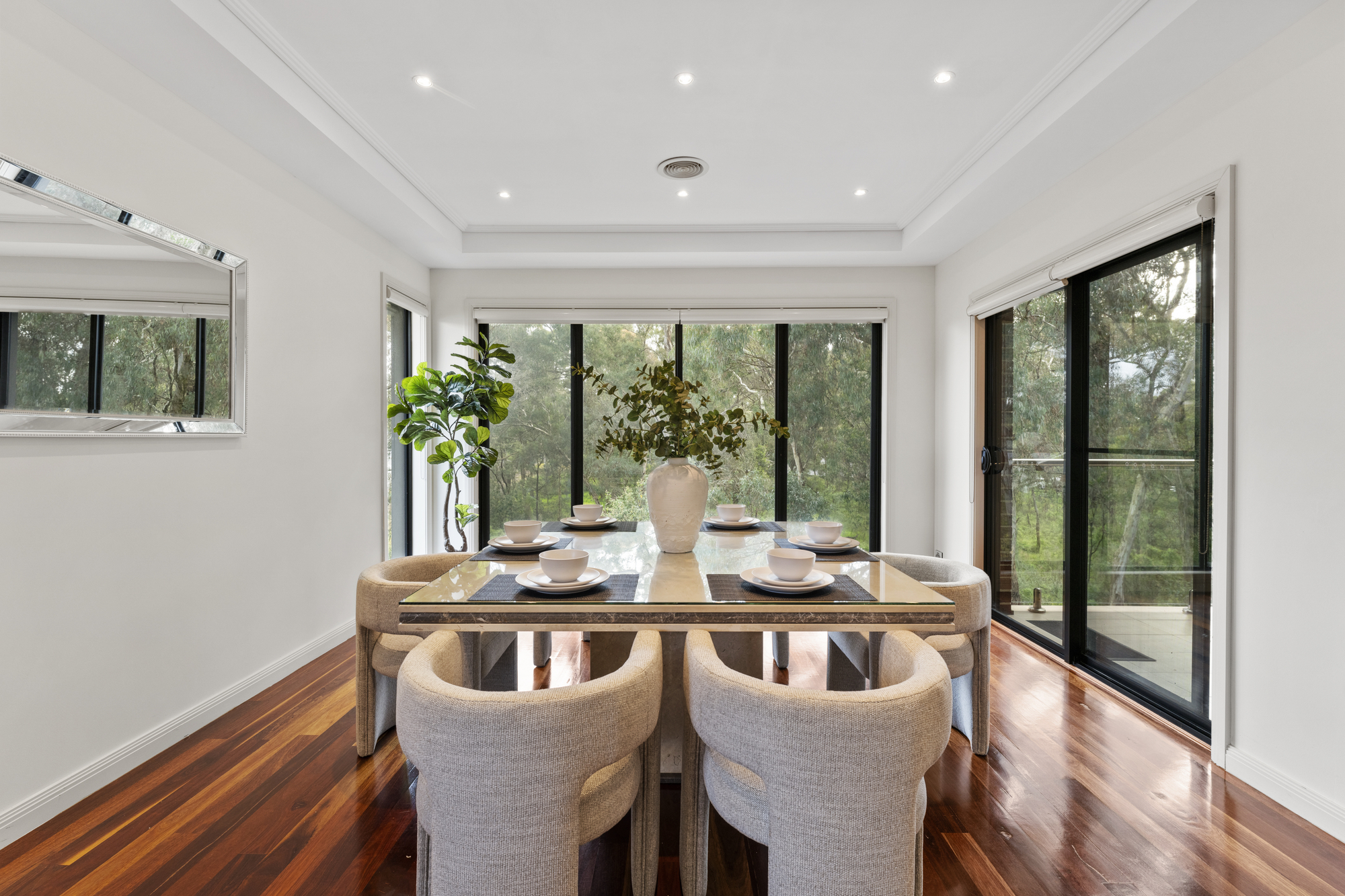 Outside, a large balcony overlooks beautiful Australian Eucalypts, while the manicured, tiered backyard with garden pathing provides a tranquil retreat. For those looking for peace and privacy to get creative, a dedicated study nook is your perfect productivity driver.