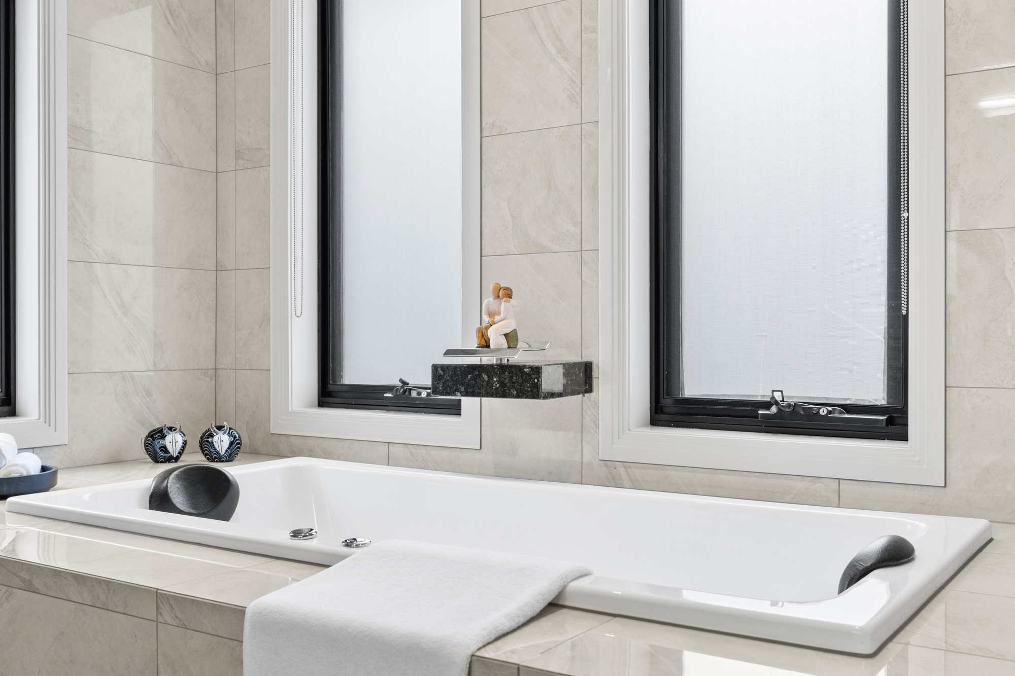 Adorned with Reece sanitaryware, the bathrooms throughout maintain a standard of luxury and quality. For added indulgence, unwind in the covered, electrically heated in-ground spa—a serene oasis right at home.