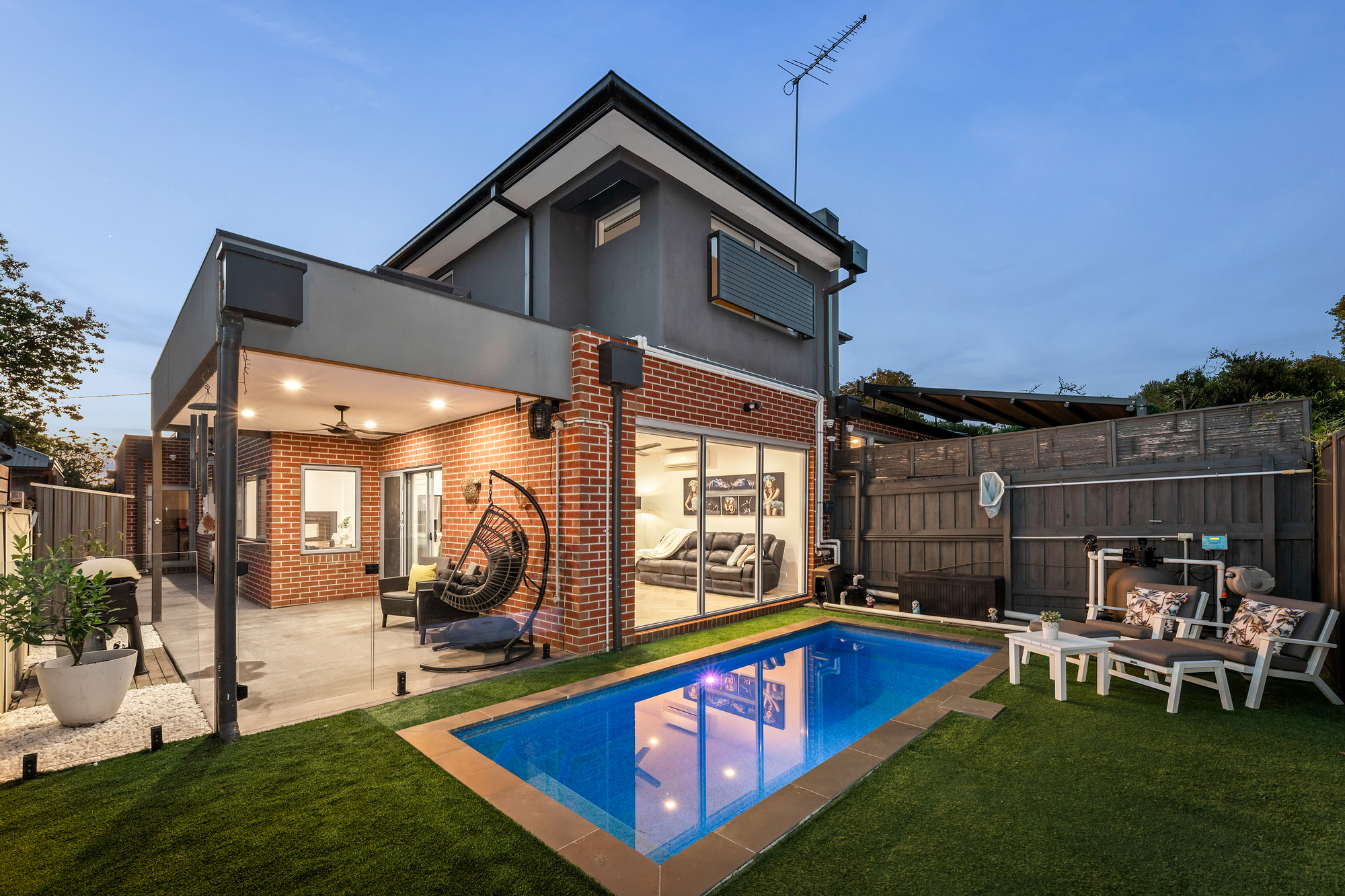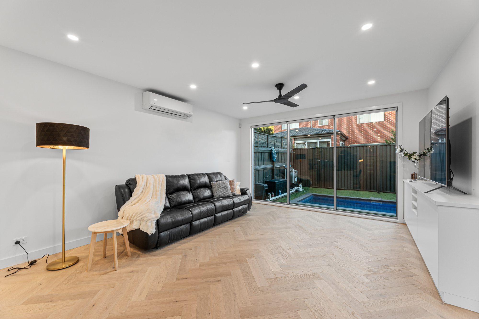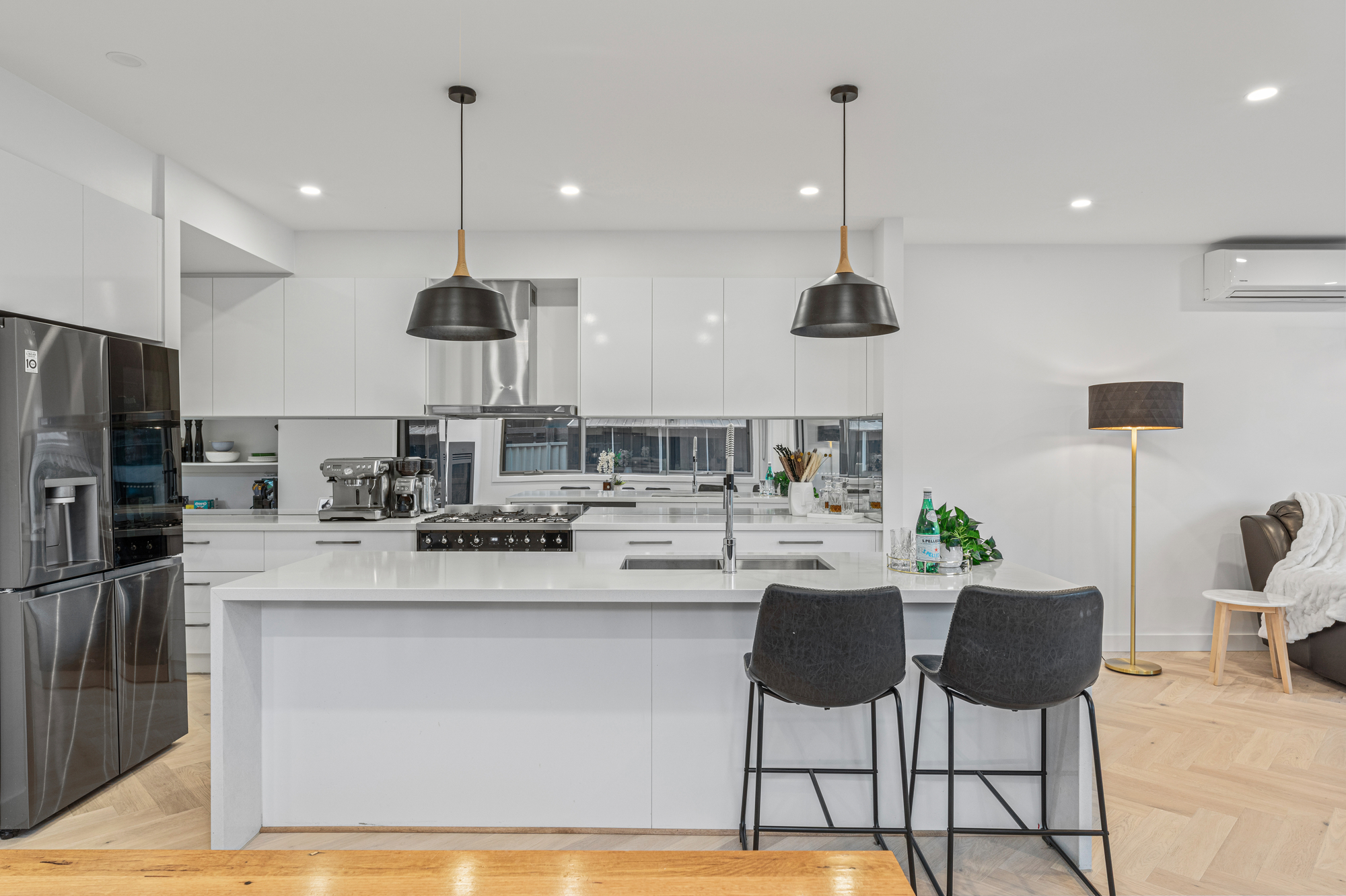 At the heart of the home, the gourmet kitchen is superbly appointed with SMEG cooktop and oven, dual SMEG rangehoods, an ASKO dishwasher, and a large walk-in pantry, making it perfectly equipped for everyday cooking and entertaining alike. Sliding doors extend the living space to a covered alfresco entertaining area, overlooking the private backyard and electric-heated swimming pool, creating an inviting setting for year-round gatherings.