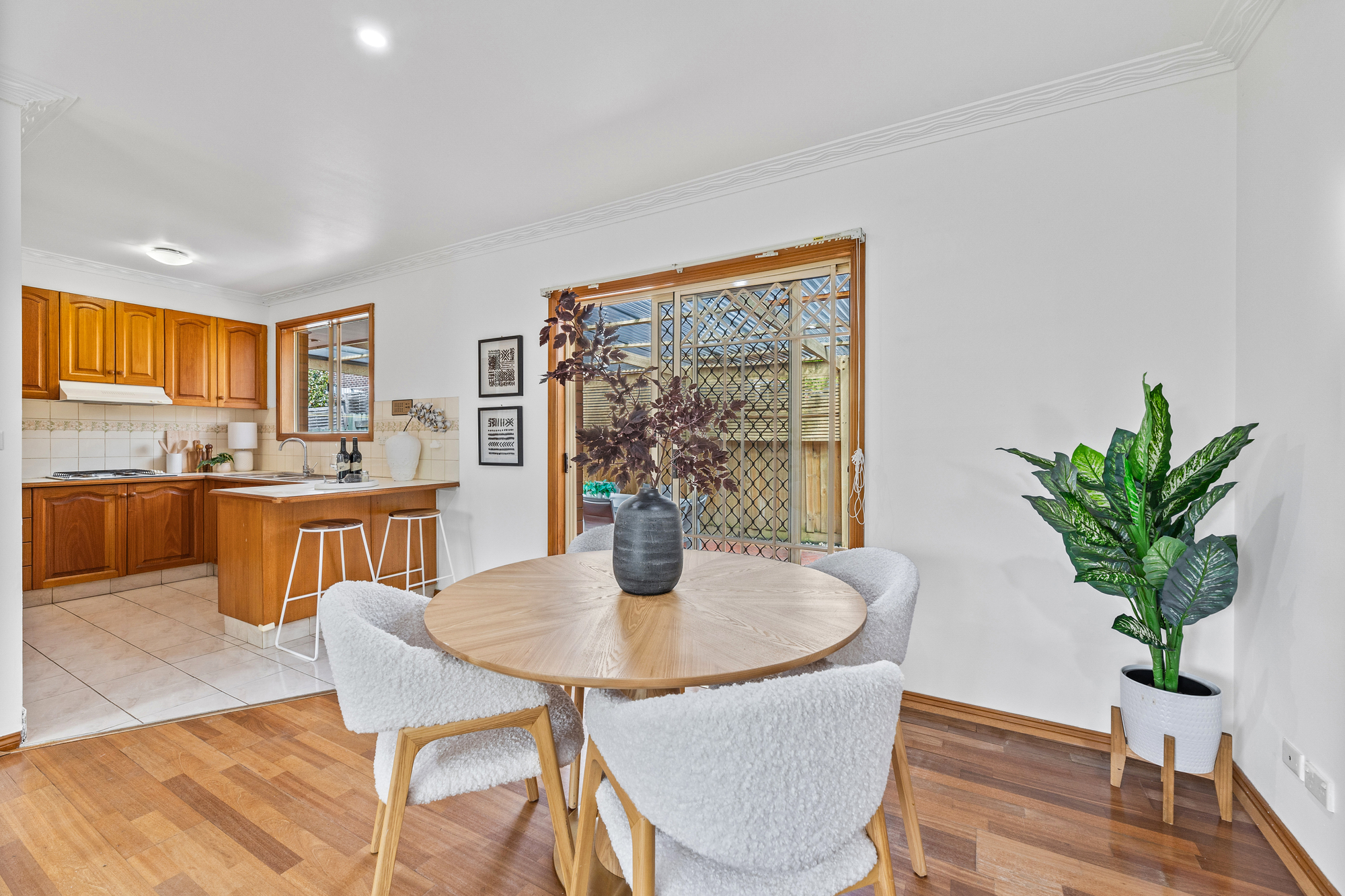 Positioned toward the rear of a quiet street, this single-level brick unit offers comfort, privacy, and low-maintenance living. Thoughtfully designed across one level, the home features open plan living and dining filled with natural light from floor-to-ceiling windows, complemented by timber floorboards throughout. A sliding door from the dining area extends the space seamlessly to an undercover outdoor patio, ideal for relaxed entertaining.
