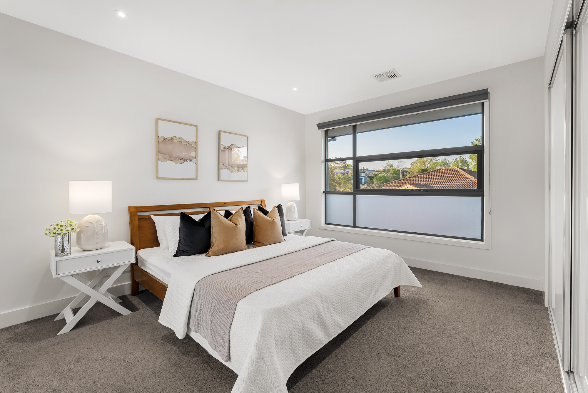 This well-maintained unit boasts three generous bedrooms, each with built-in wardrobes, and a stylish central bathroom shared by two of the bedrooms. The master bedroom features its own ensuite, enhancing the serene ambiance of the home with a lovely leafy outlook.