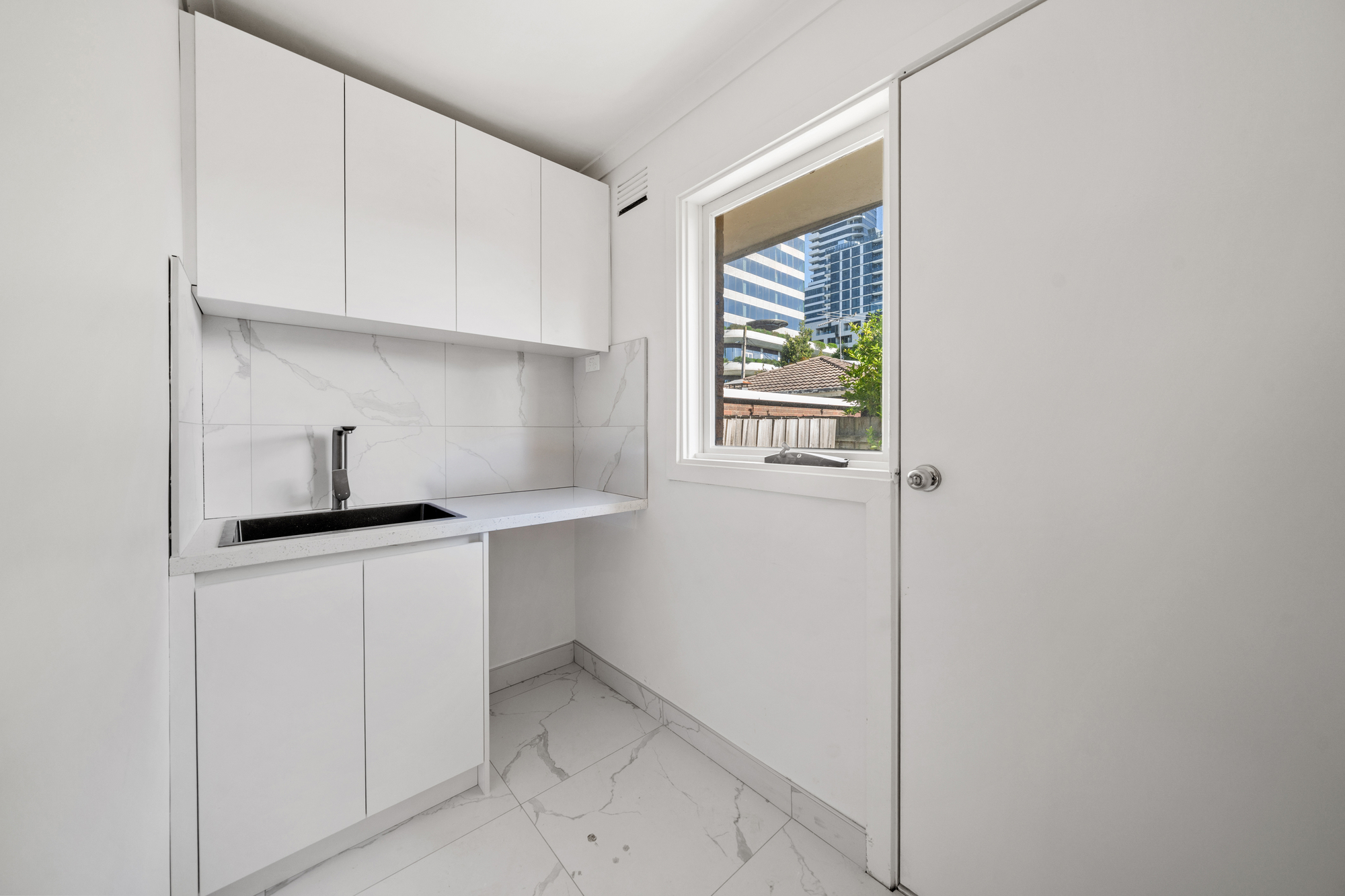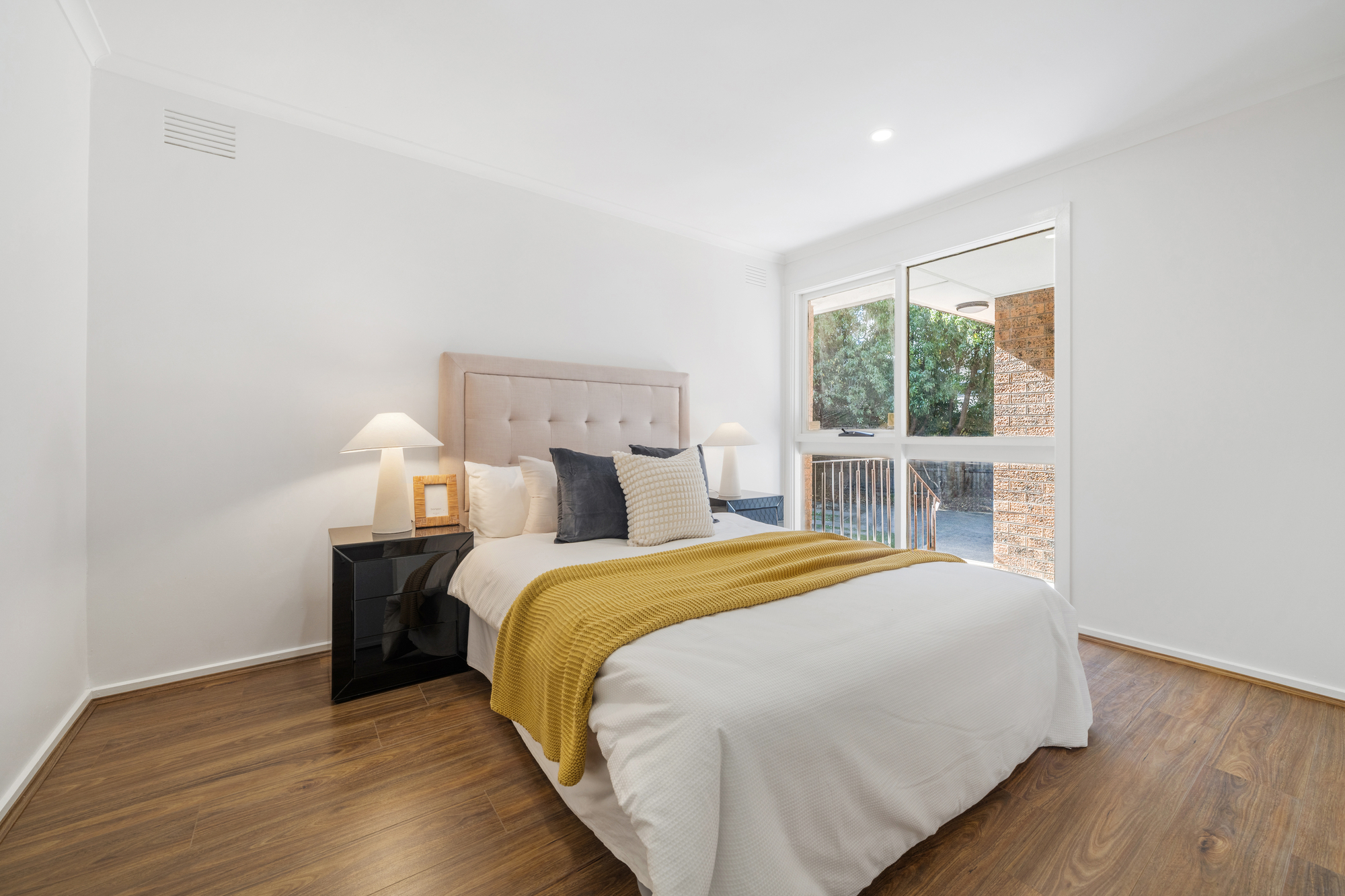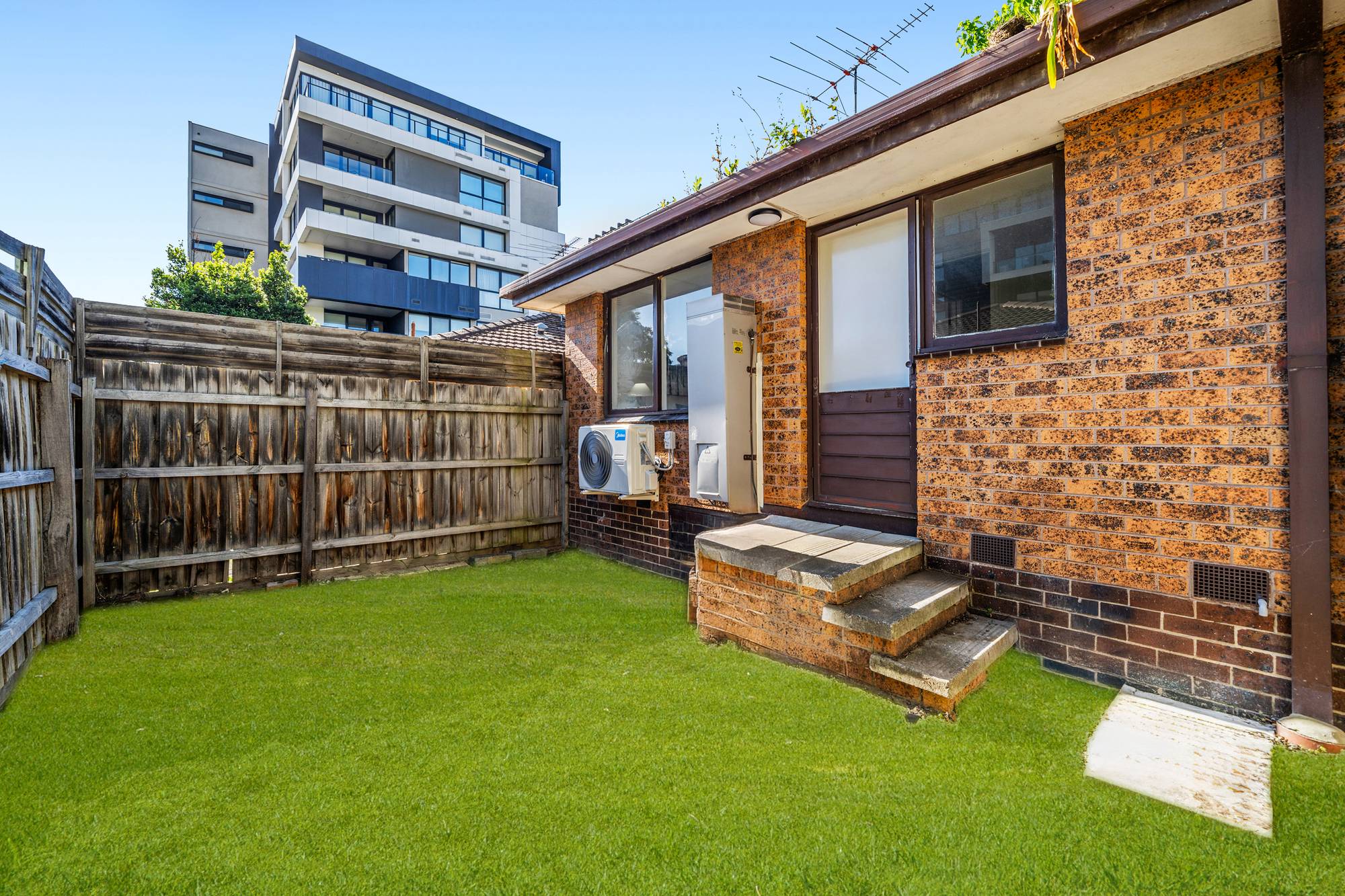 The private low-maintenance courtyard offers great potential for outdoor dining or a small garden, with rear access directly from the laundry and secure timber fencing.