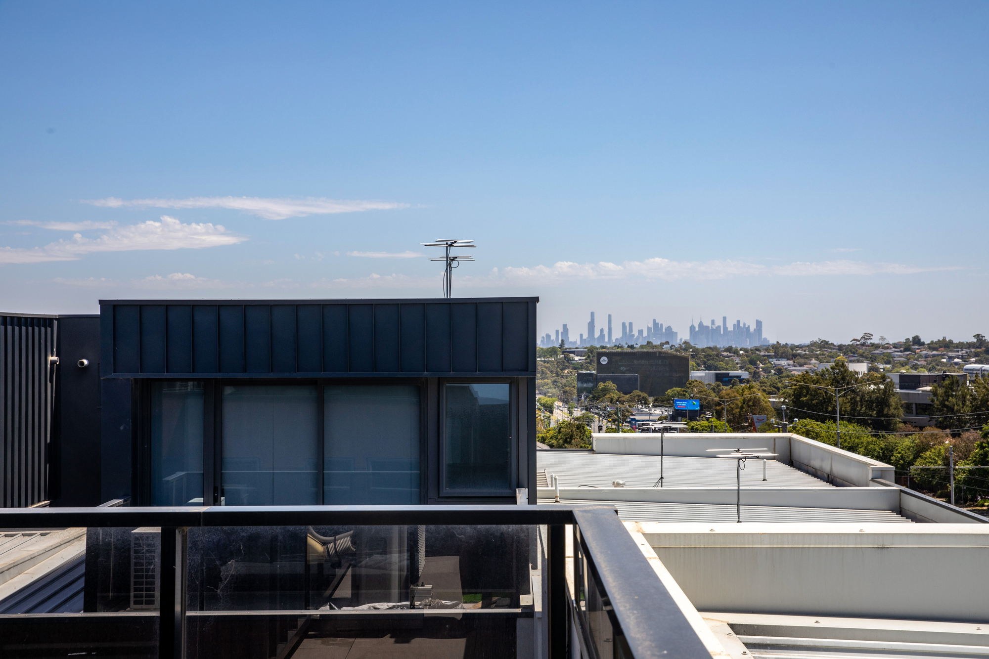 Occupying the entire third floor, the private master suite offers a true sense of retreat, complete with walk-in robe, luxurious ensuite and split-system air conditioning. The highlight is the expansive private balcony, capturing sweeping city skyline and Box Hill views — perfect for relaxing or entertaining in an elevated setting.