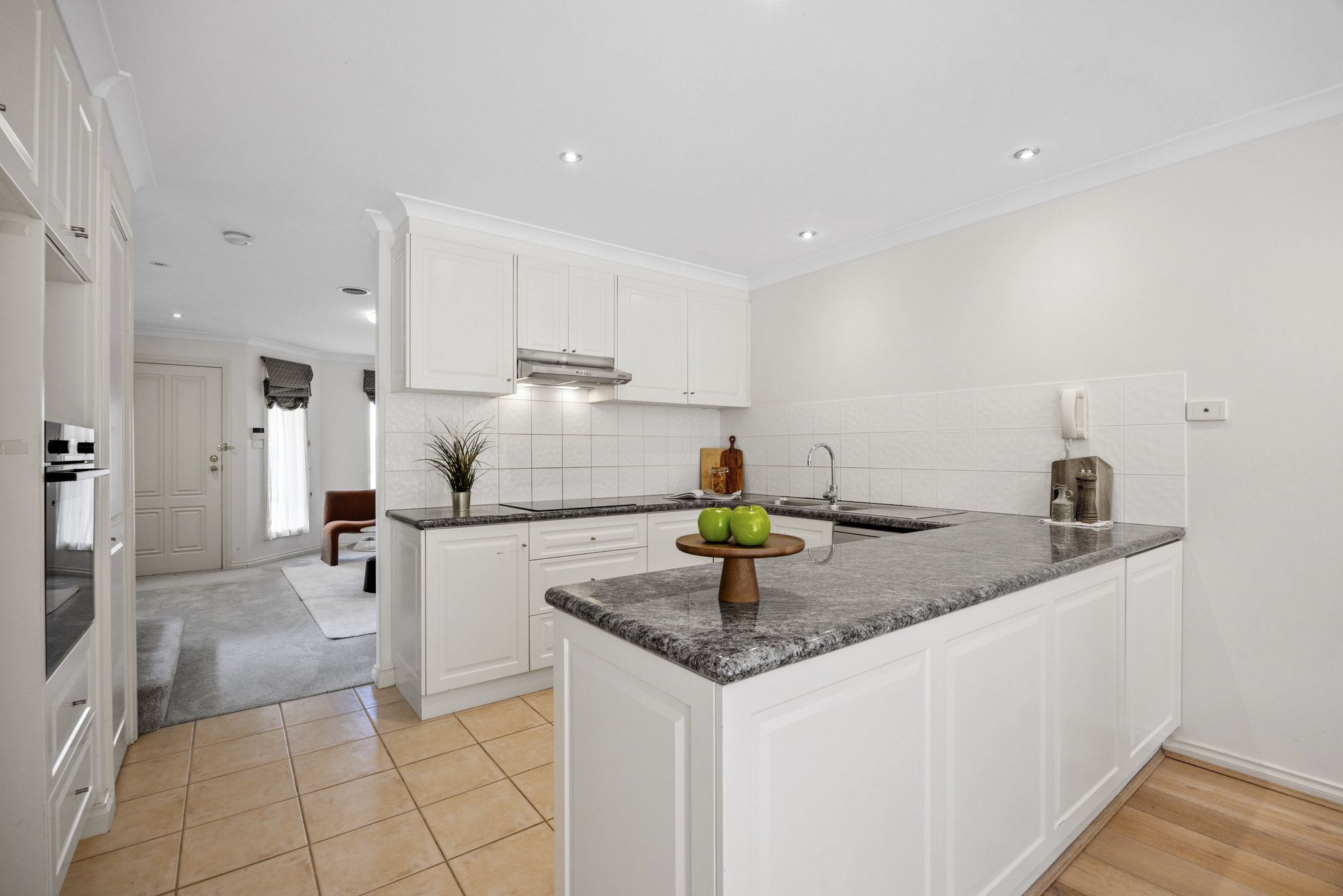Centrally located, the kitchen is functional and generous, featuring laminate benchtops, tiled splashback, built in pantry and ample overhead and under bench storage. Quality Bosch appliances include an induction cooktop, wall mounted gas oven and dishwasher. Tiled flooring enhances durability in this high use zone.