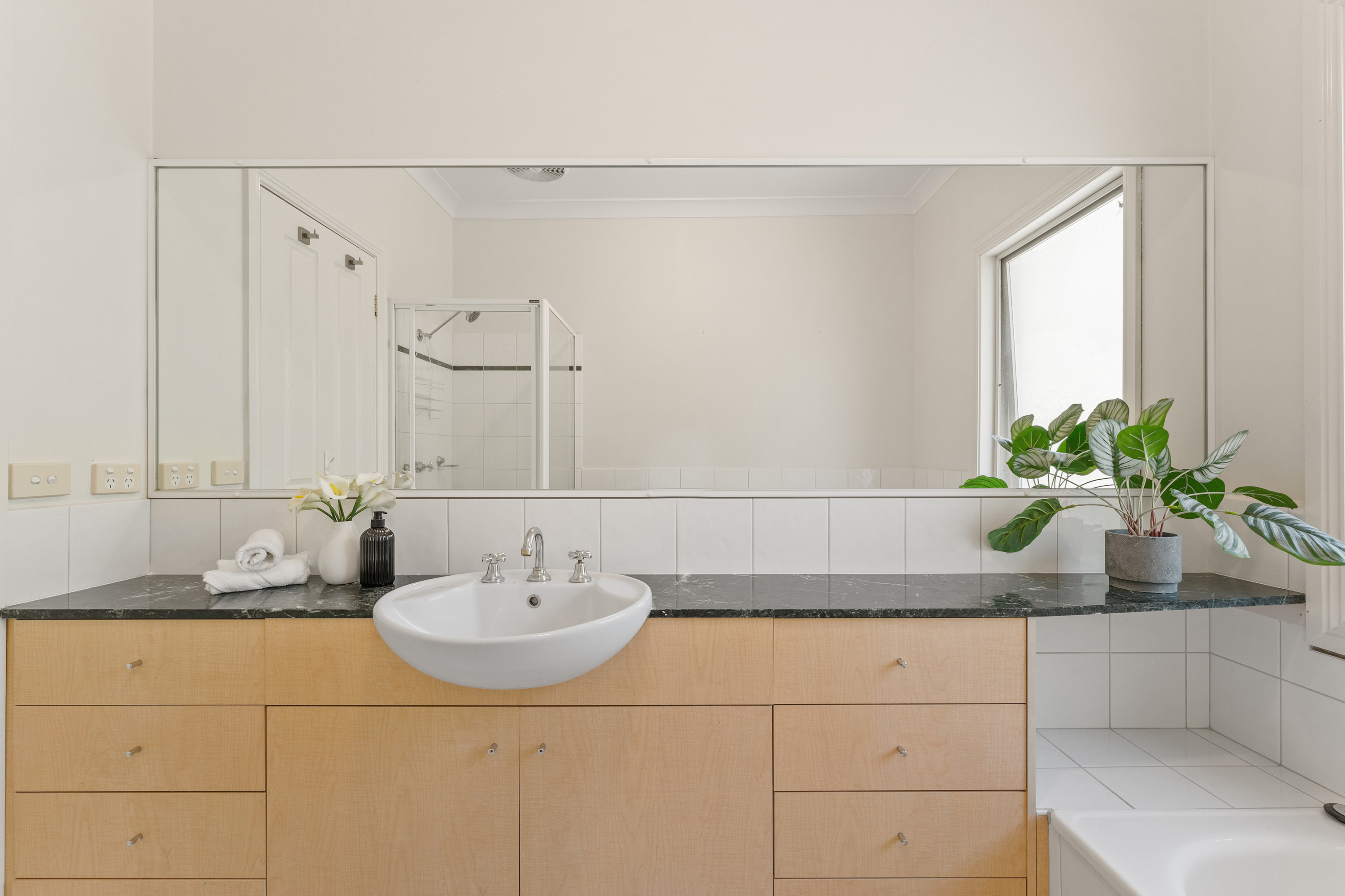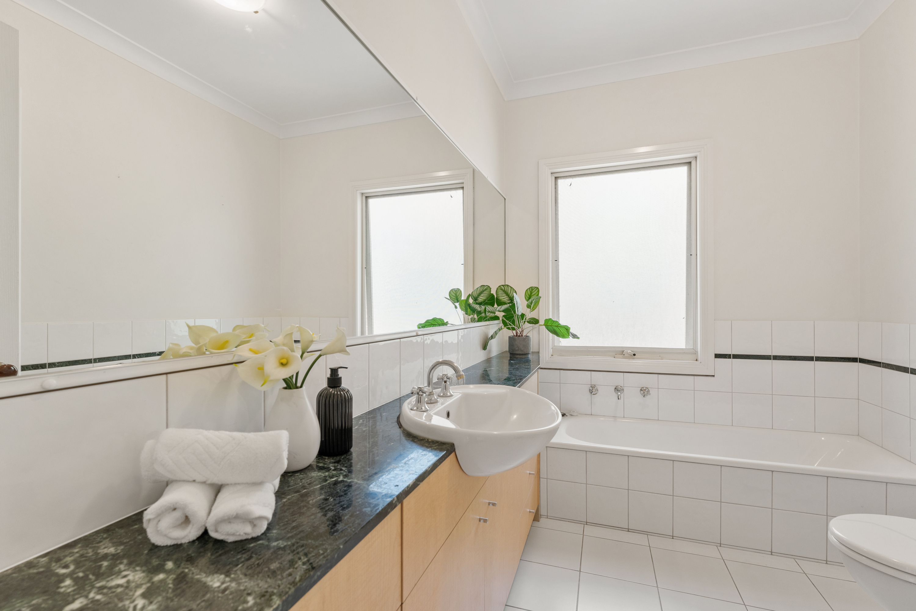 Upstairs, three carpeted bedrooms provide comfortable accommodation, all with built-in robes. The front bedroom extends further with a private balcony. The bathrooms are well appointed, with a central bathroom including a bathtub and full-length vanity. Outdoor living is easy with a low-maintenance backyard, ideal for relaxing or entertaining. The property also includes storage and a single car space via the driveway.