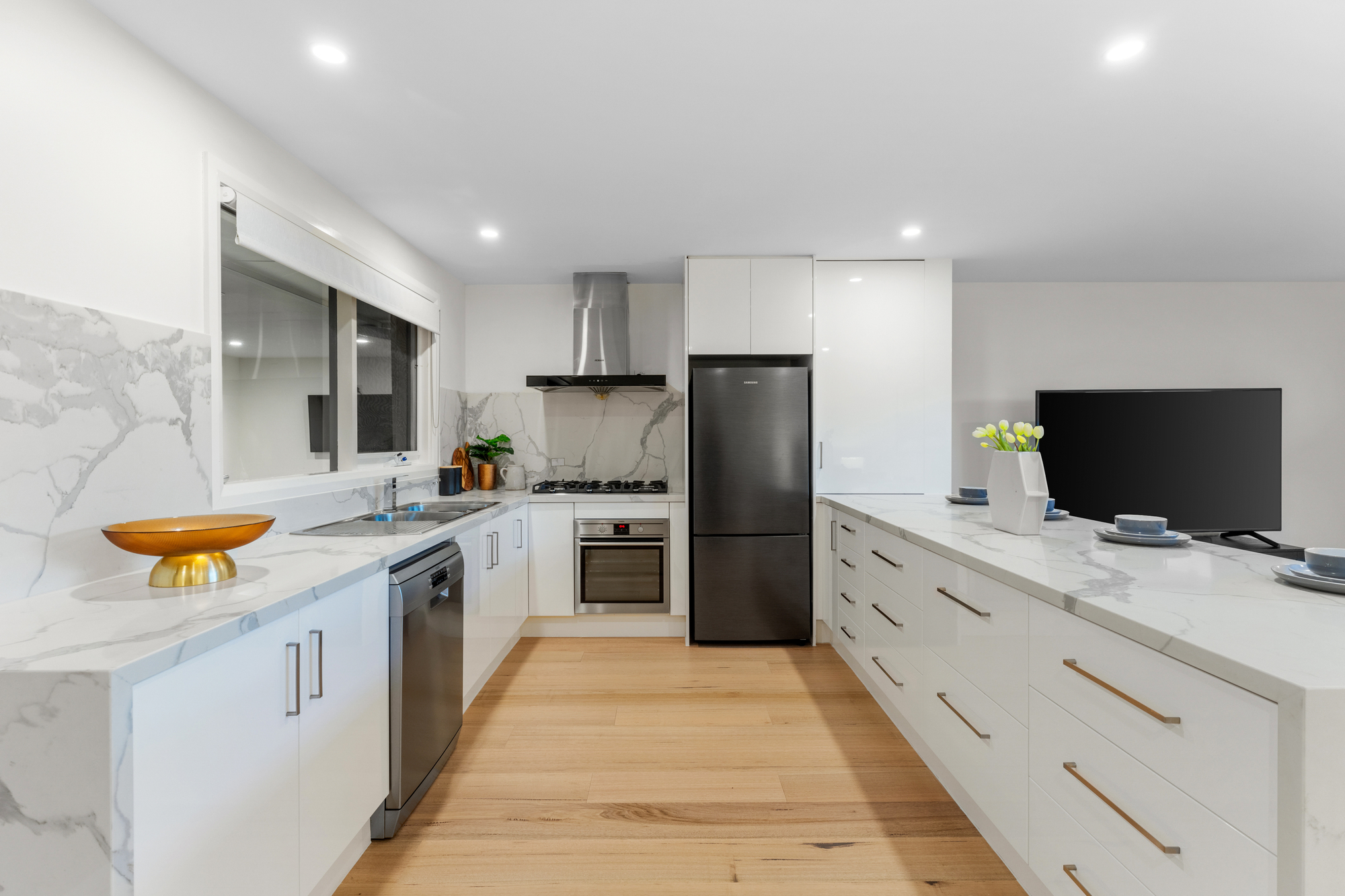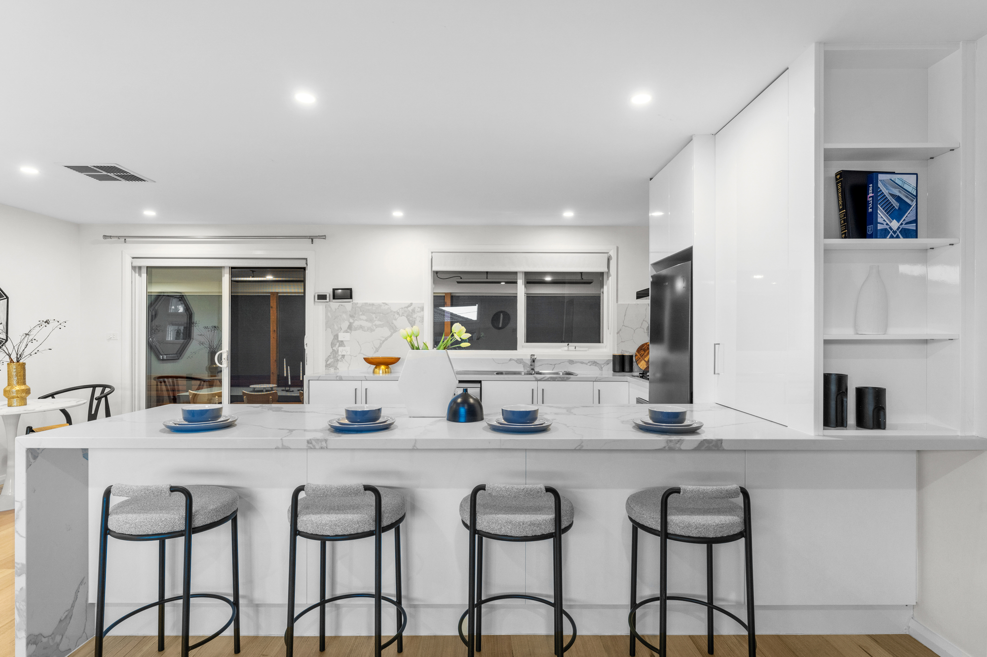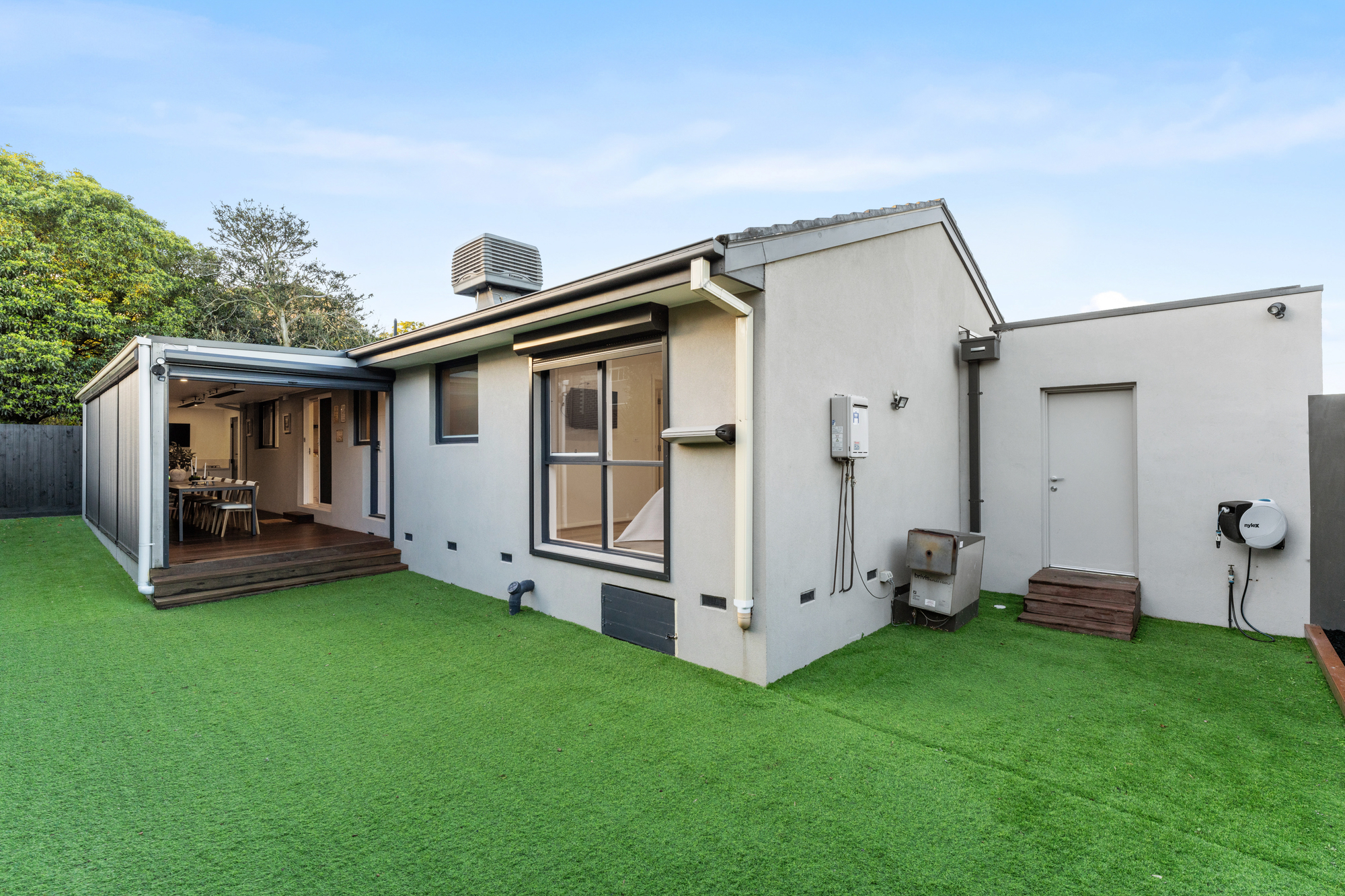 Inside, a versatile studio space with a powder room caters to many needs, whether as a home office, creative studio, or guest accommodation. Enjoy year-round comfort with ducted climate control throughout the home.