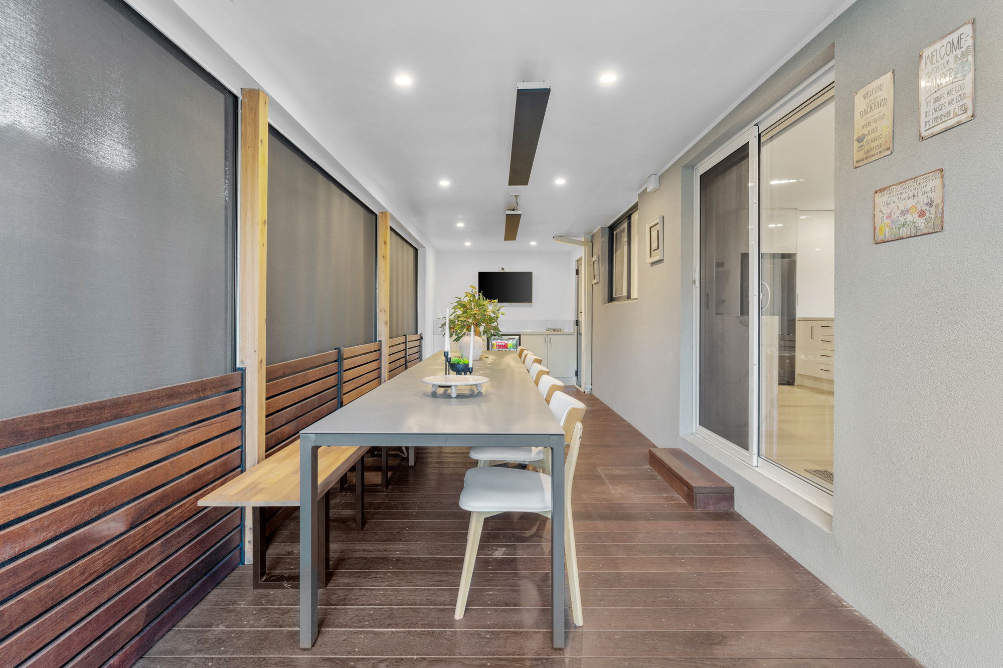 Outside, the decking area with screen protection and a bar provides a private retreat for outdoor entertaining. The low maintenance garden and expansive backyard offer ample space for children to play, making it an ideal haven for smaller families.