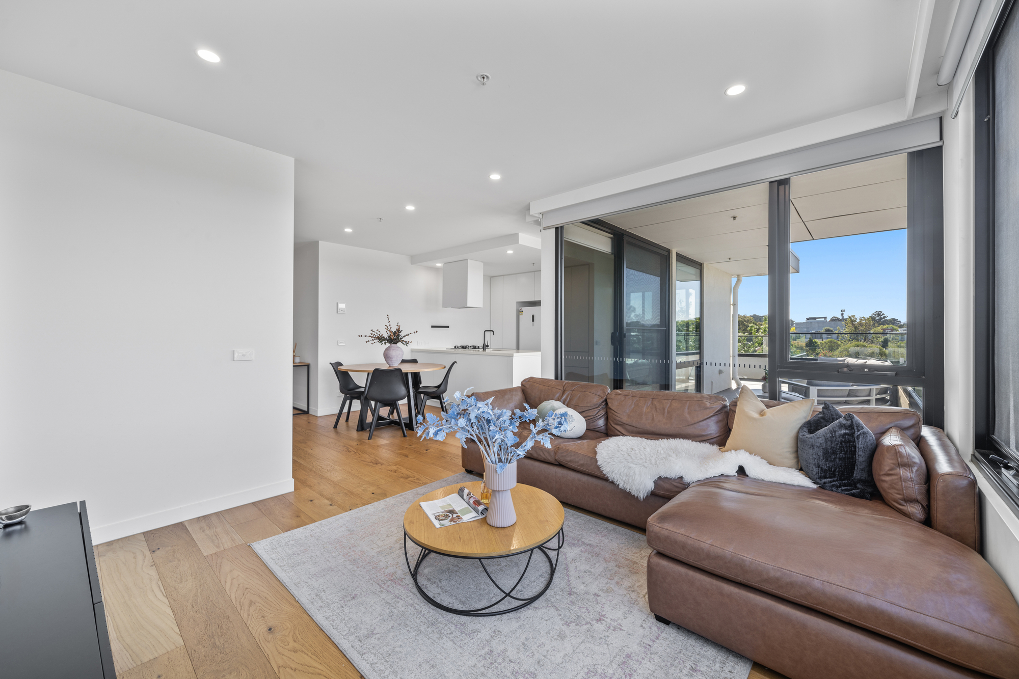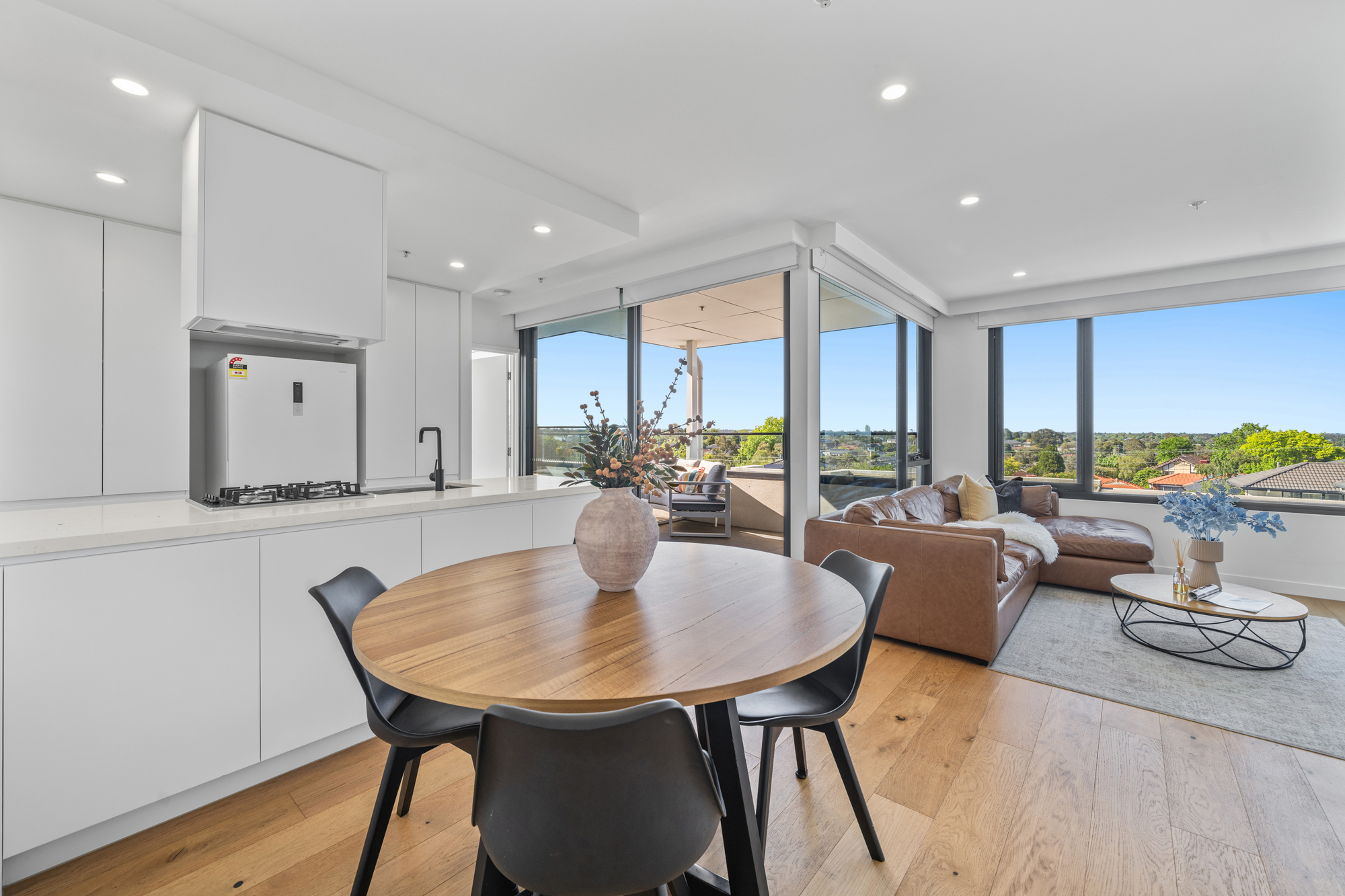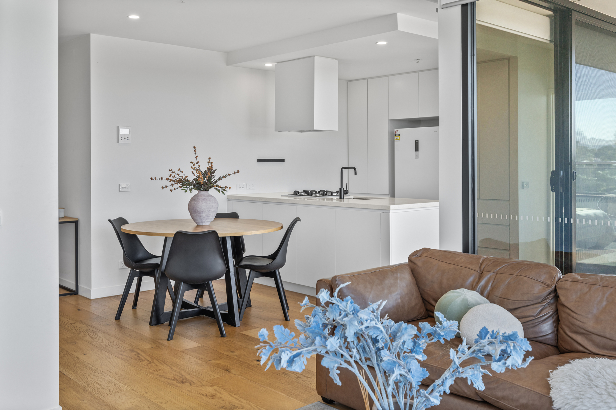 For Sale $680,000 - $720,000This stylish modern apartment offers an inviting blend of light-filled living and elevated views, ideal for investors, first home buyers, or downsizers seeking comfort and convenience. The open plan design combines kitchen, dining, and living spaces surrounded by full height windows that fill the home with natural light.