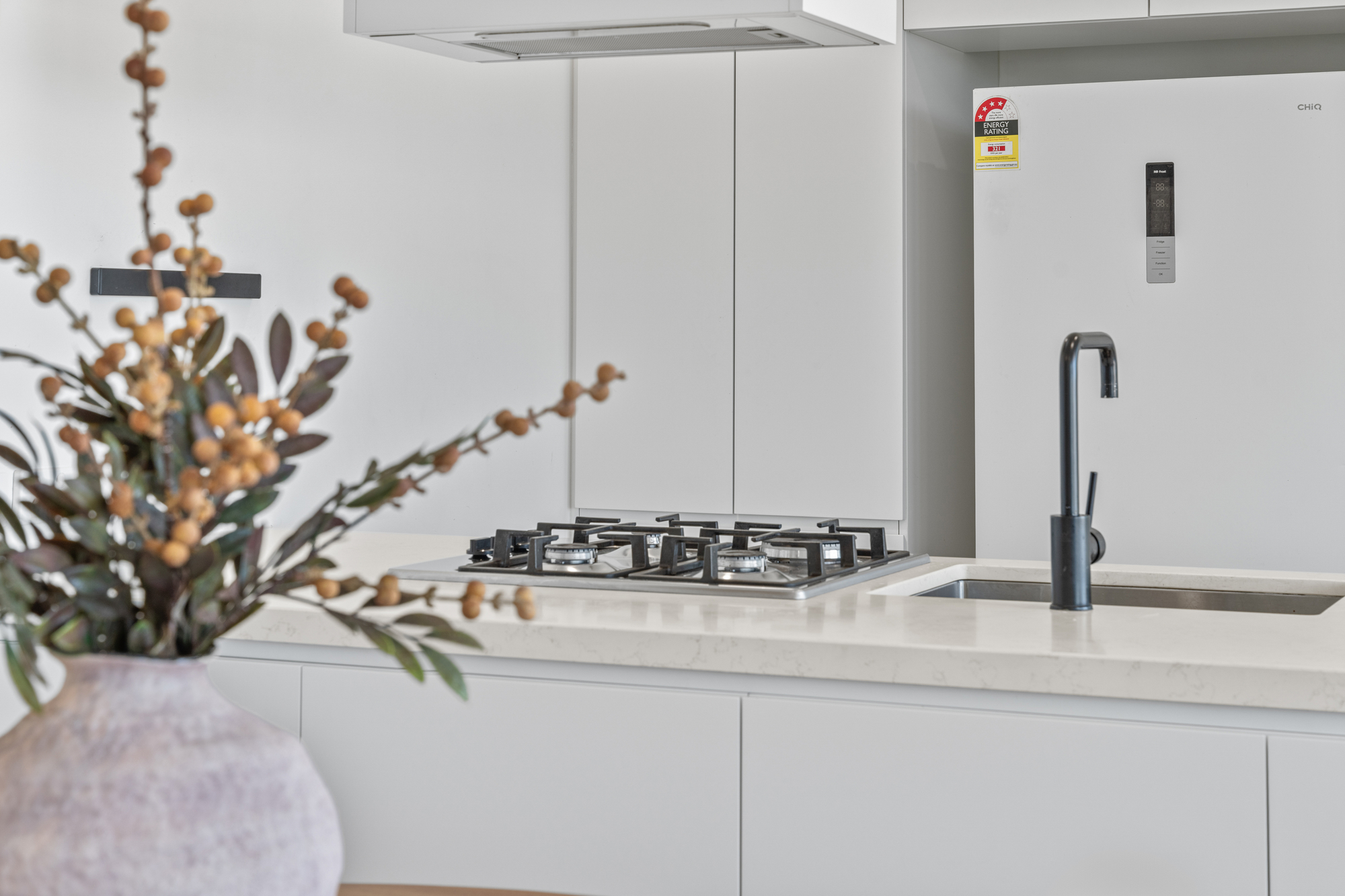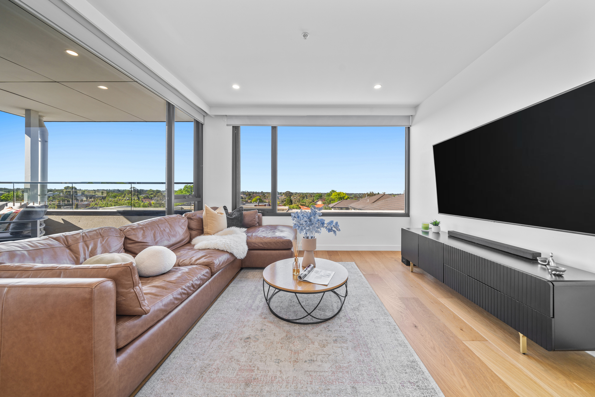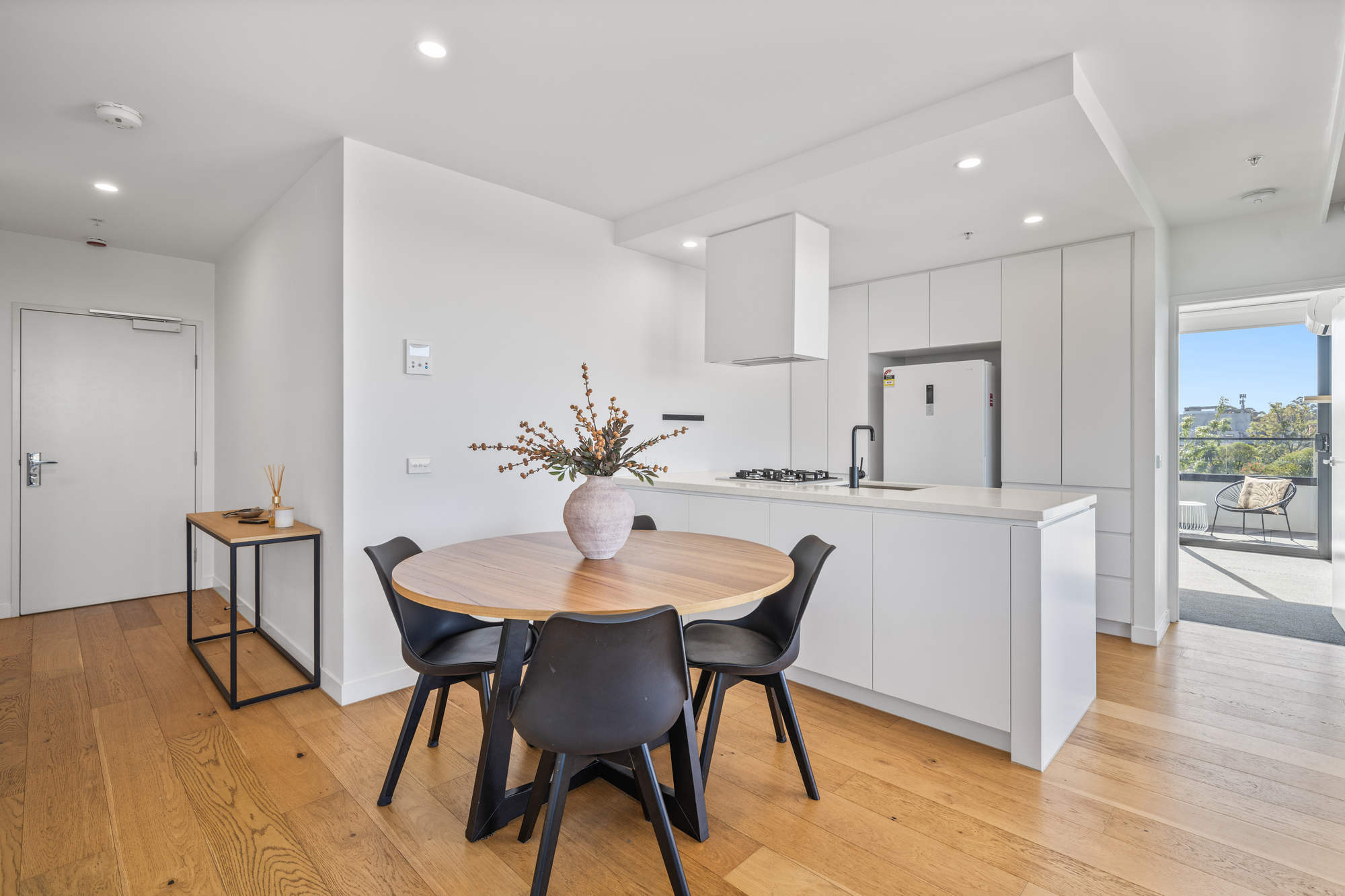 For Sale $680,000 - $720,000This stylish modern apartment offers an inviting blend of light-filled living and elevated views, ideal for investors, first home buyers, or downsizers seeking comfort and convenience. The open plan design combines kitchen, dining, and living spaces surrounded by full height windows that fill the home with natural light.