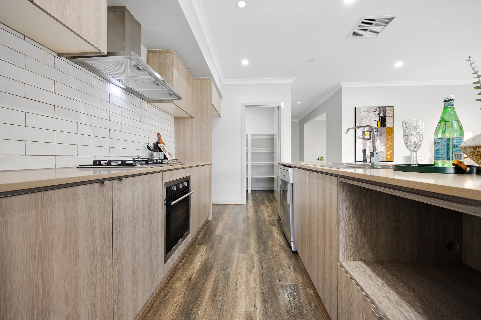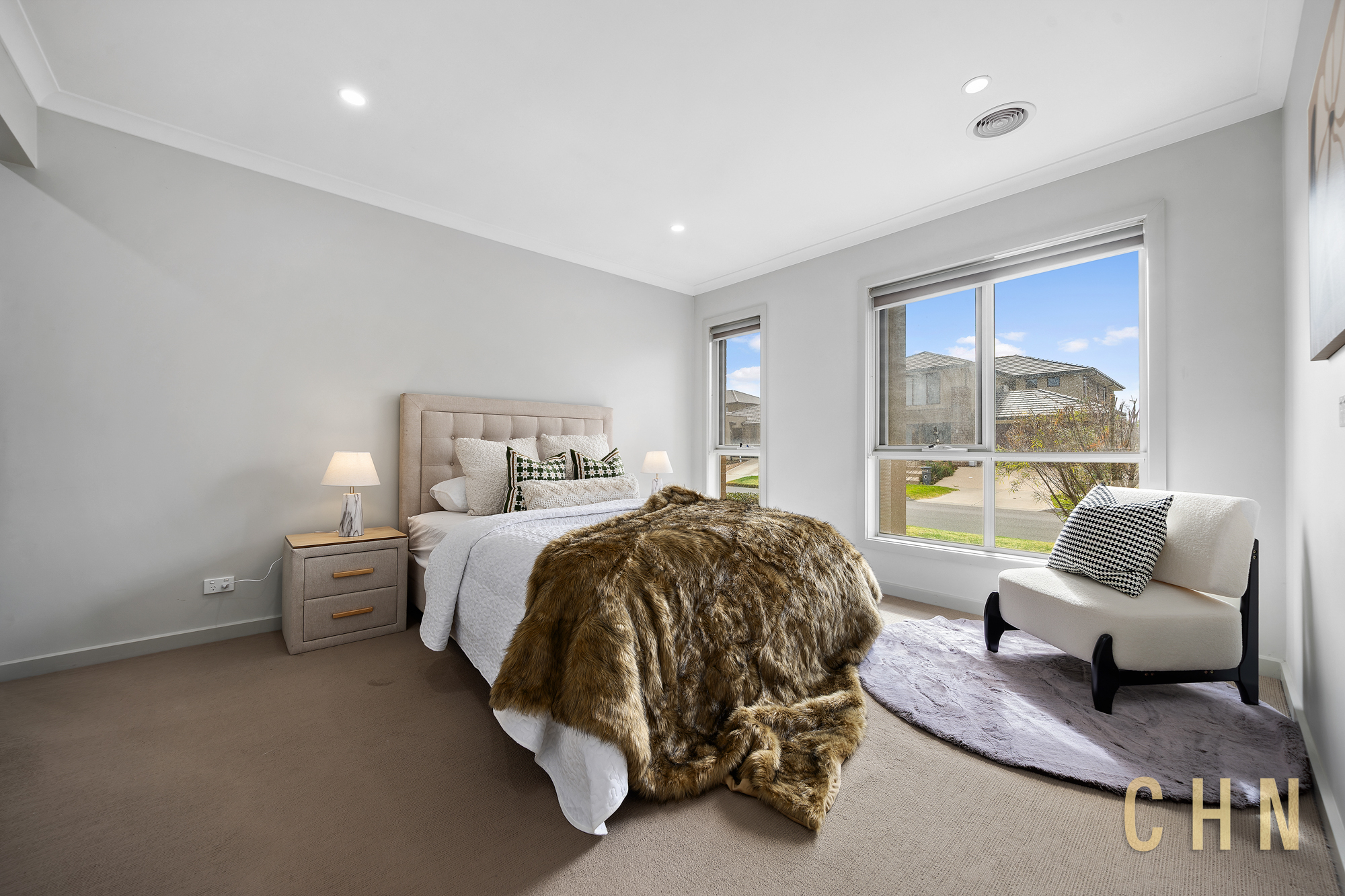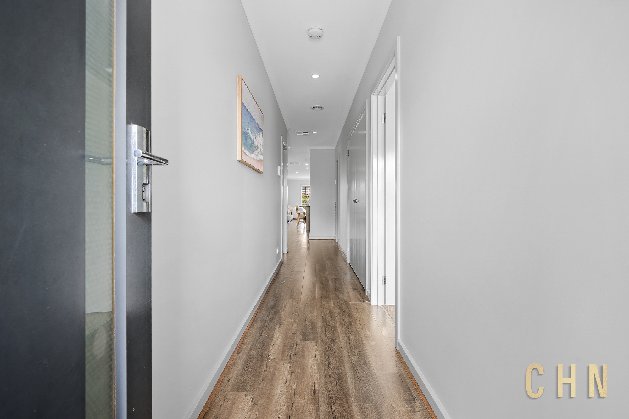 A painted concrete driveway, low-maintenance front garden and covered entry create a welcoming first impression. Inside, high ceilings and downlighting enhance the sense of space, while ducted heating and cooling provide year-round comfort.