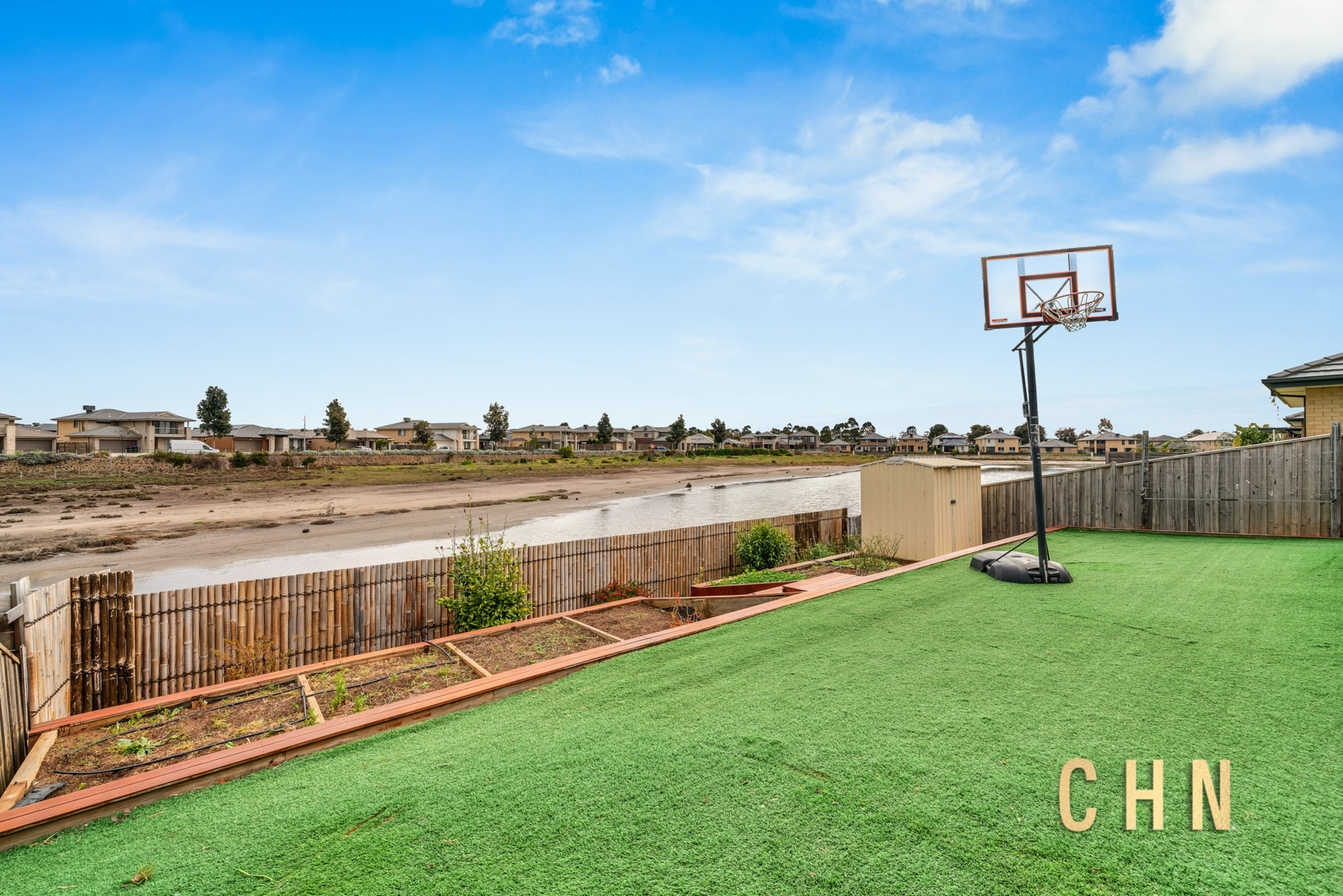 At the rear, the family retreat opens onto an elevated deck and artificial grass backyard with uninterrupted views of the South Saltworks moat. Garden lovers will enjoy the built-in decked garden boxes, complemented by dual rainwater tanks and a garden shed for storage.