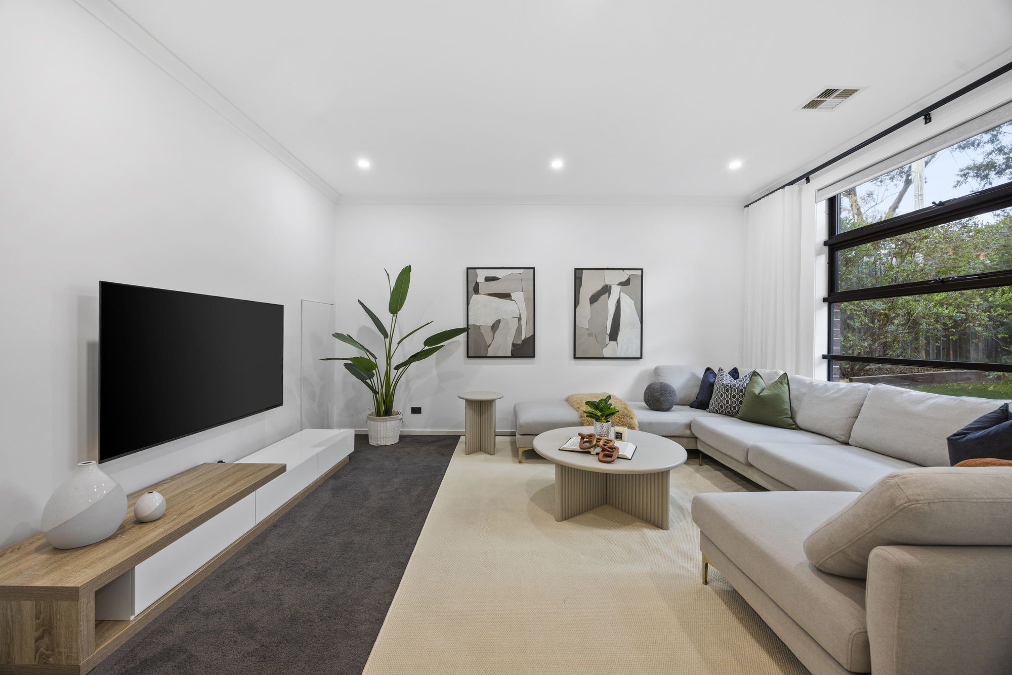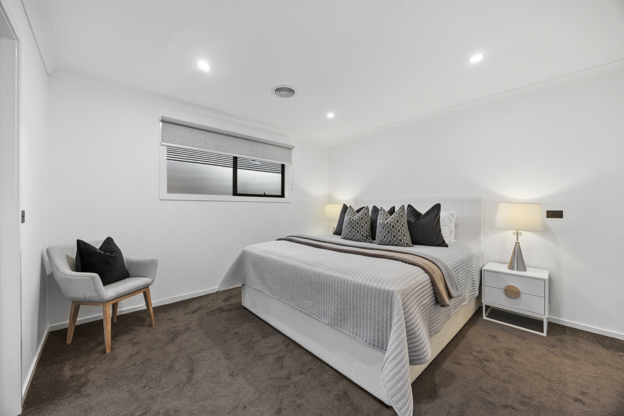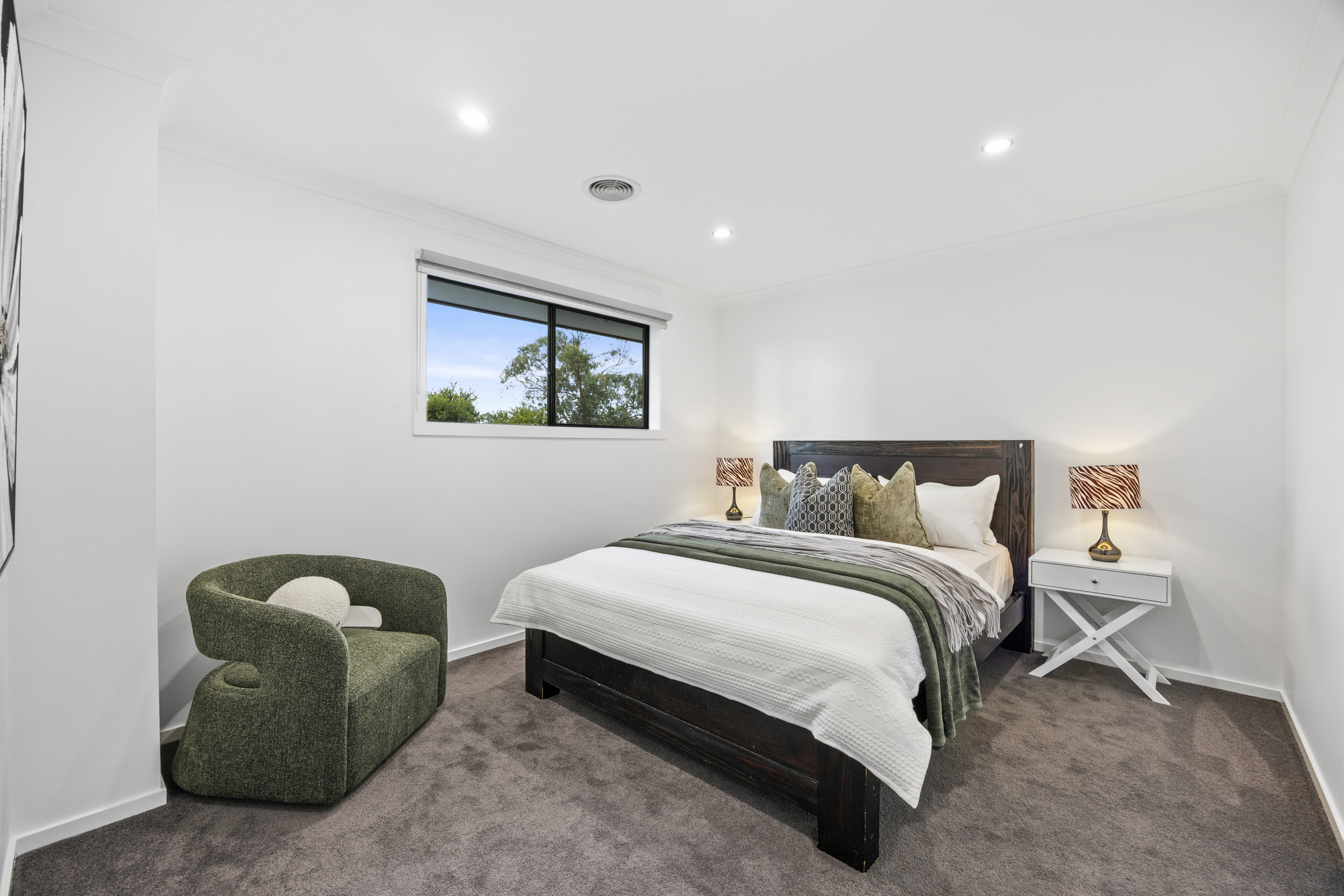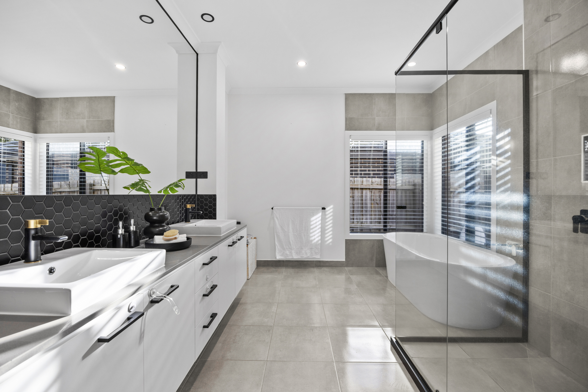 The ground-floor master suite is a peaceful retreat, featuring an oversized walk-in robe and a luxe ensuite with dual vanities and a freestanding bath. Upstairs, four additional bedrooms each enjoy their own ensuite and walk-in robe, alongside two versatile living zones ideal for kids, guests or home office use, plus a private balcony.