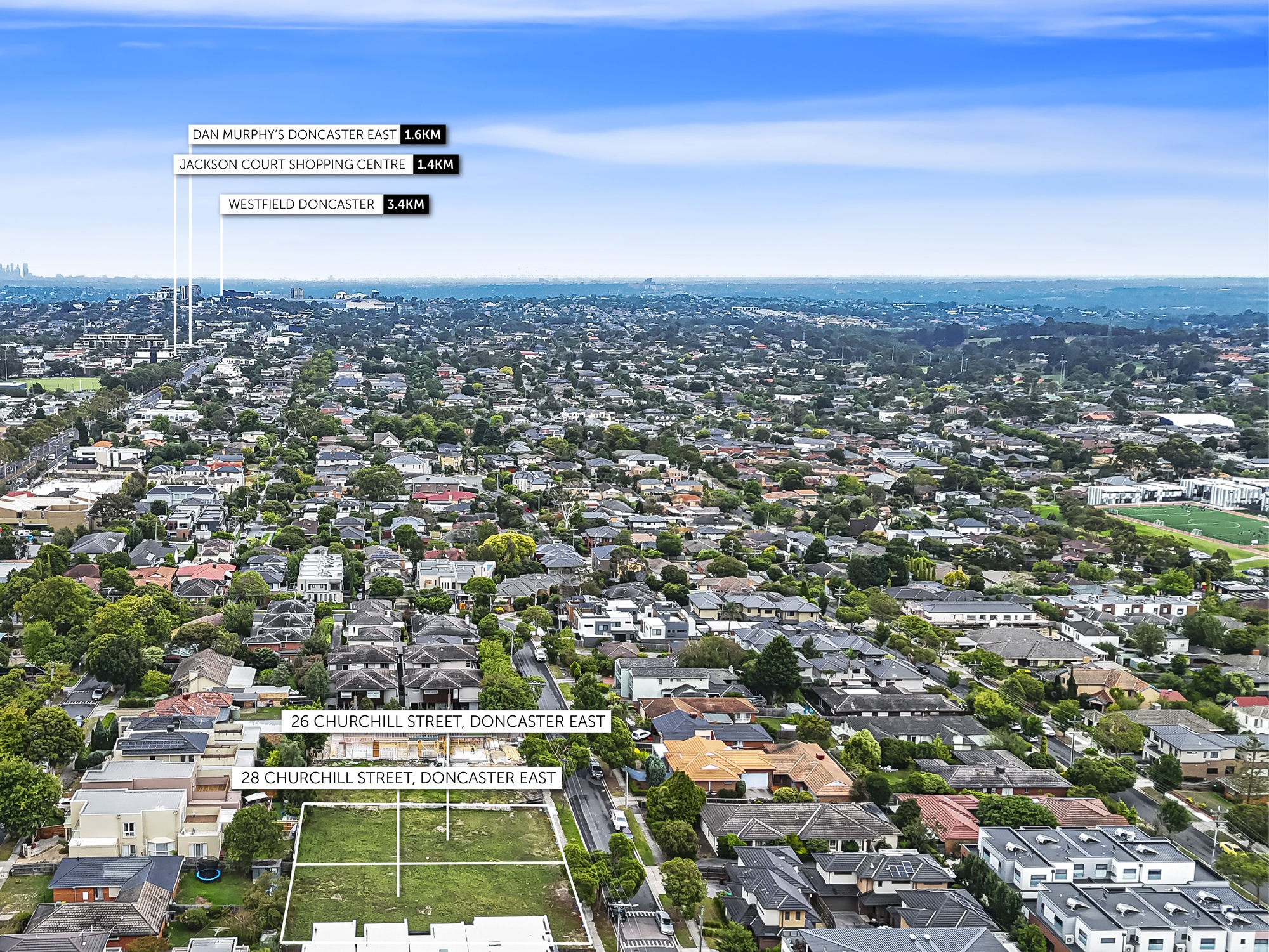 For Sale $3,900,000 - $4,200,000Secure a landmark development opportunity and capitalise on the remarkable scale of this premium double-block holding in the heart of Doncaster East. Spanning over 1,600m² (approx.) across two expansive allotments, each boasting an impressive wide frontage of 20+ metres, 26–28 Churchill Street presents a rare chance to secure a site of significant size and presence in one of the area’s most tightly held pockets.