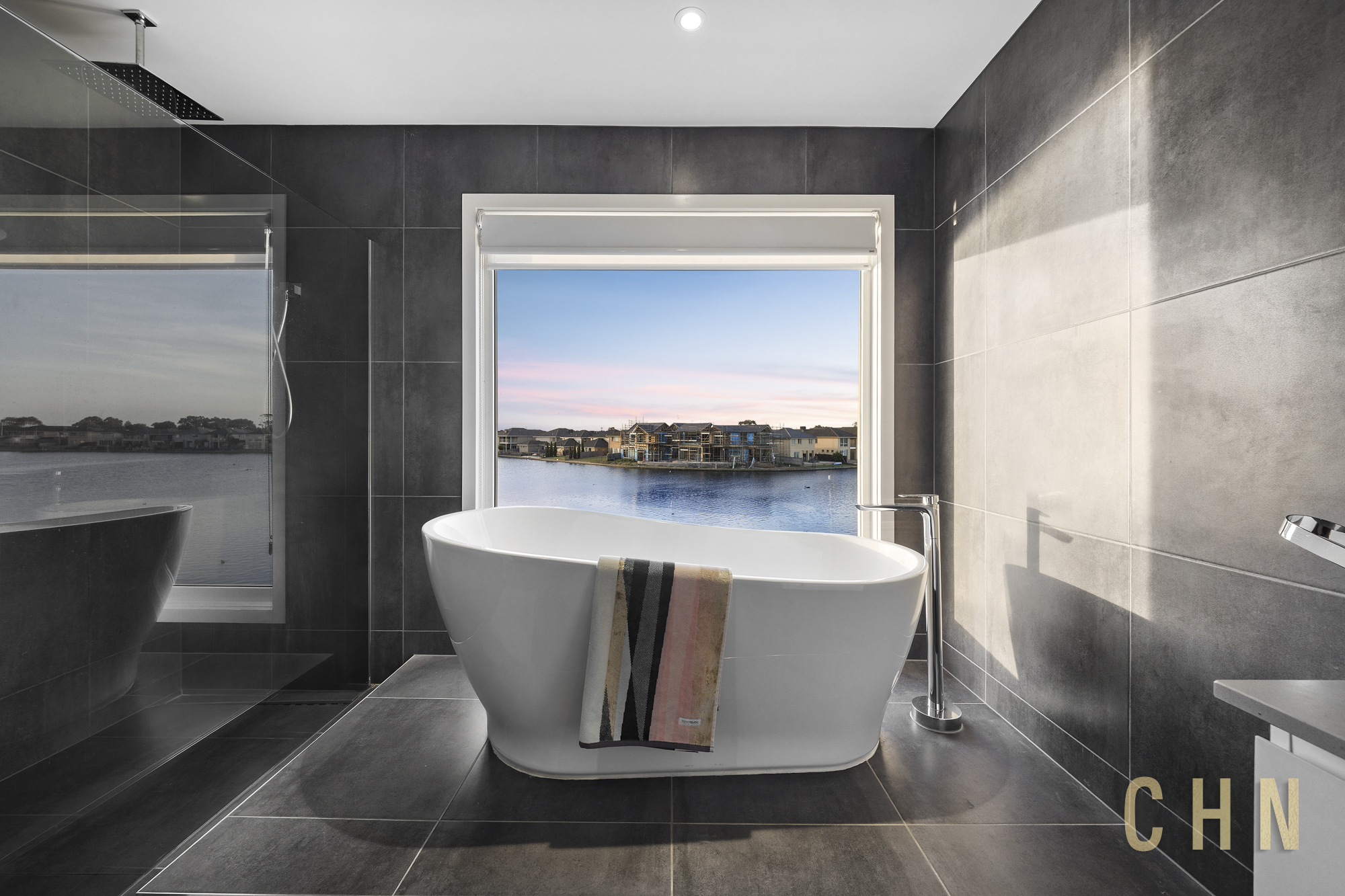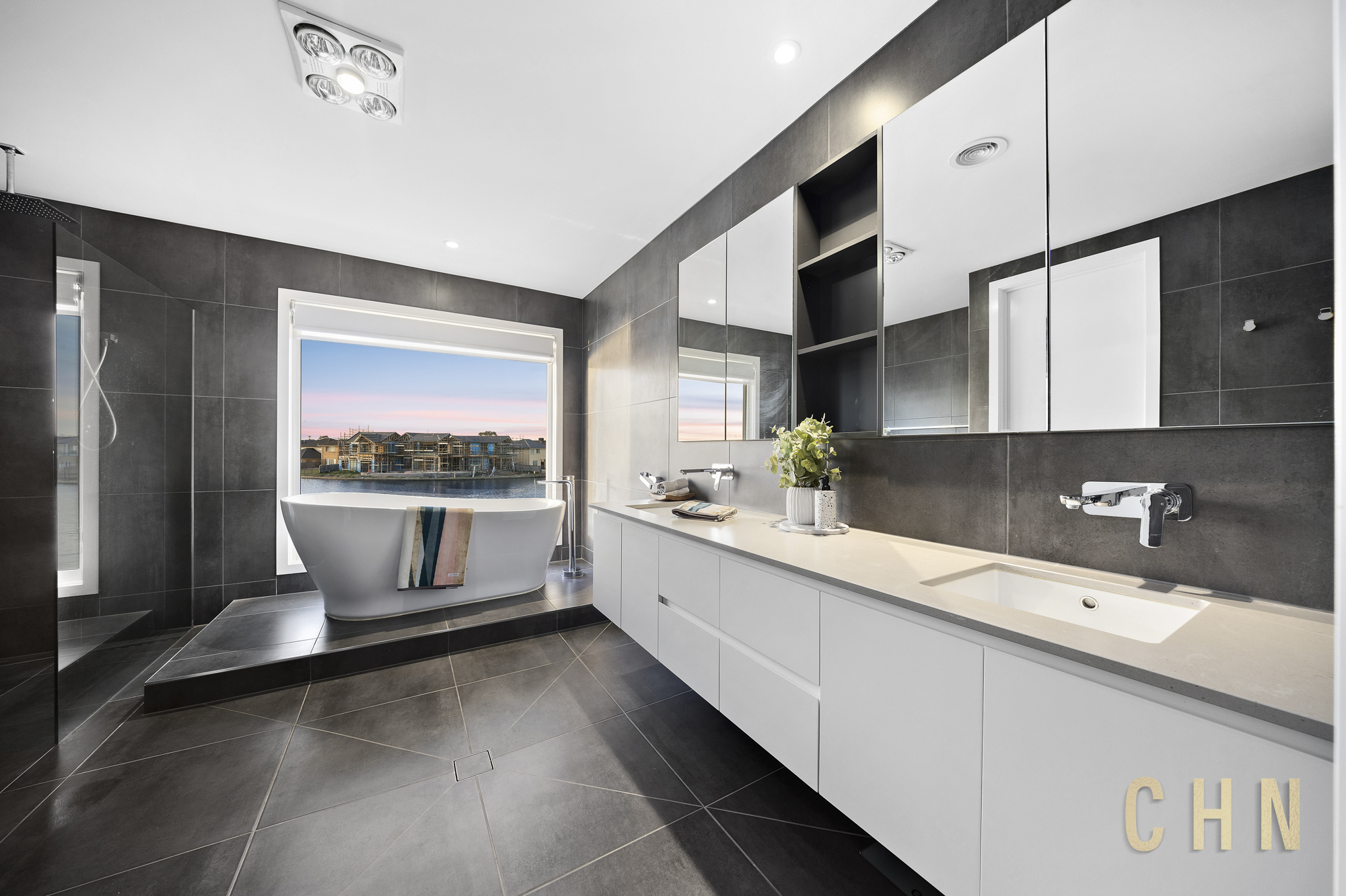 Ascend the stunning staircase to a sublime upper level dedicated to rest and rejuvenation. The master suite is a private sanctuary, offering daily wake-ups to panoramic lake views from its spacious balcony. Inside, his-and-her walk-in robes with customised illuminated wardrobes cater to the connoisseur, leading to a concealed, spa-like ensuite. Here, a deep freestanding bathtub overlooks the water, complemented by an extensive walk-in shower with a waterfall showerhead, dual vanities, and premium finishes. Three additional generously sized bedrooms, each with their own fully-tiled ensuite, provide unparalleled comfort for family and guests.