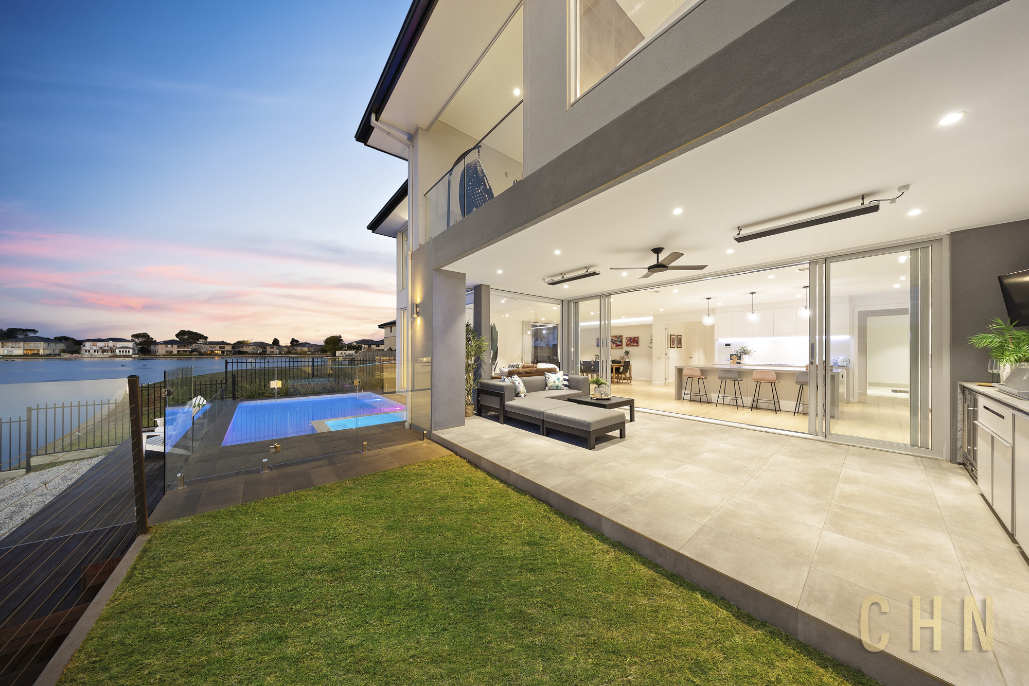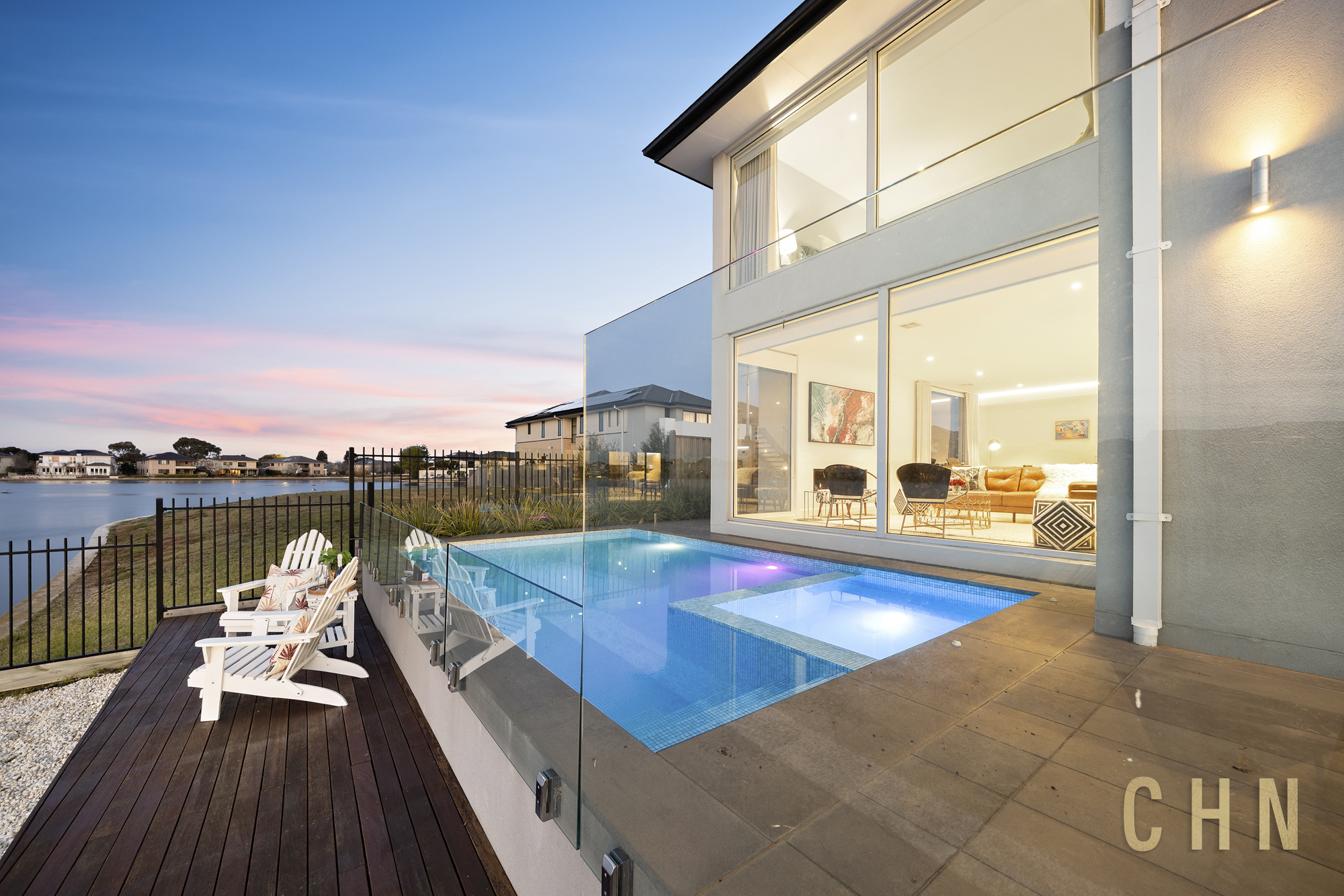 Your first impression is one of breathtaking scale: a grand entrance defined by an architectural void and a sculptural modern chandelier sets the tone. The expansive open-plan living area with built in fireplace, awash in natural light from full-size windows framing the lake, reveals a home of impeccable taste. Underfoot, full floorboard flooring guides you to spaces designed for entertainment and relaxation. A dedicated home theatre offers a private cinematic experience, while the incredible roofed alfresco area—complete with a built-in BBQ station, wine fridge, ceiling heating, and sparkling tiled flooring—is a year-round entertainer’s paradise, flowing seamlessly to the full-size deck, private pool, and spa.