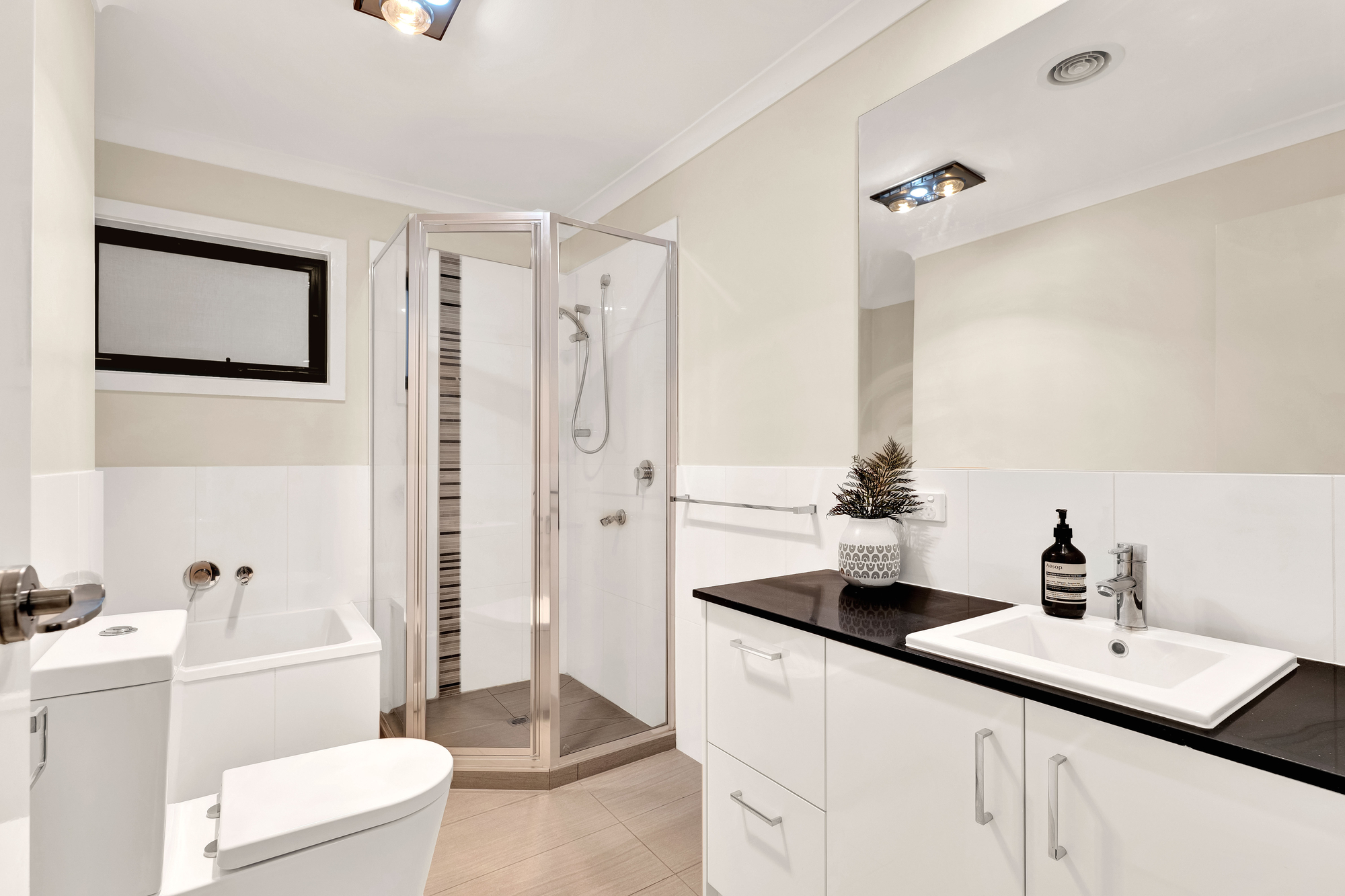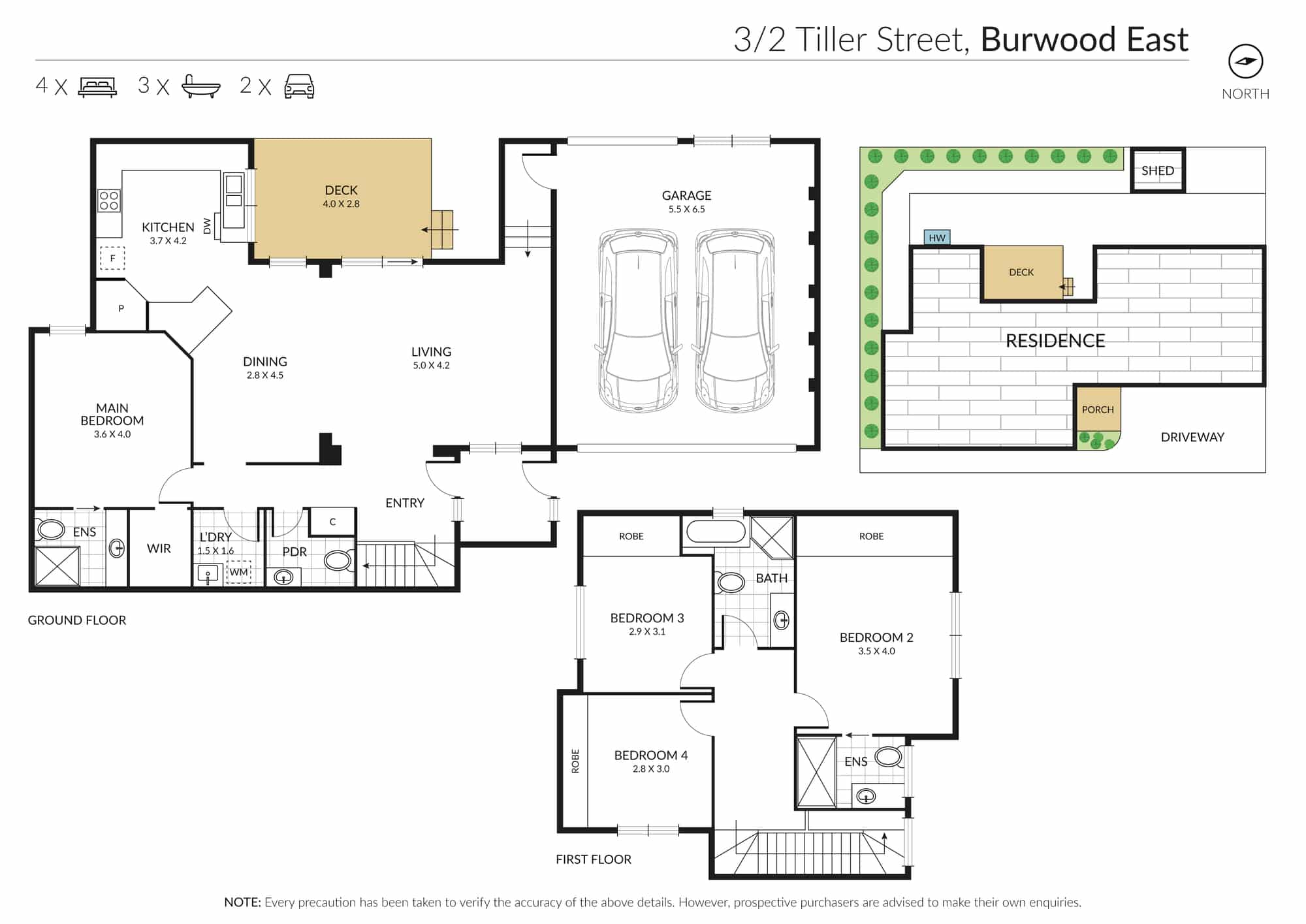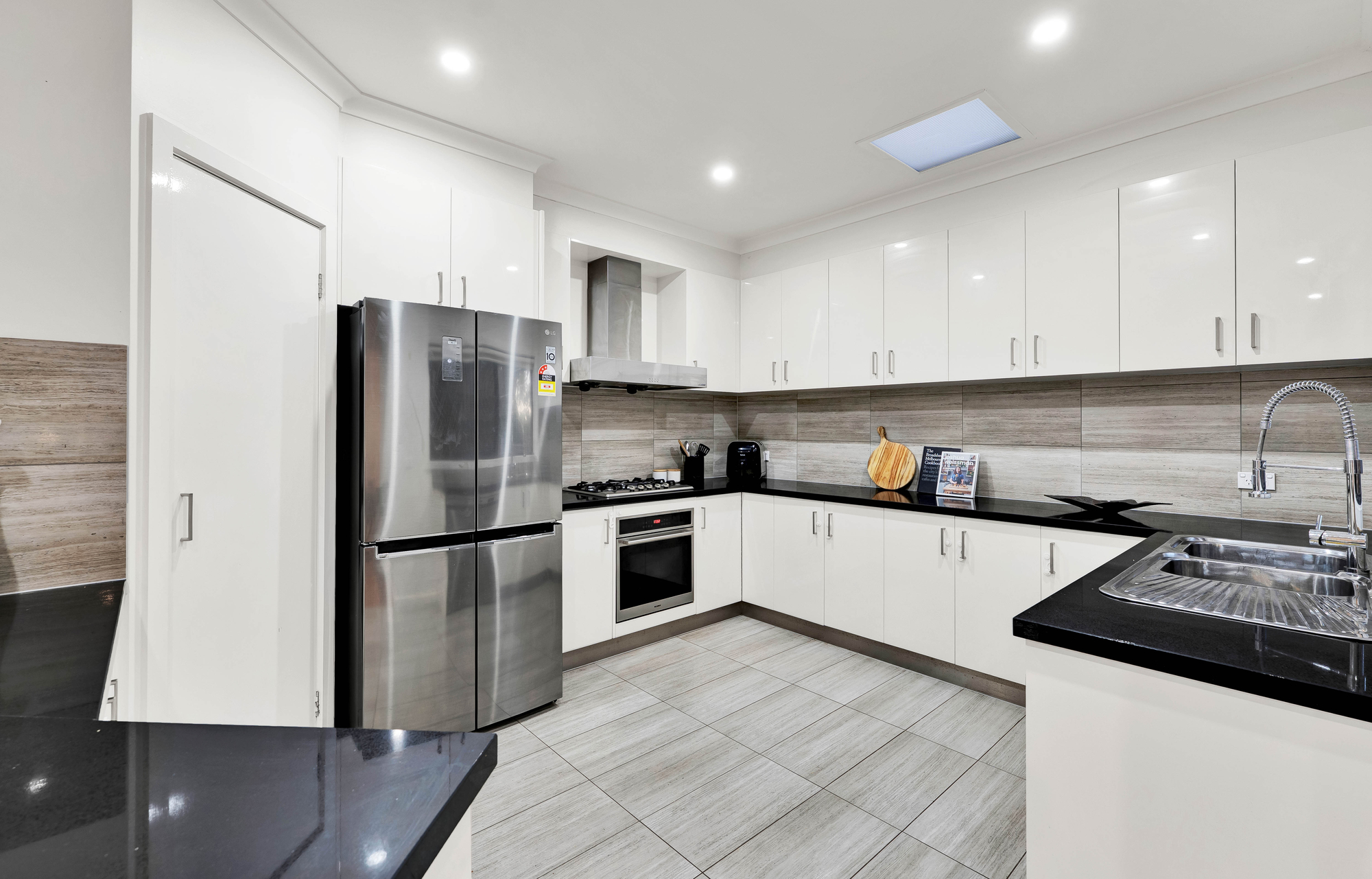 Designed for flexibility and functionality, the home features four well-sized bedrooms, including a versatile ground-floor guest suite or home office. There are three contemporary bathrooms, a guest powder room, and a full-sized laundry to suit the needs of a modern household.