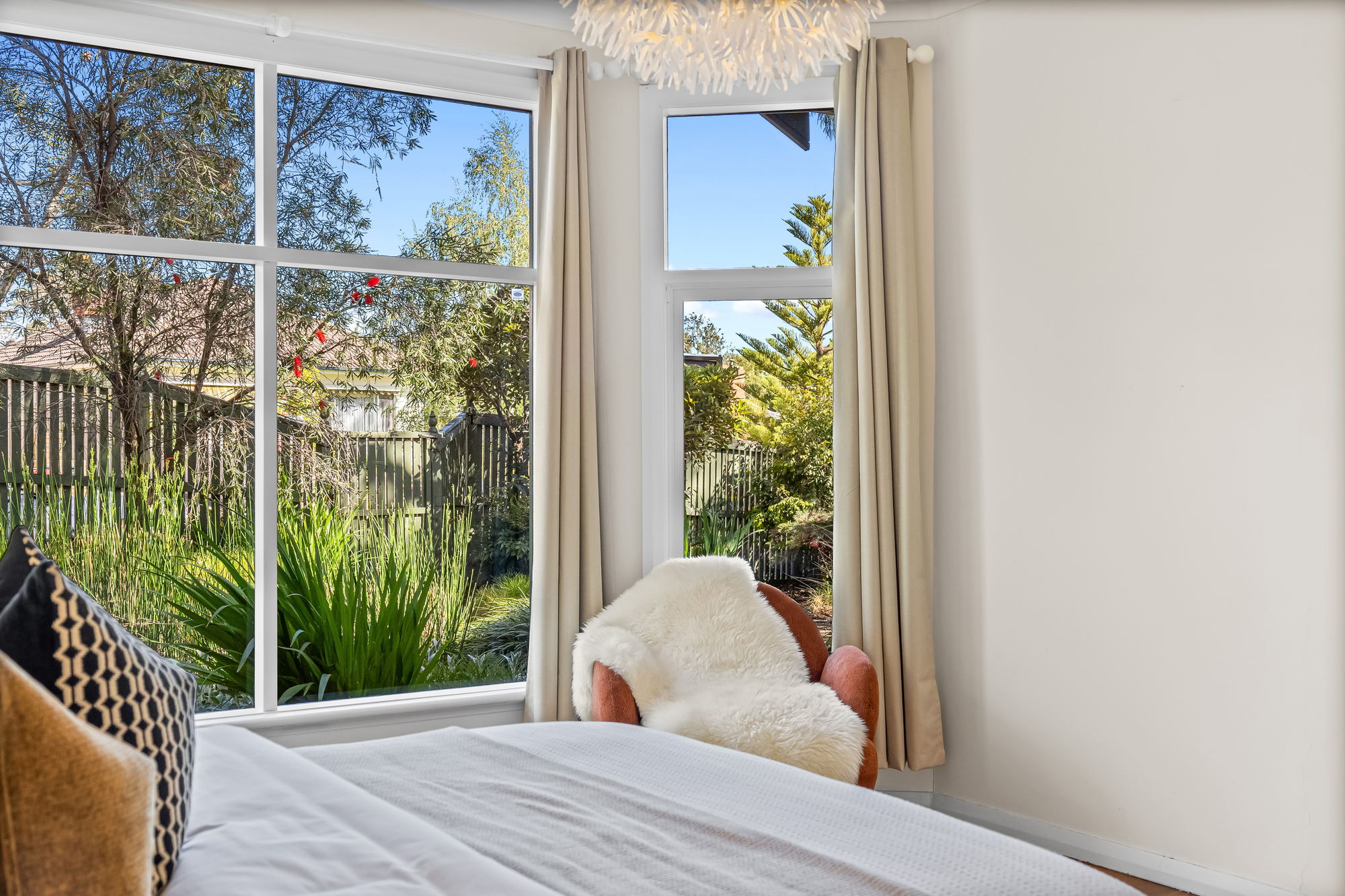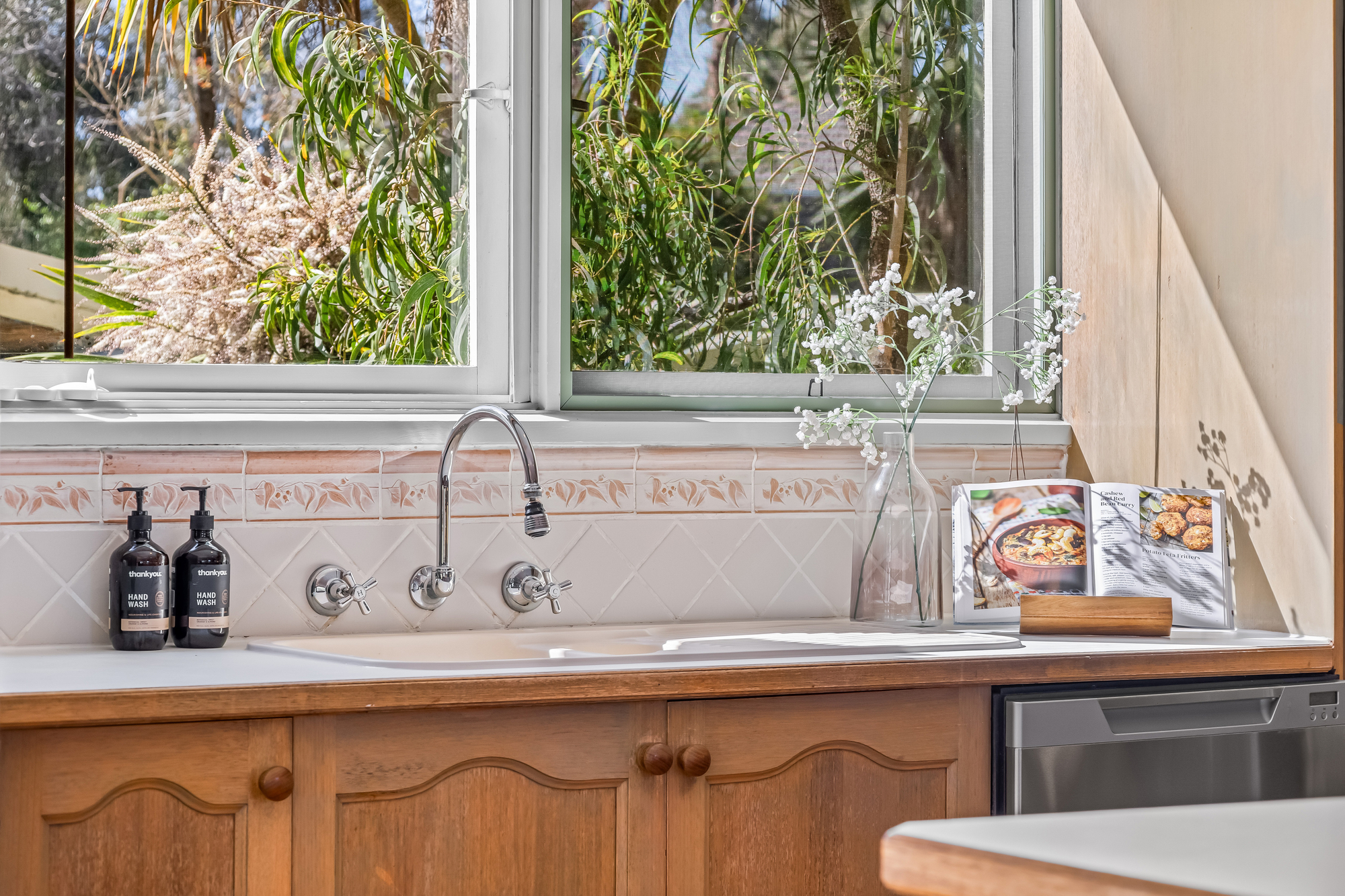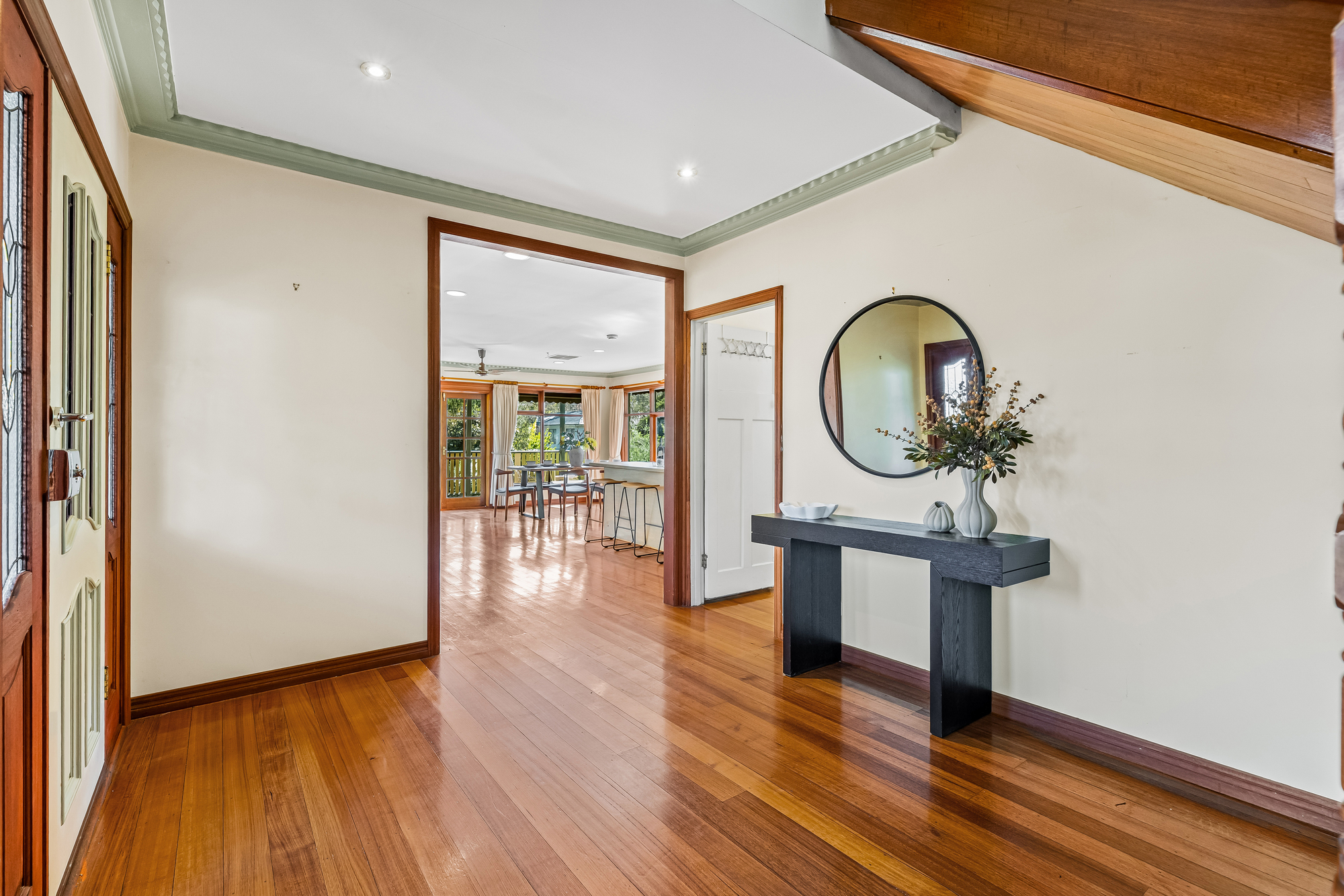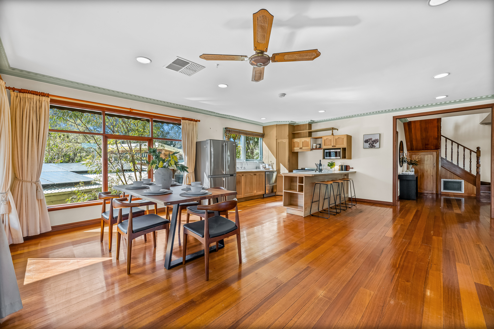 Auction $1,200,000 - $1,300,000Nestled in nature yet convenient to everything the city offers, this character weatherboard home sits in a quiet, family-friendly street and provides warm, light-filled easy living across two levels. Featuring five bedrooms, two bathrooms, and multiple living zones, it’s ideal for families, including multi-generational living. The large open-plan living and kitchen area showcases timber floorboards, a bay window, and French doors opening onto a spacious balcony—perfect for relaxing or entertaining. The kitchen includes a Fisher & Paykel DishDrawer, freestanding SMEG oven with gas burners, double sink, laminate benchtops, and plenty of under and overhead storage. A generous island bench seats four, creating a welcoming hub for family meals and conversation.