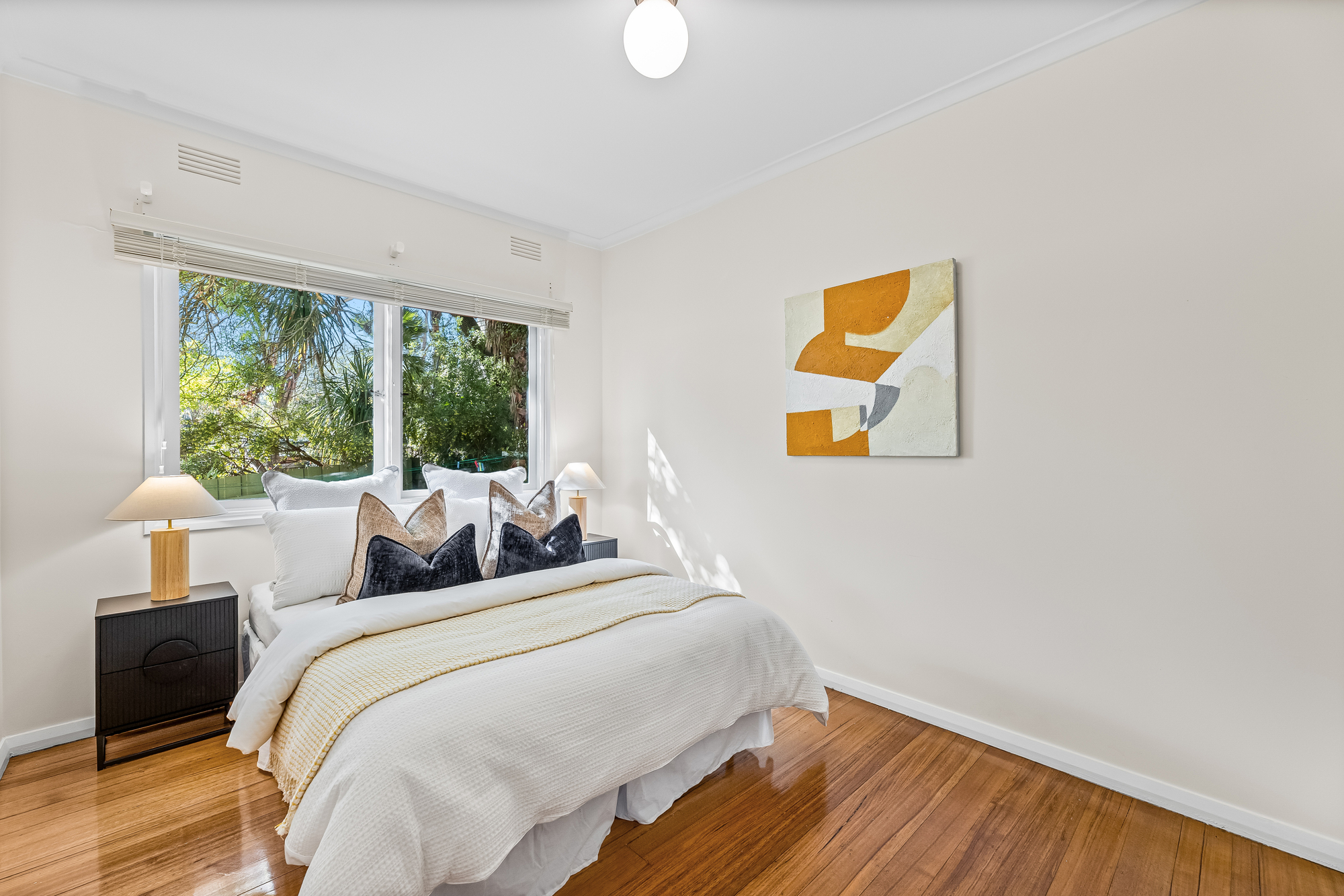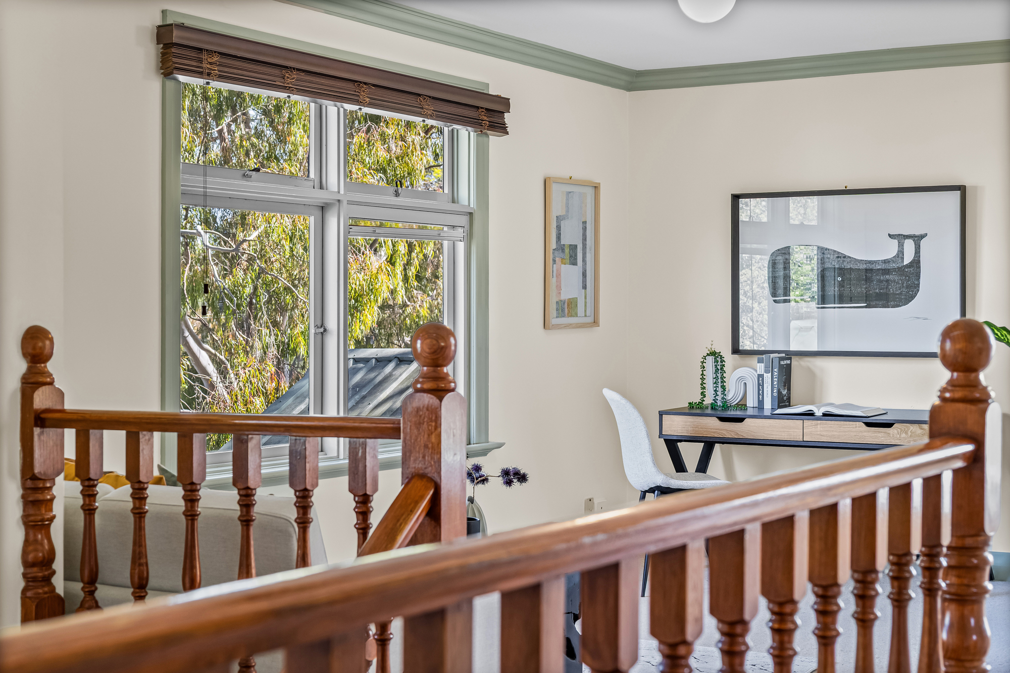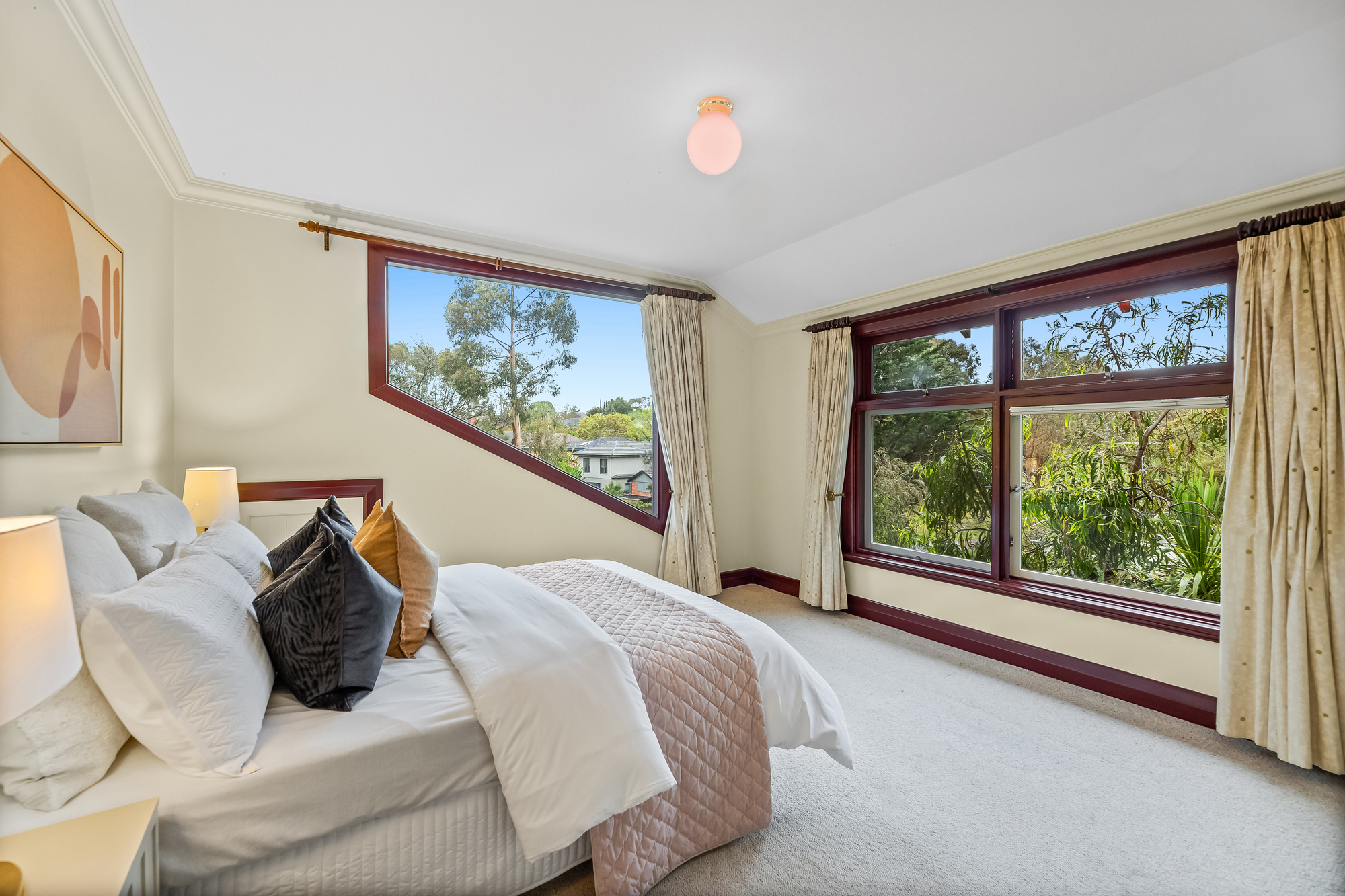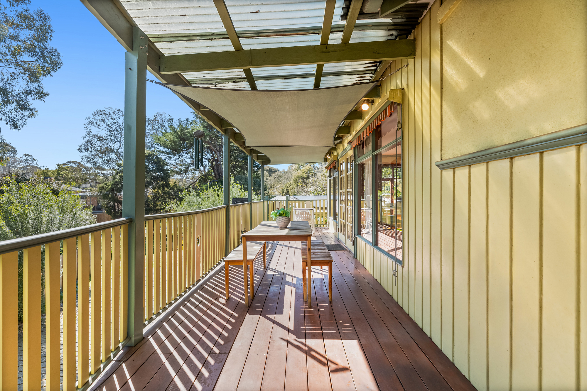 Auction $1,200,000 - $1,300,000Nestled in nature yet convenient to everything the city offers, this character weatherboard home sits in a quiet, family-friendly street and provides warm, light-filled easy living across two levels. Featuring five bedrooms, two bathrooms, and multiple living zones, it’s ideal for families, including multi-generational living. The large open-plan living and kitchen area showcases timber floorboards, a bay window, and French doors opening onto a spacious balcony—perfect for relaxing or entertaining. The kitchen includes a Fisher & Paykel DishDrawer, freestanding SMEG oven with gas burners, double sink, laminate benchtops, and plenty of under and overhead storage. A generous island bench seats four, creating a welcoming hub for family meals and conversation.