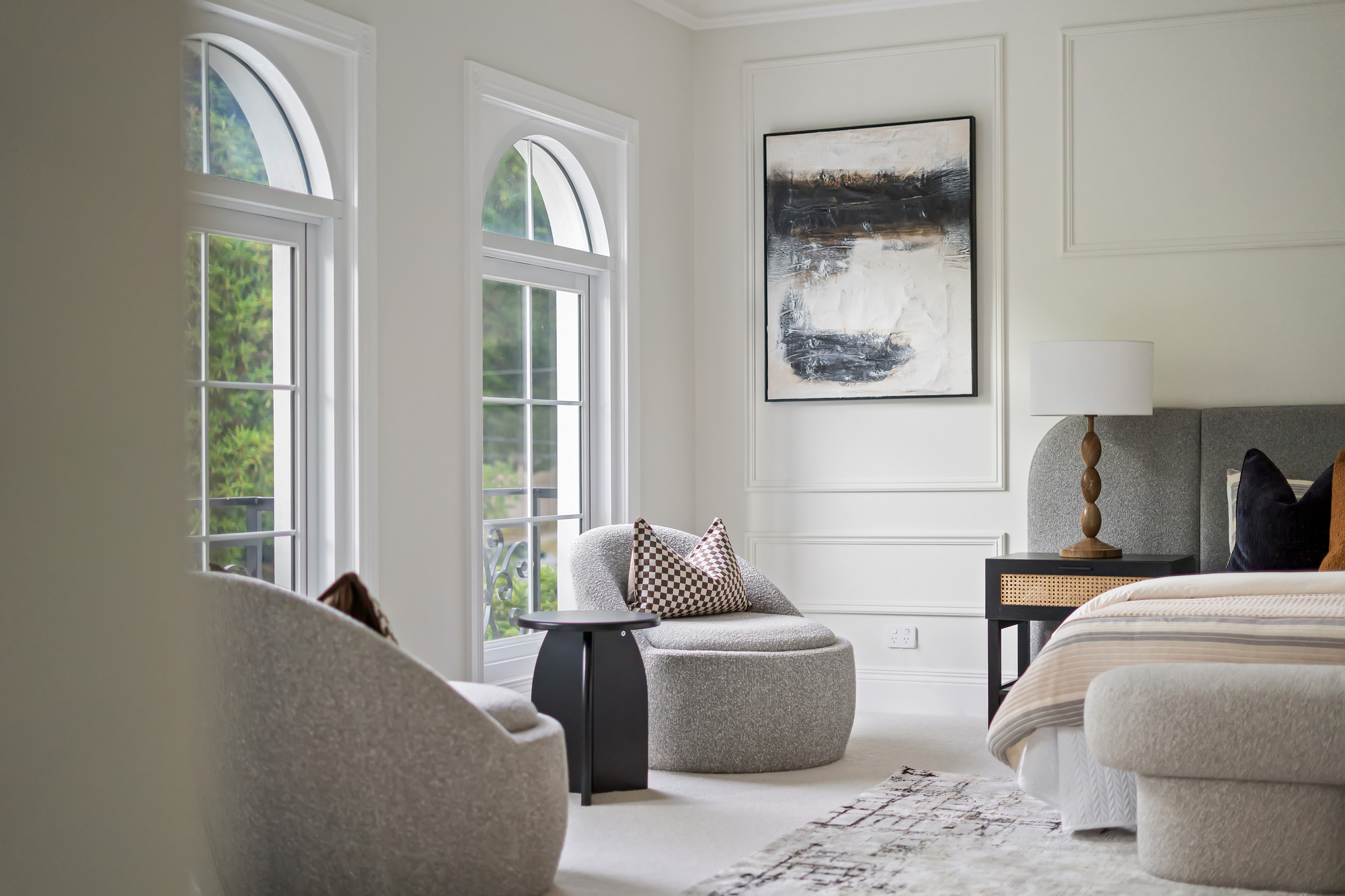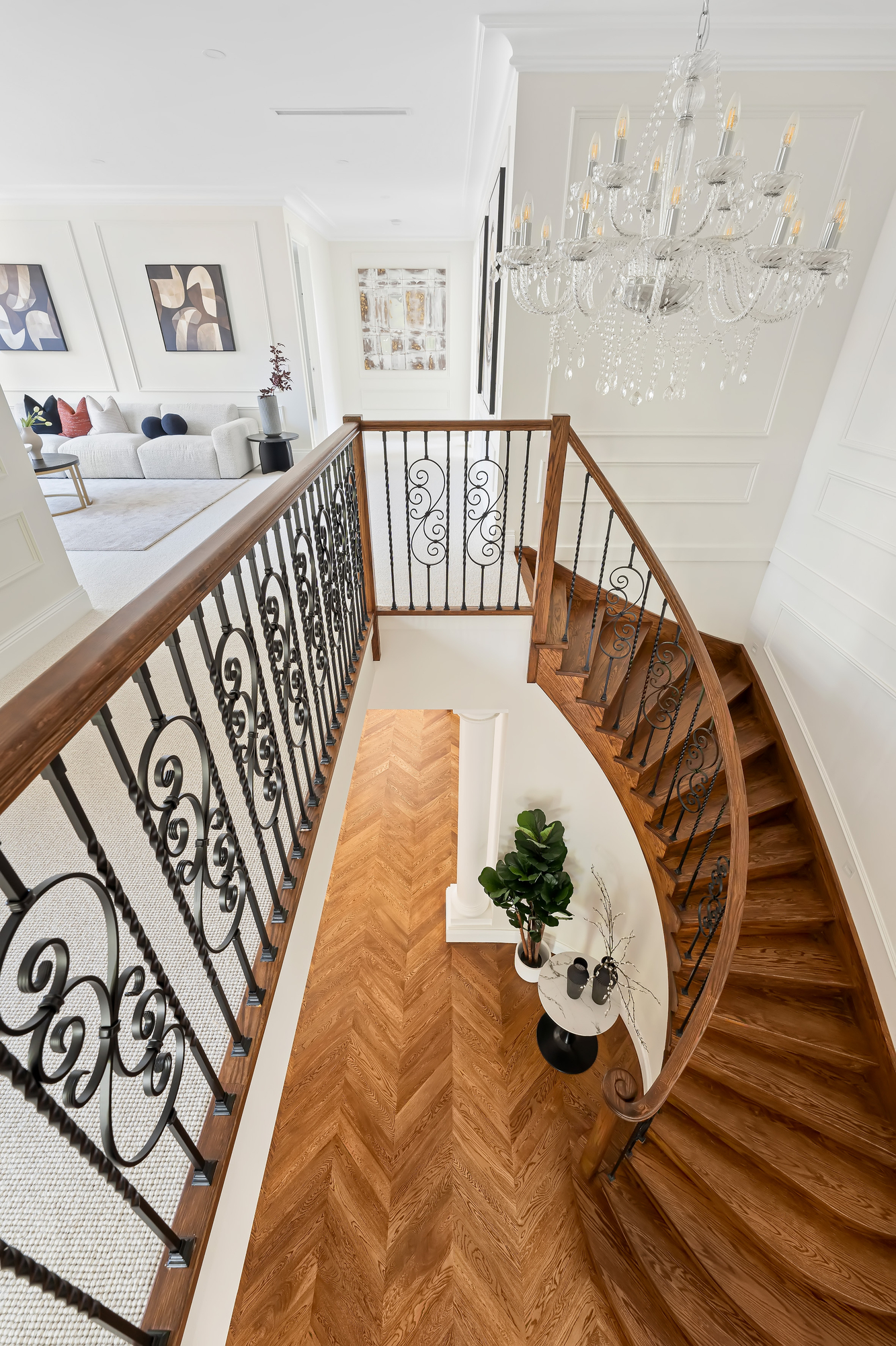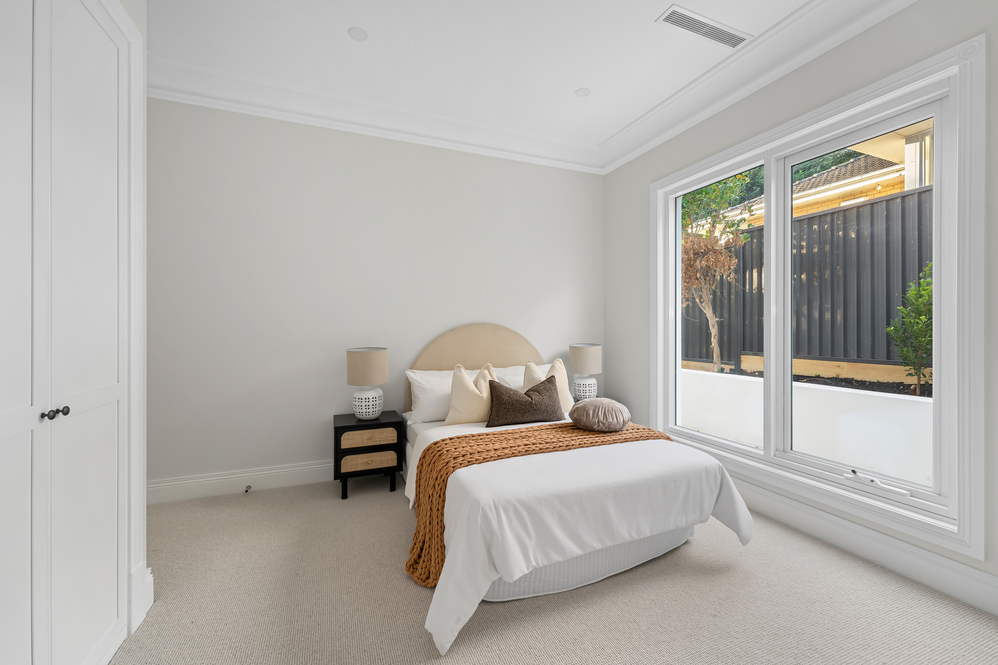 The bedroom layout has also been carefully curated to offer optimal liveability. The beautiful ground floor bedroom features an ensuite-effect connection with the impressive bathroom on this level. Upstairs, a smart study nook and sprawling sitting room with plush carpet branch to further family bedrooms each with their own walk-in robe and luxurious ensuite. The jewel that sits atop the crown of this incredible home is the magnificent main bedroom adorned with 2 dressing rooms, a spa-like ensuite with soaking tub, and French doors to a private balcony. High quality finishing includes all pipes are fully insulated for sound.