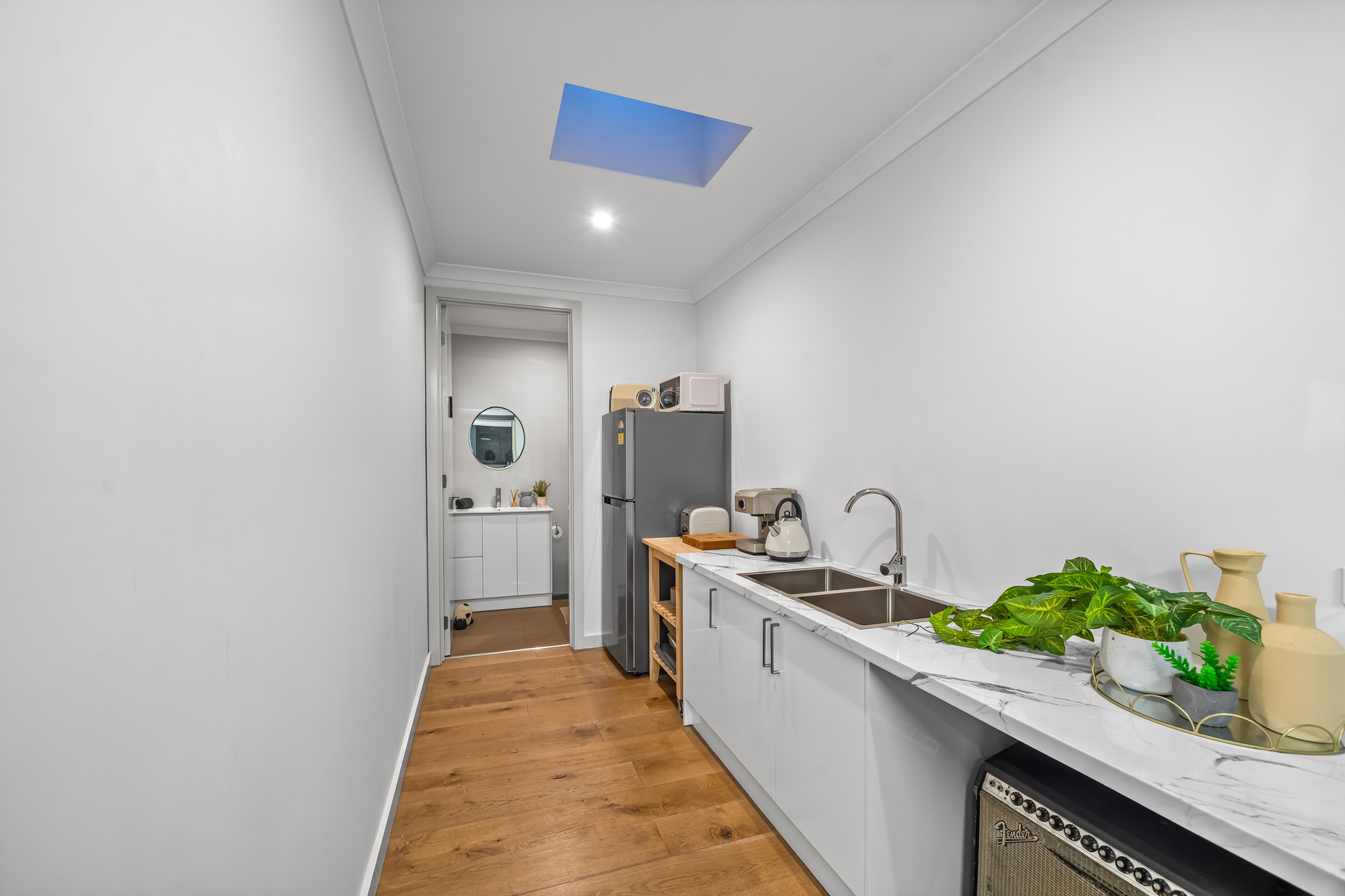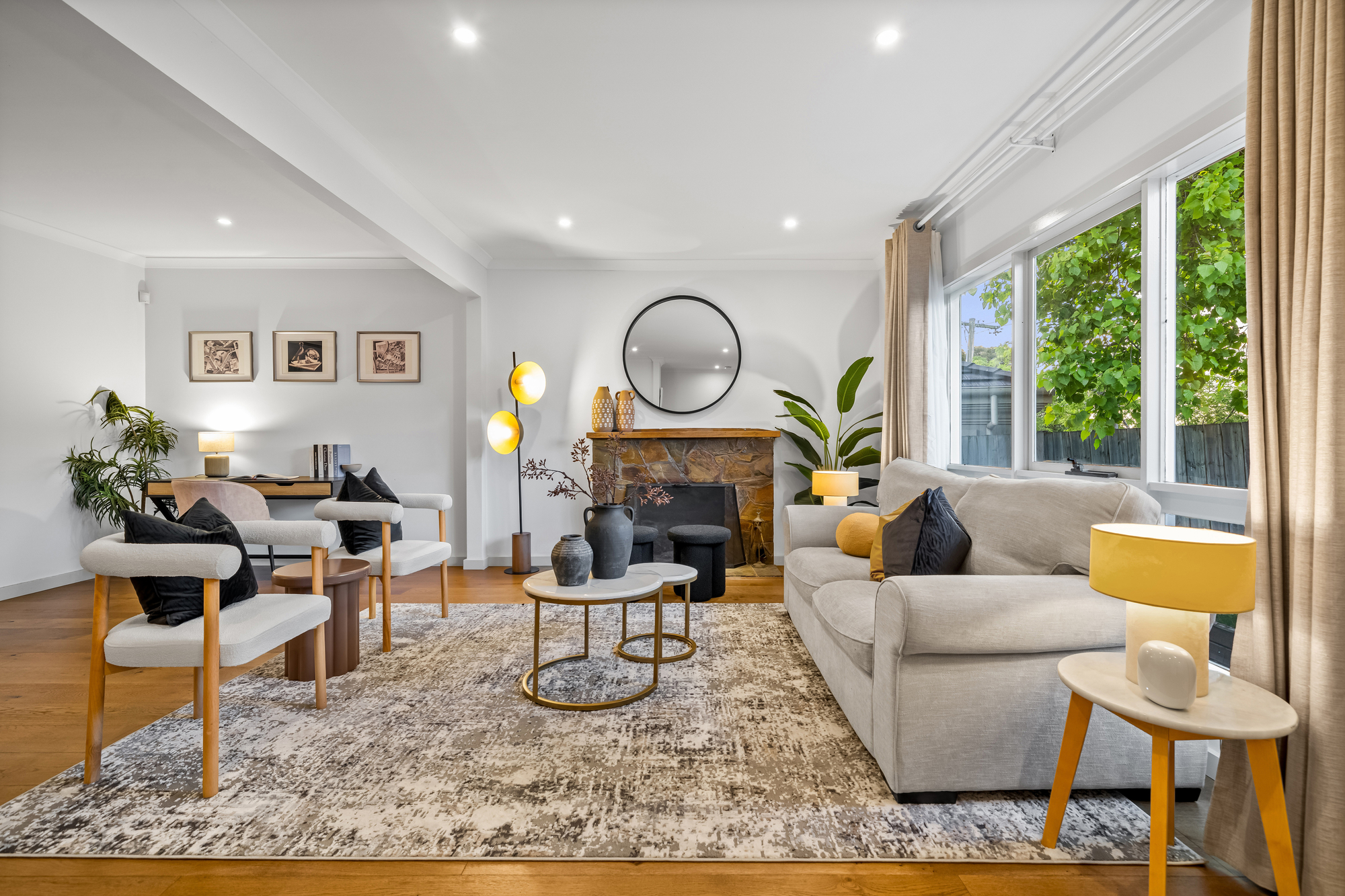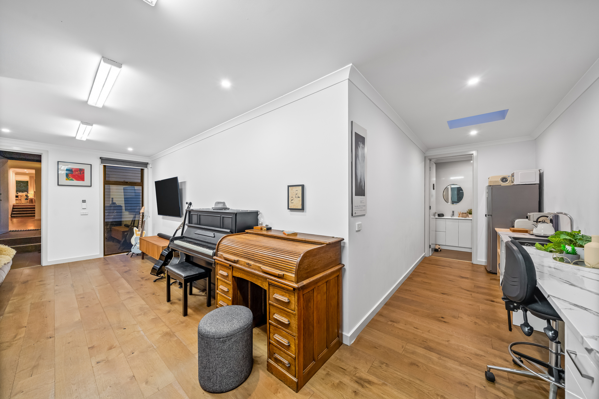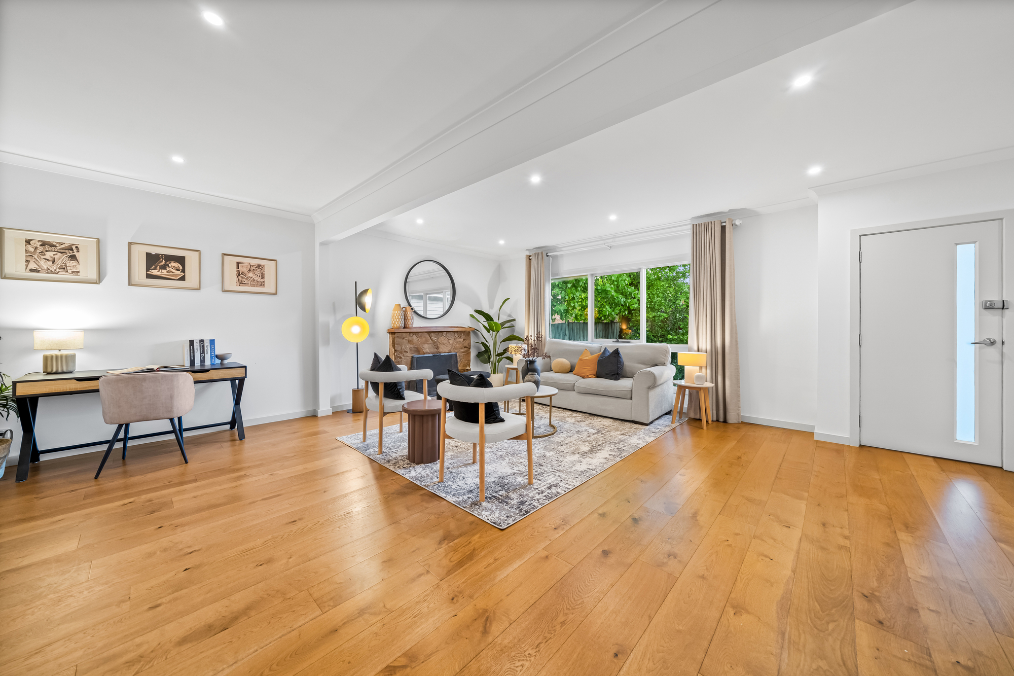 A separate front lounge with fireplace provides an additional living zone, while the flexible additional space / rear studio offers excellent versatility. Featuring independent access along with kitchenette and bathroom amenities, it is ideal for use as a home office, guest accommodation, studio or independent living space (STCA).