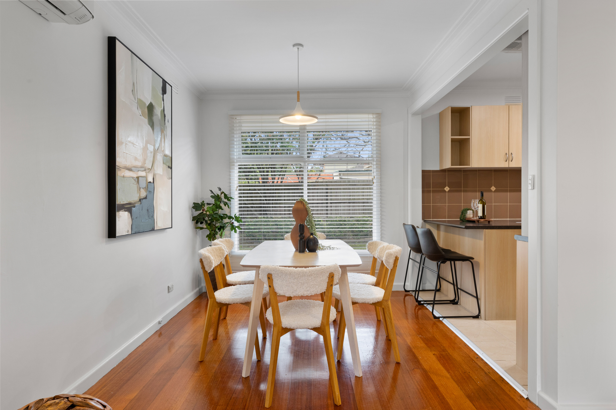 The façade has been stylishly updated to deliver strong street appeal, while inside, polished timber floorboards, fresh finishes, and a well-planned layout create a warm and inviting atmosphere. A spacious L-shaped lounge and dining area flows naturally to the kitchen, which has been modernised with quality appliances including gas cooking, dishwasher, tiled splashbacks, and abundant cabinetry.